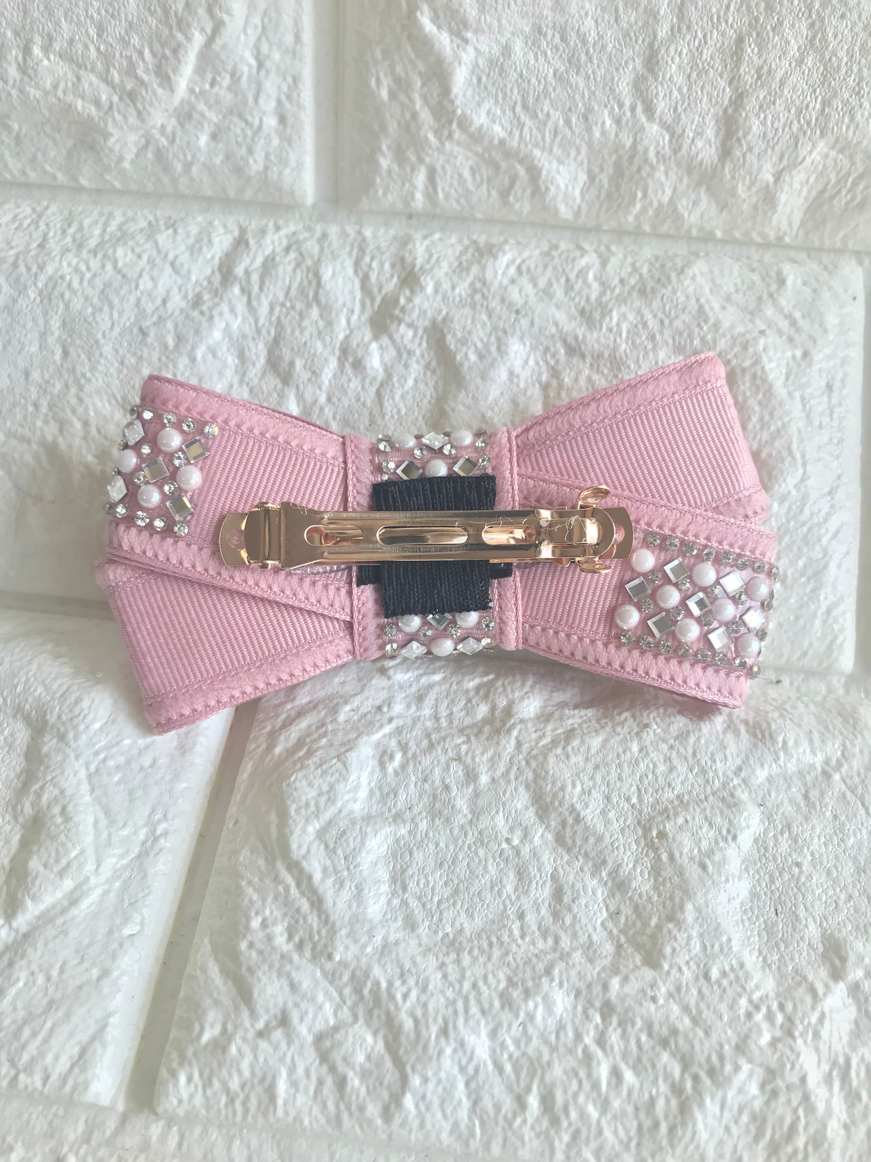 馬具マーク付き キラキラpaveリボンのバレッタ2色