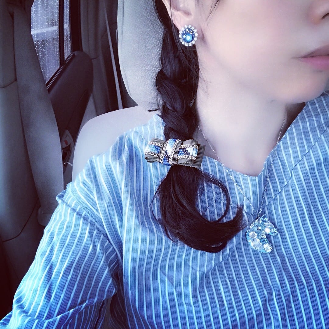 キラキラのブレードにはクリスタルオーロラのラインストーンがぎっしりで、フォーマル使用も華やかなデザイン