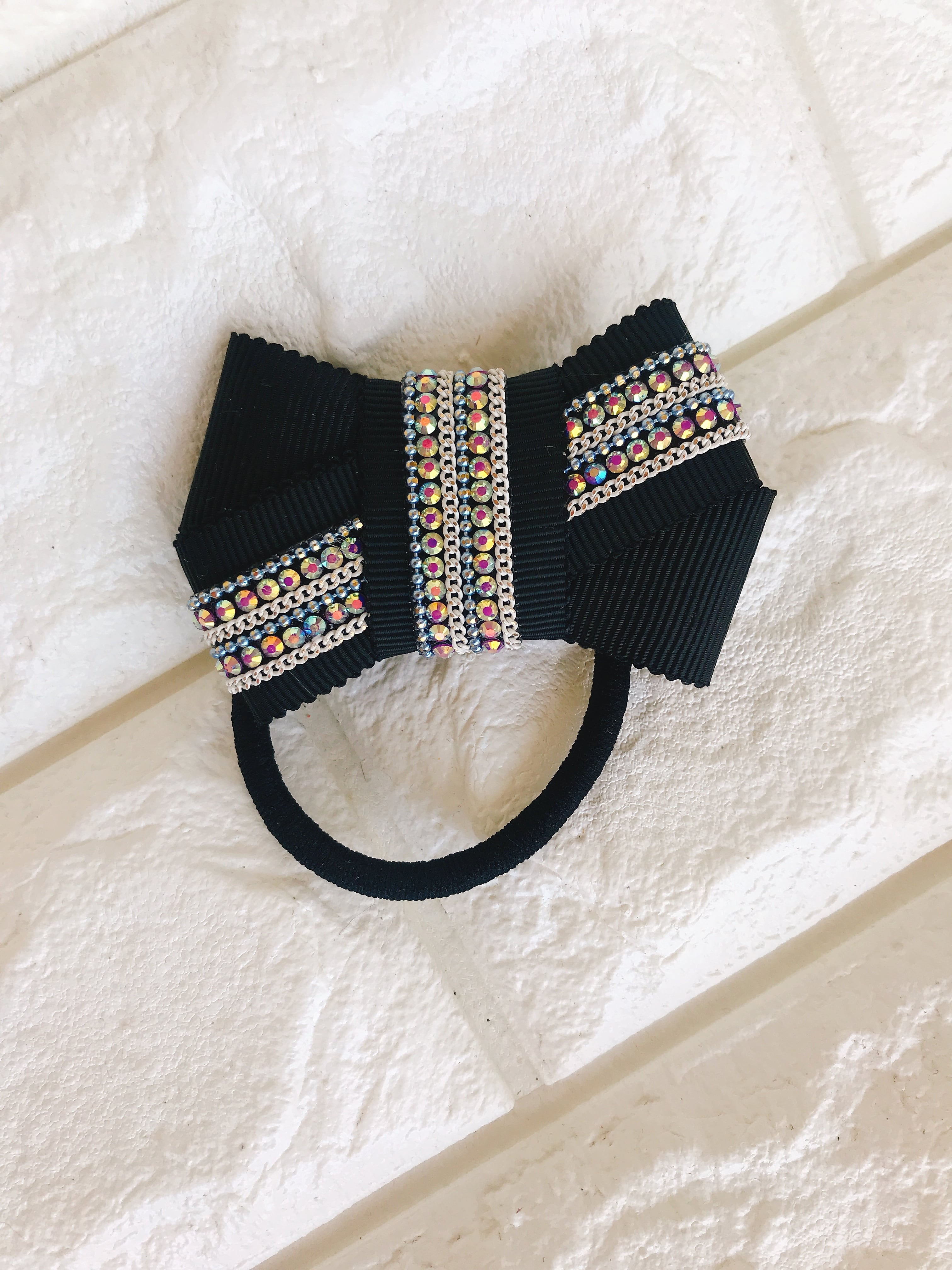 乗馬の練習中に使用する髪留めとしては、ヘルメットに干渉しにくいミニサイズリボンです。