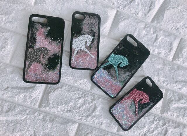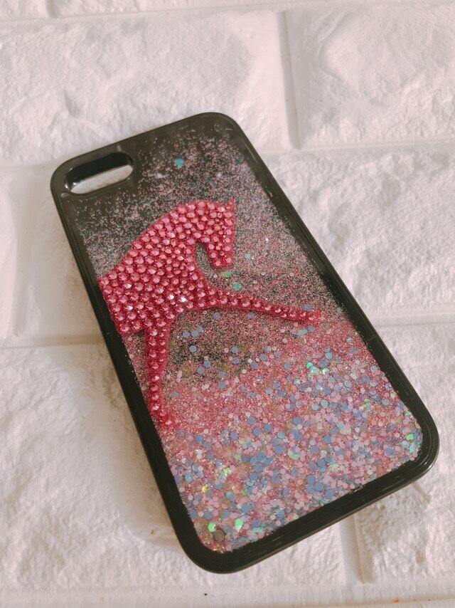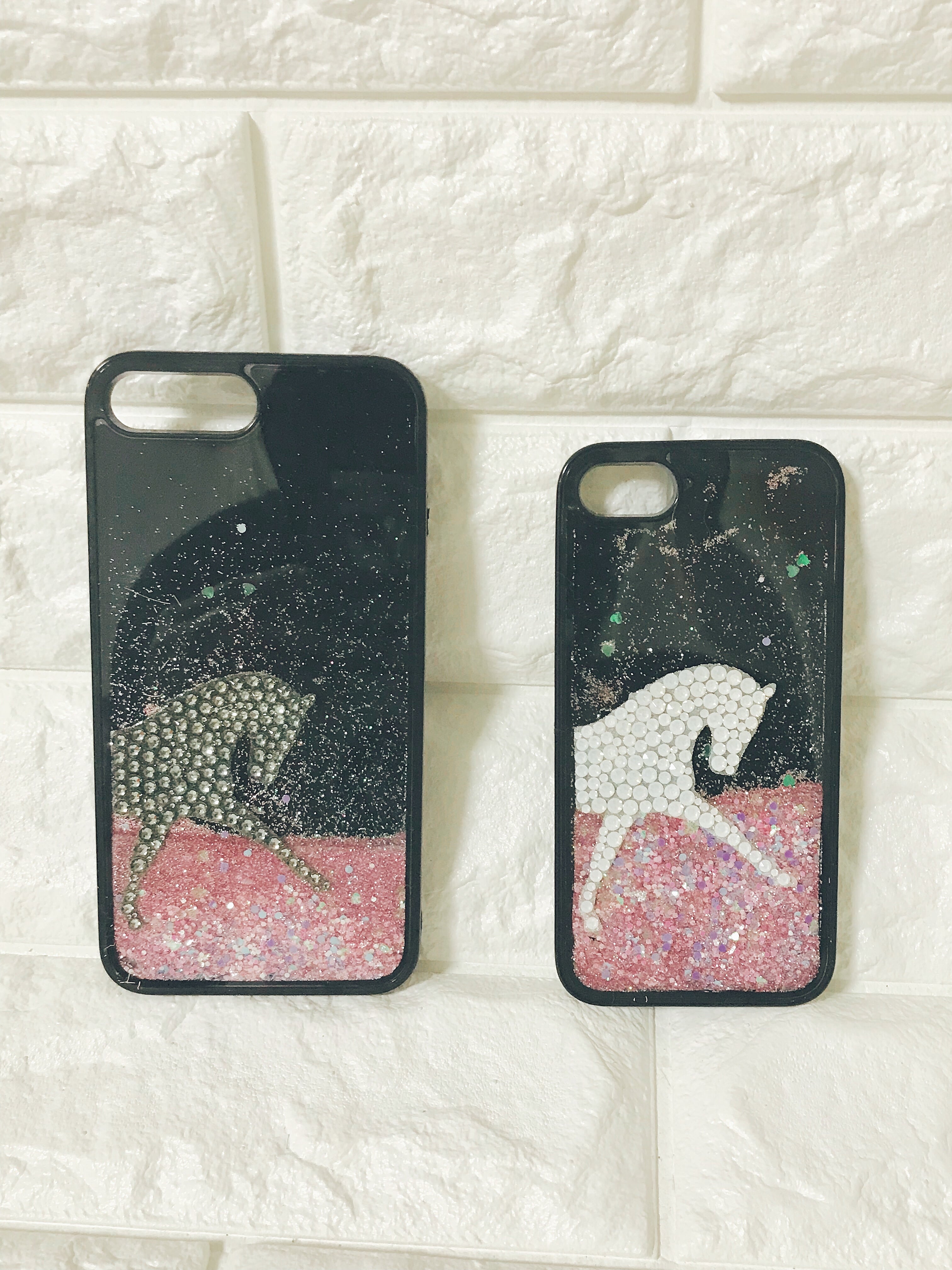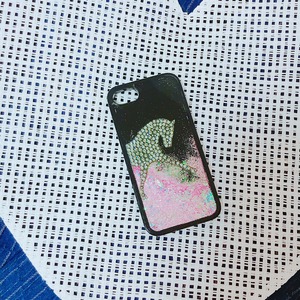 流れるキラキラフレークグリッターのiPhoneケースと、スワロフスキーの輝くドレッサージュホースのコラボ商品です!