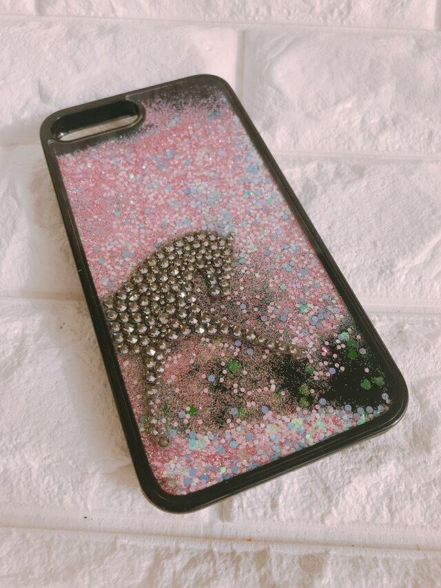 ソフトiPhoneケースの枠はデコレーション用の市販の資材を使用していますが、グリッターを封入するところからは手作業で行なっている作品です!