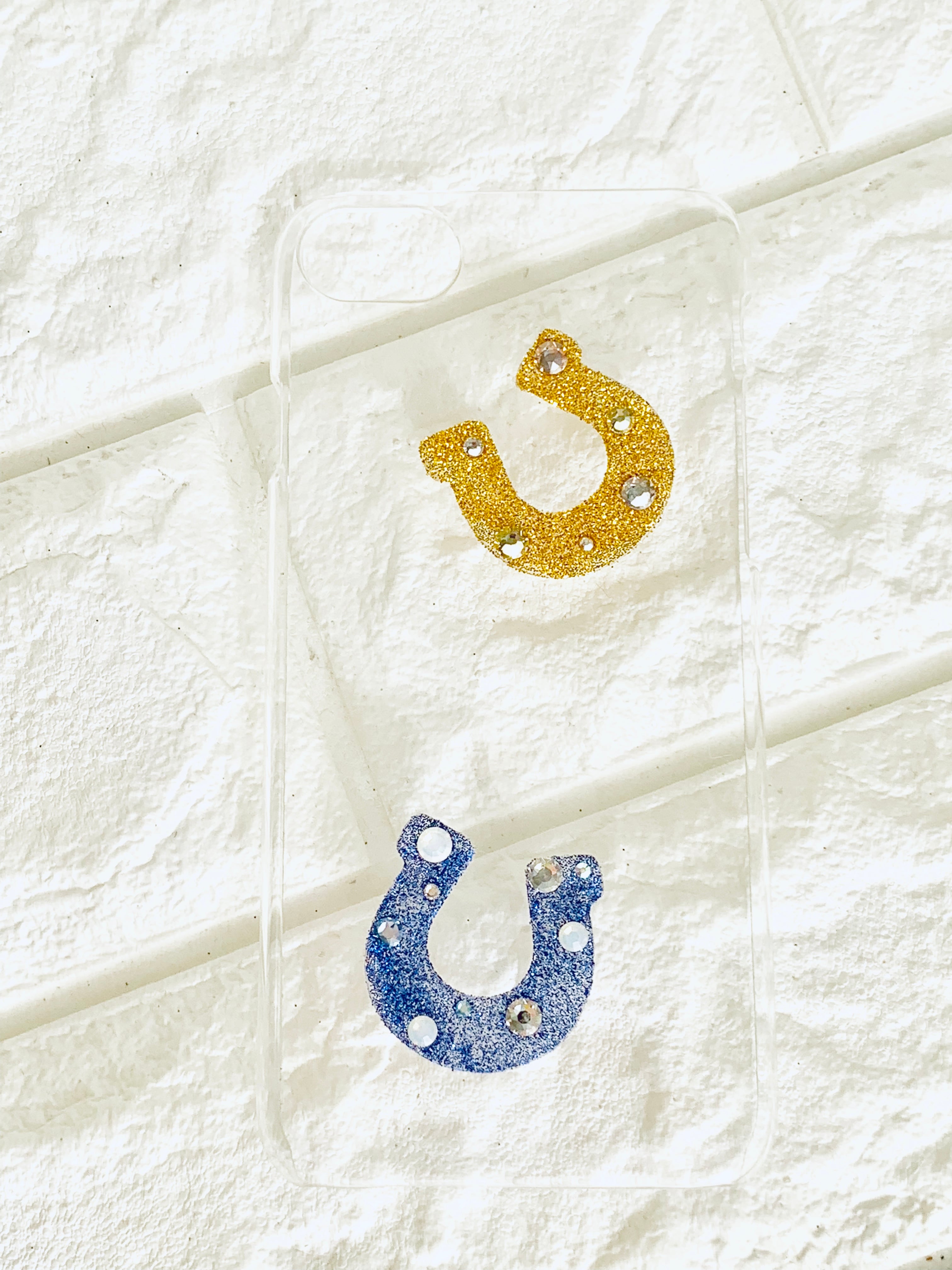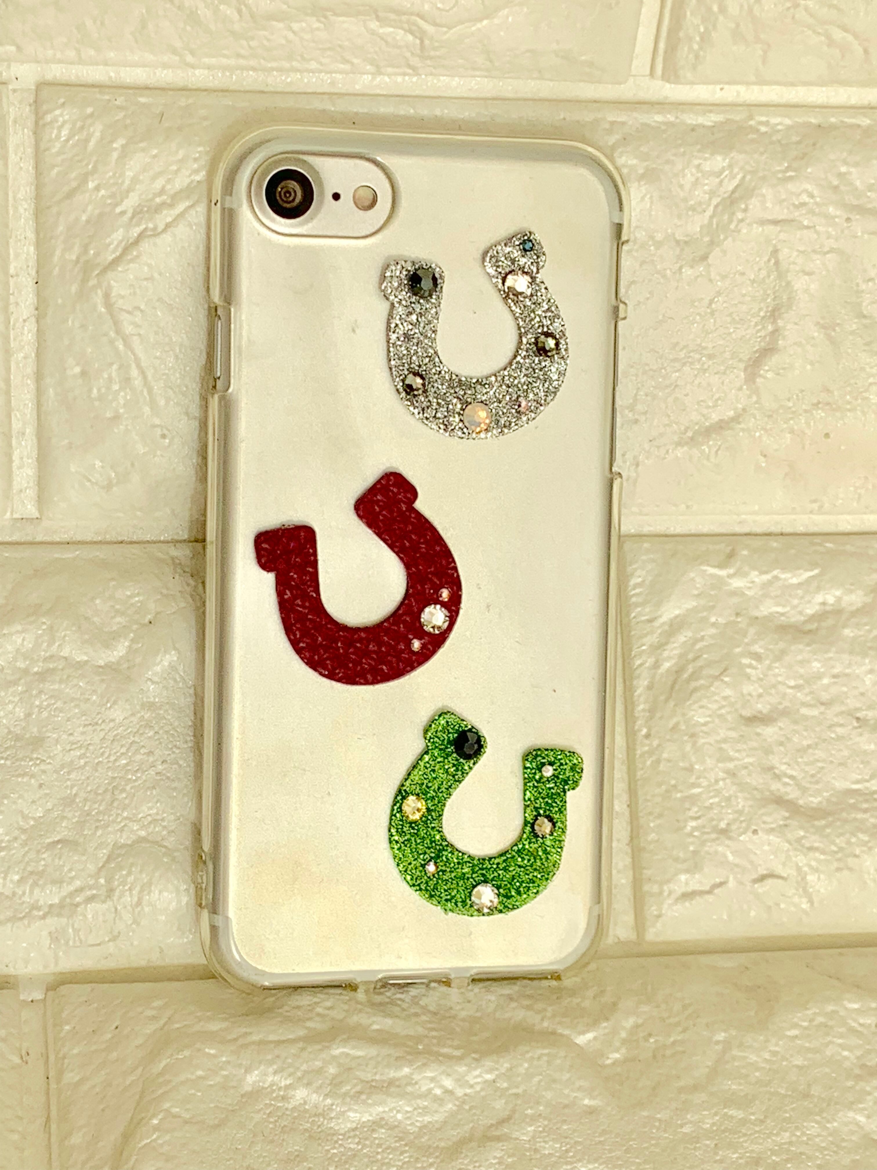 また、透明のものに貼るとグリッター部分がわずかに透けて、微妙な透明感のあるキラキラグリッターからできたホースシューです。