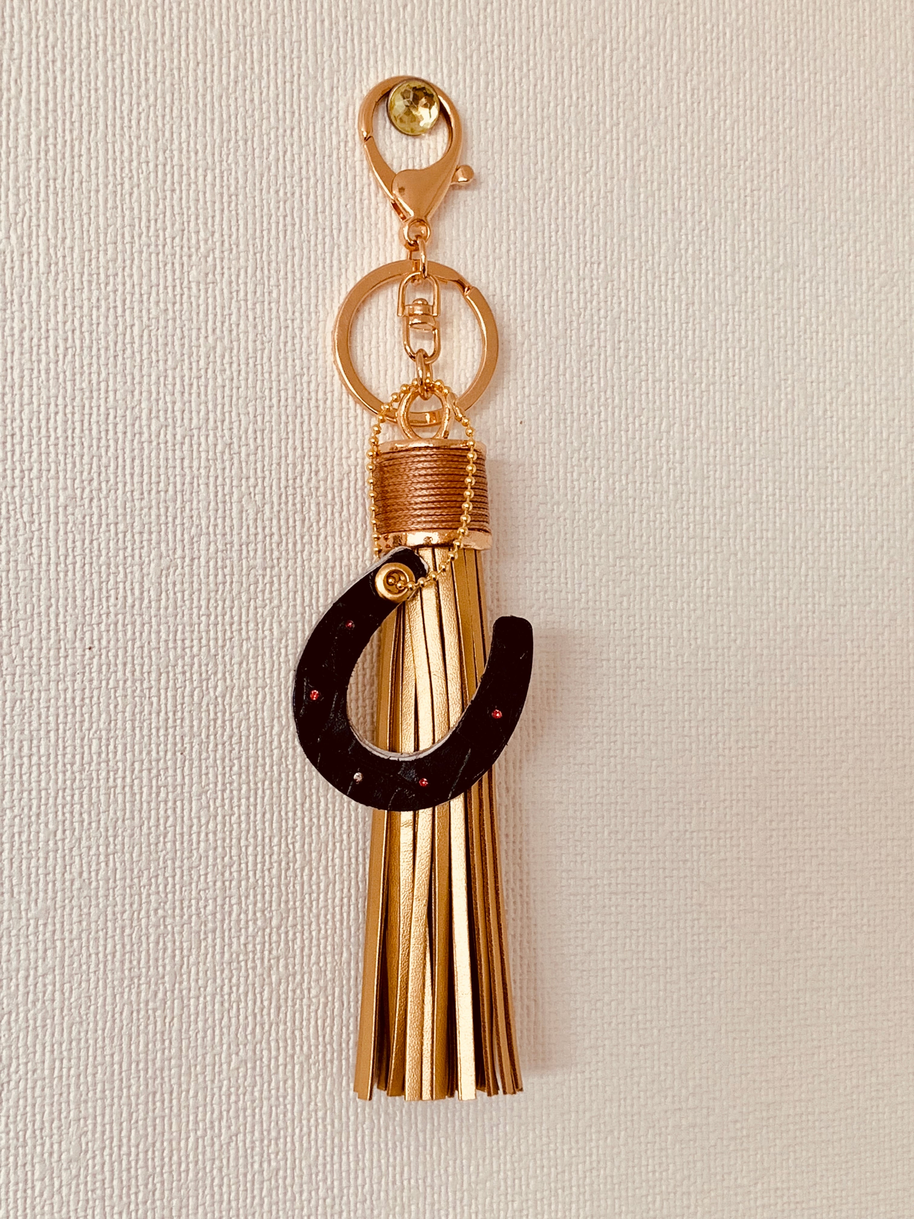 本革製ホースシューバッグチャームも冬仕様にカッコいいカラーを選びました。