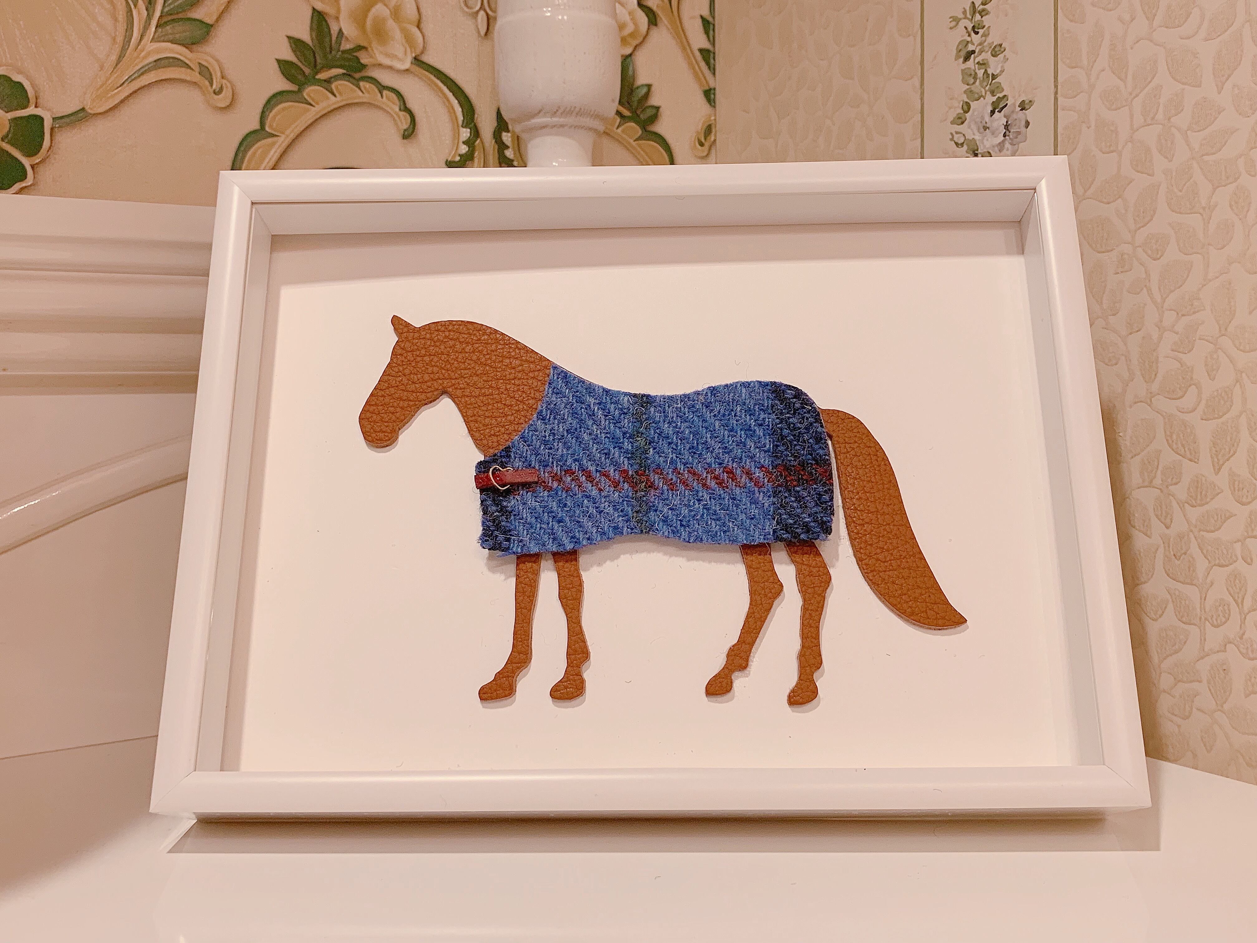 裏面は貼って剥がせるステッカーでの加工をしてありますので、アートのお馬さんに馬着を着せてみたり、脱がしてみたり、着せ替えたりできるようにしてみました(^^)