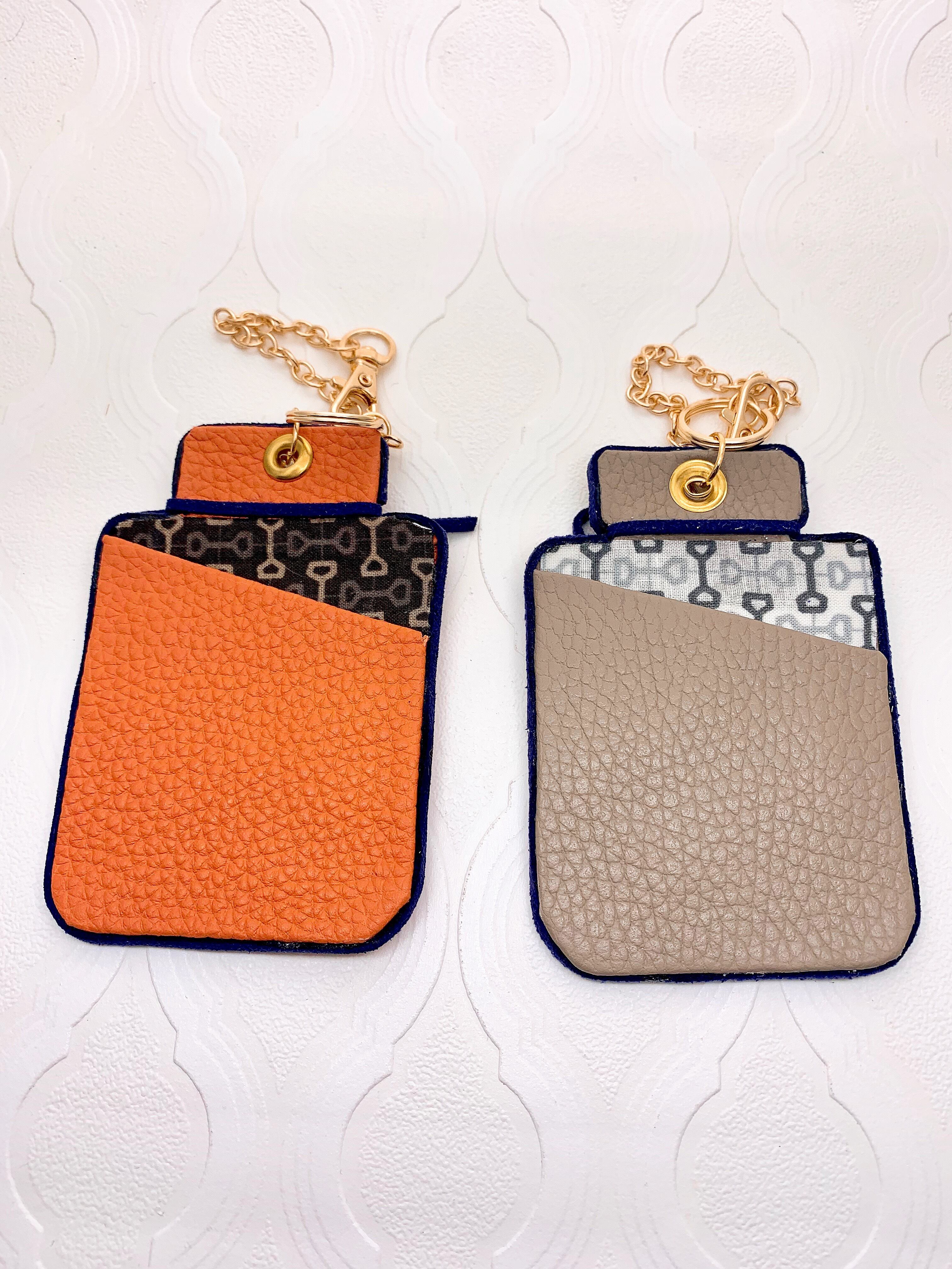 お馴染みの高級シュリンクレザーで香水瓶を形どったバッグチャームは、裏面がカードホルダーになっています。