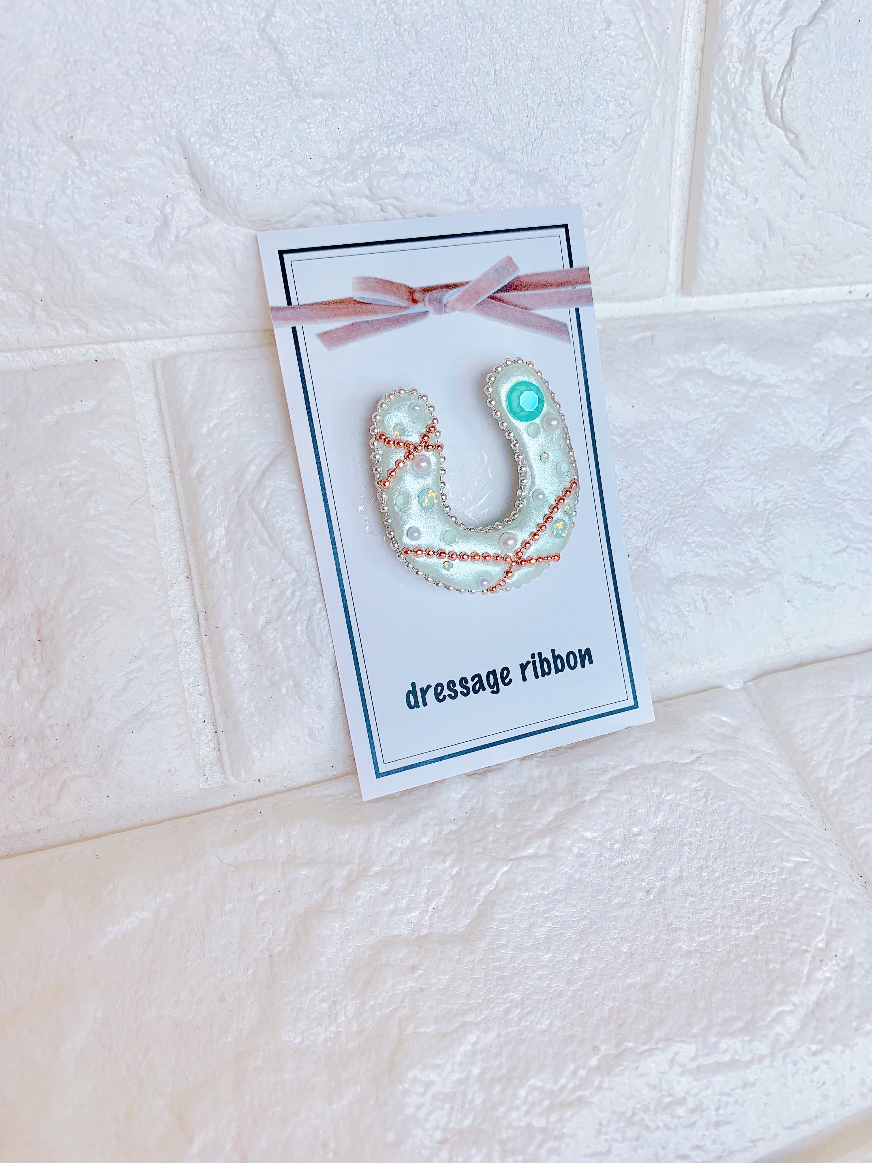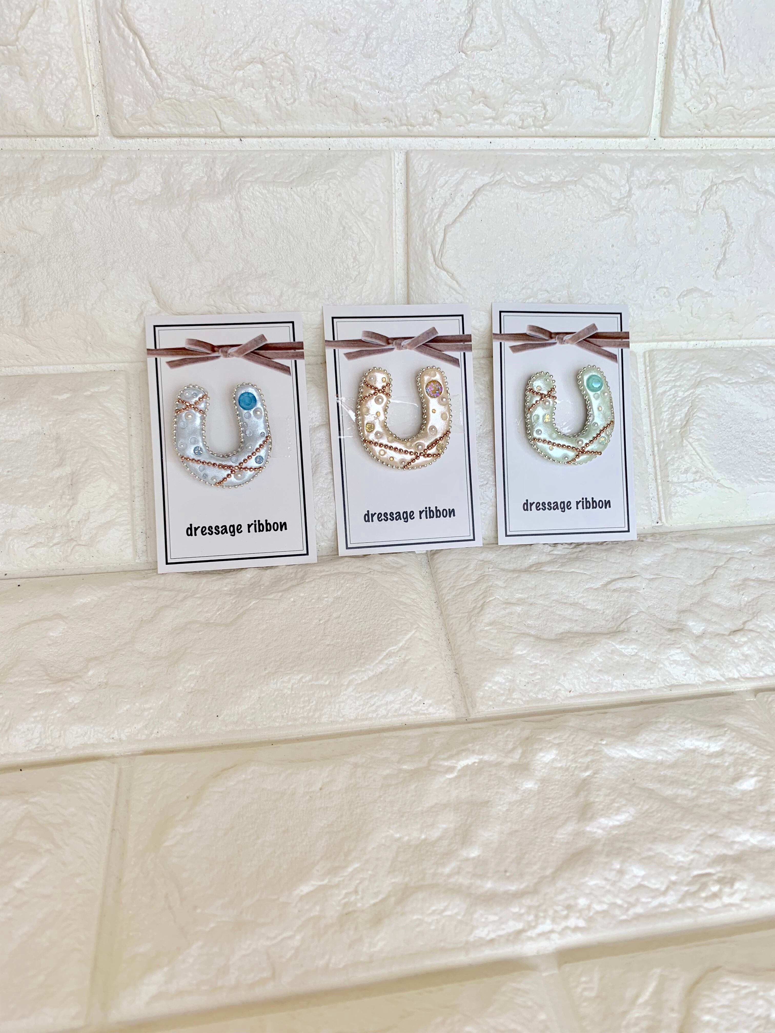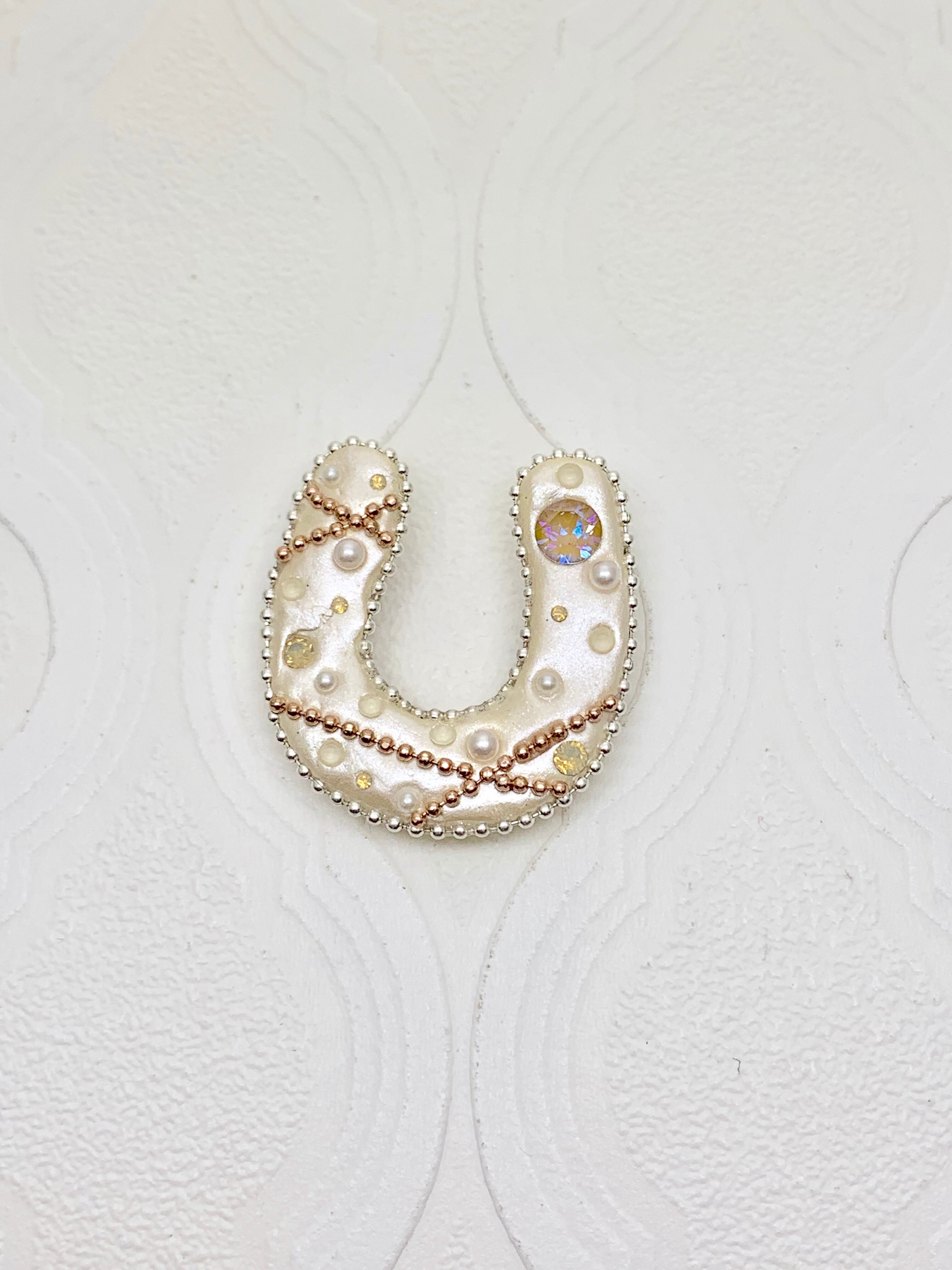 スウェットやトートバッグなどお好きなところに着けて楽しい、春らしいホースシューブローチです。