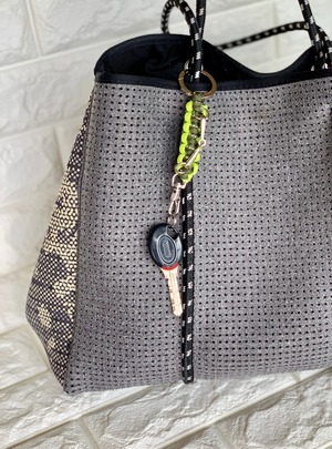 バッグの中で行方不明になりがちなパスケースや鍵を繋いでおくと取り出しに便利。