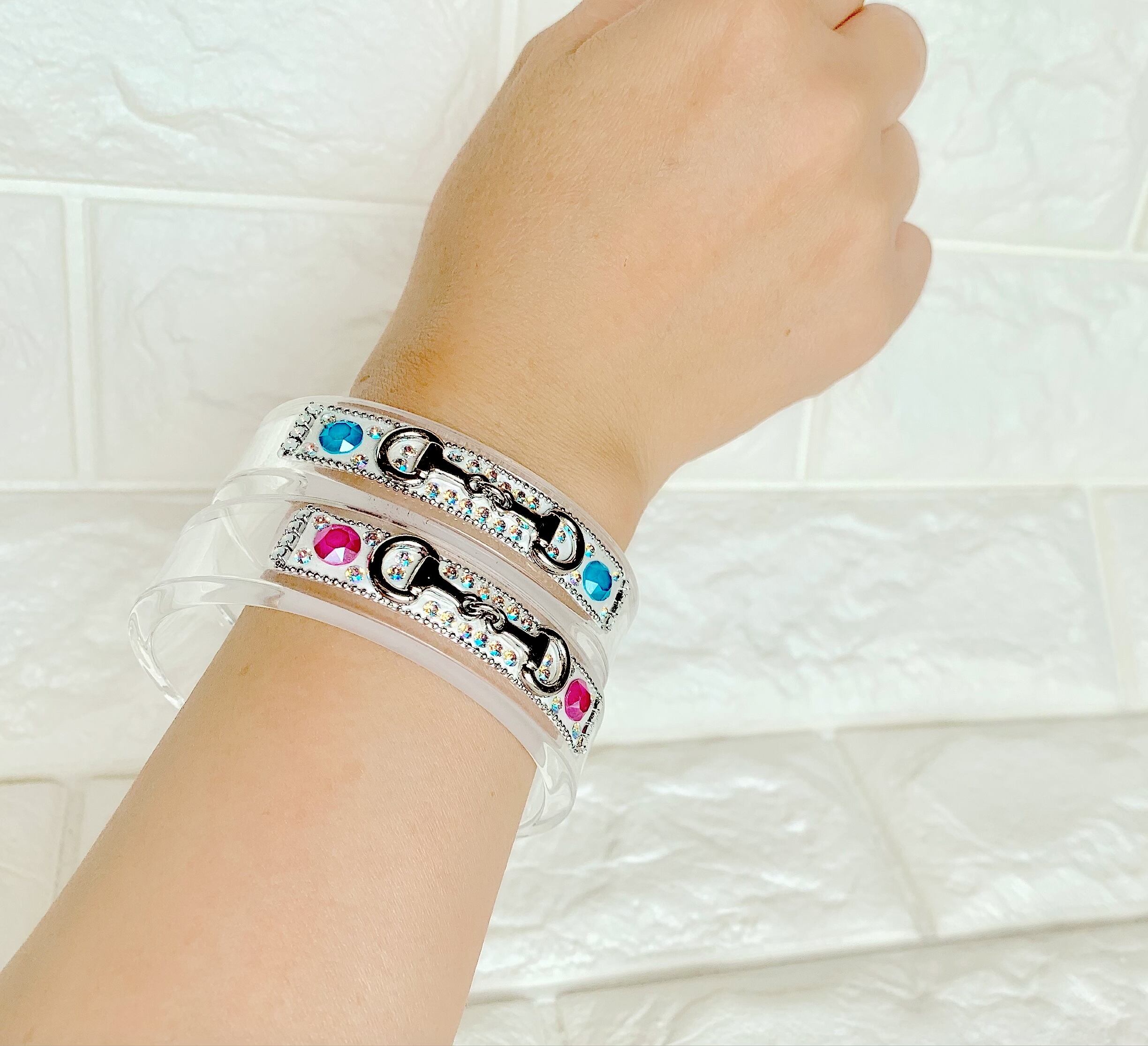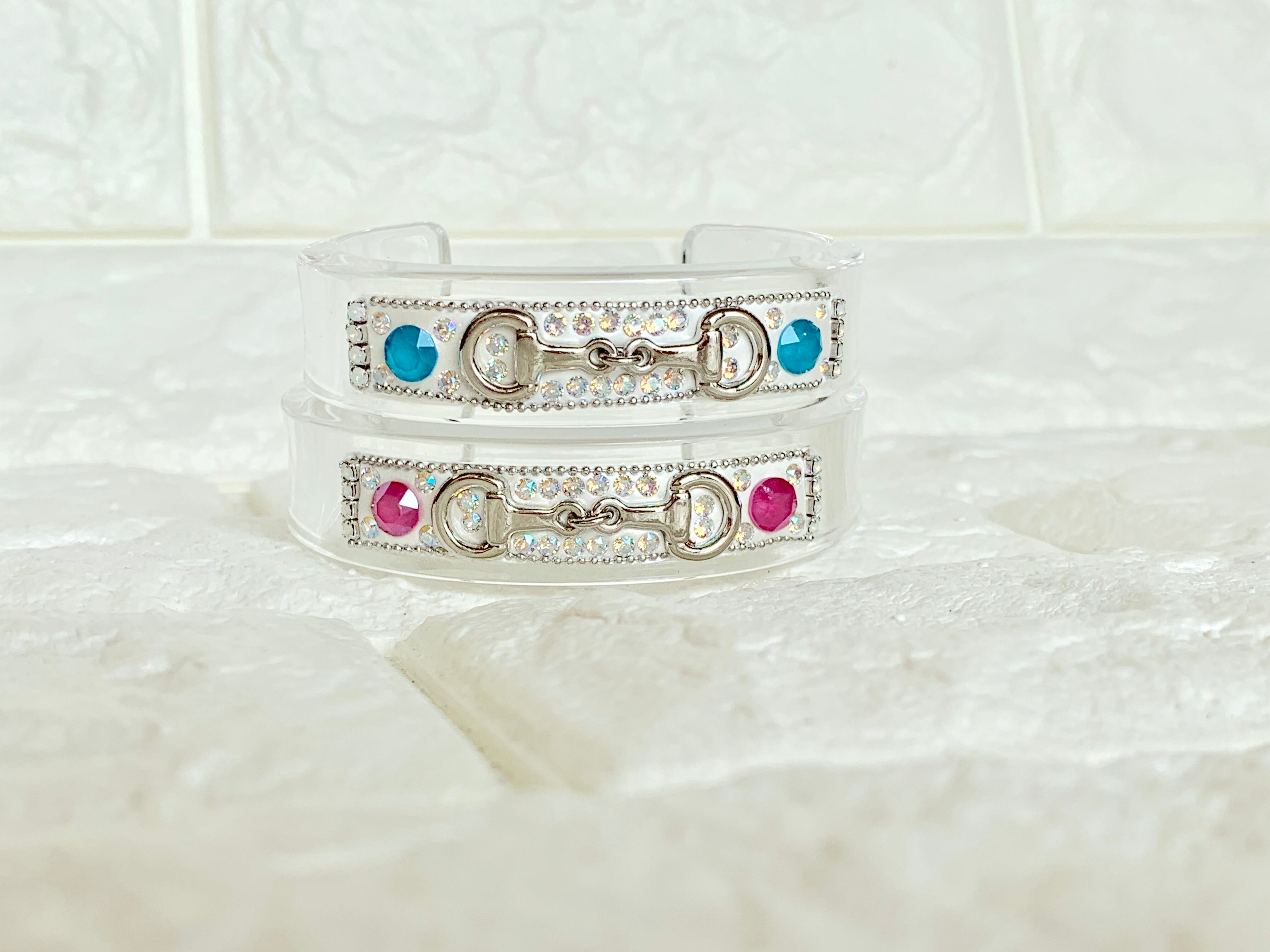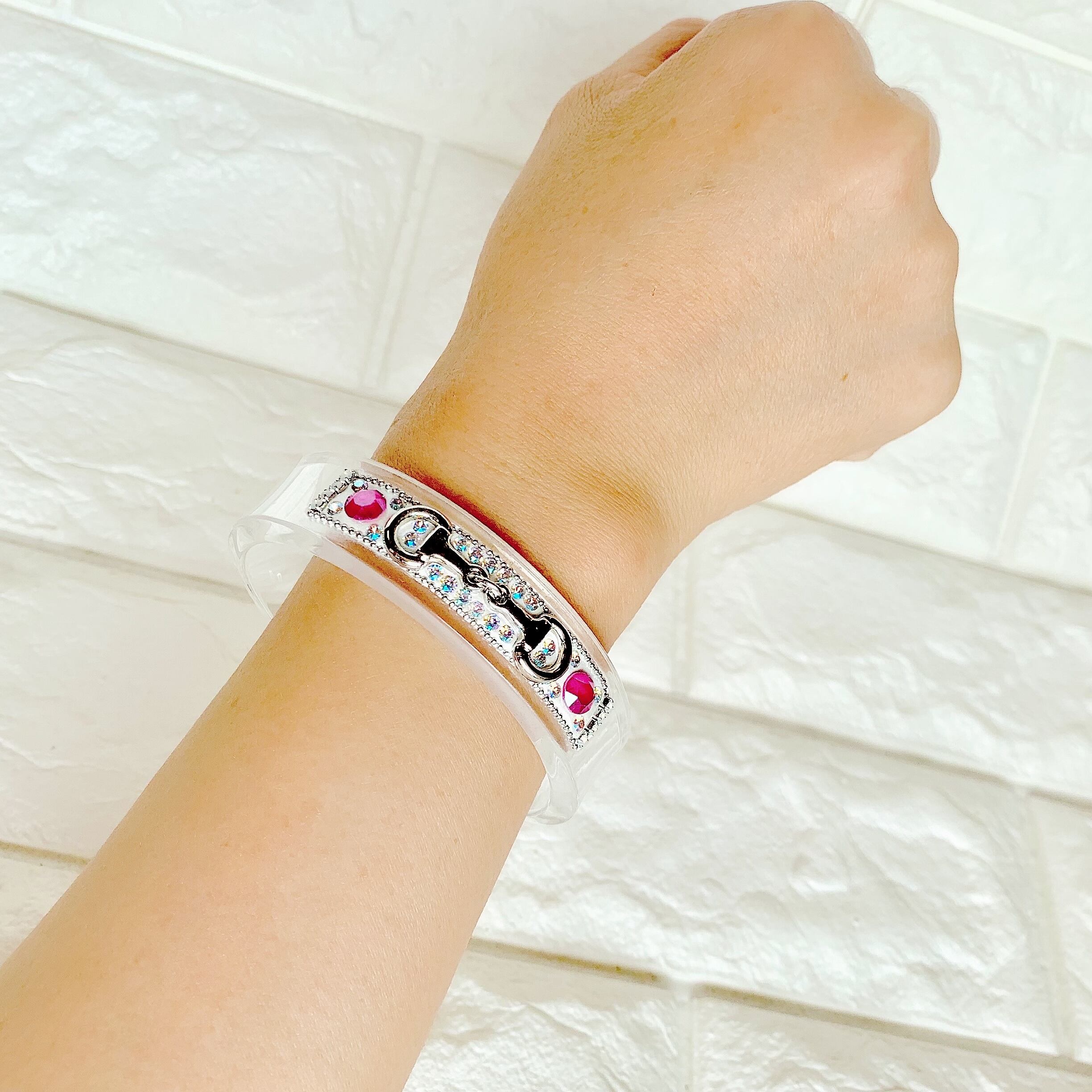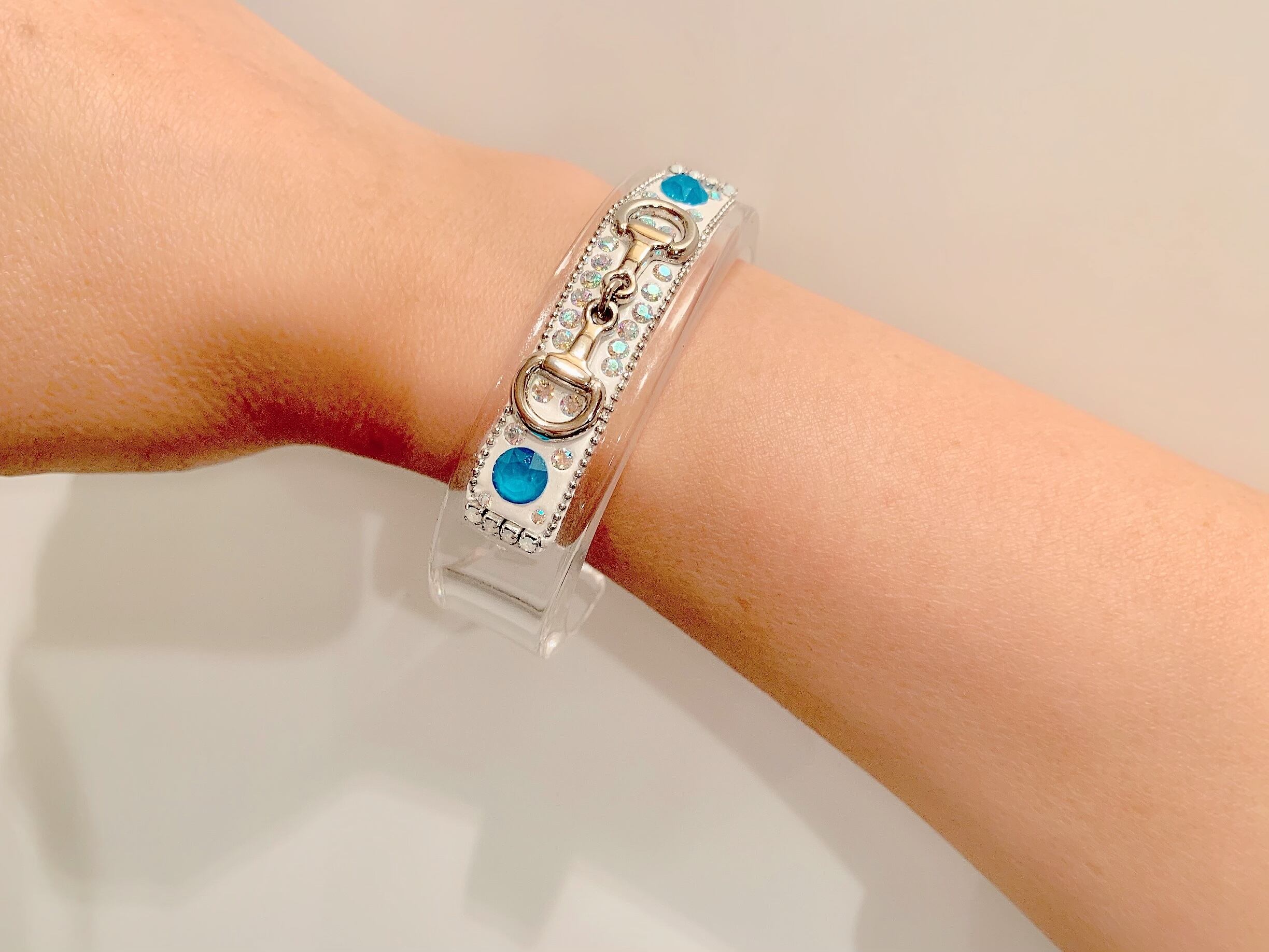 ホースビットをキラキラのスワロフスキーであしらった、クリアで美しいバングルです。