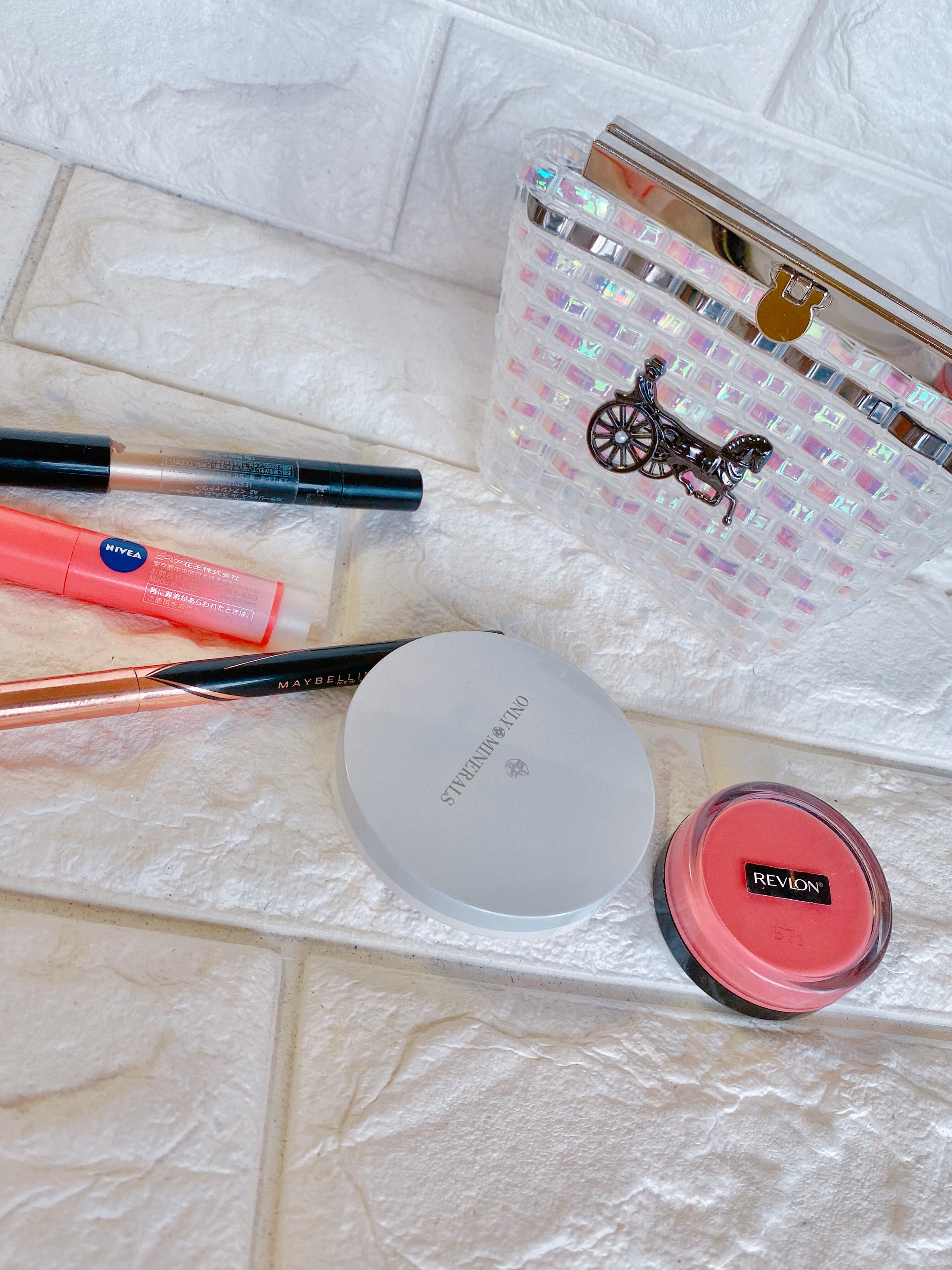 お化粧品道具なら、写真のようにコンパクト、チーク、リップクリーム、アイライナーなど一式入る大きさです。