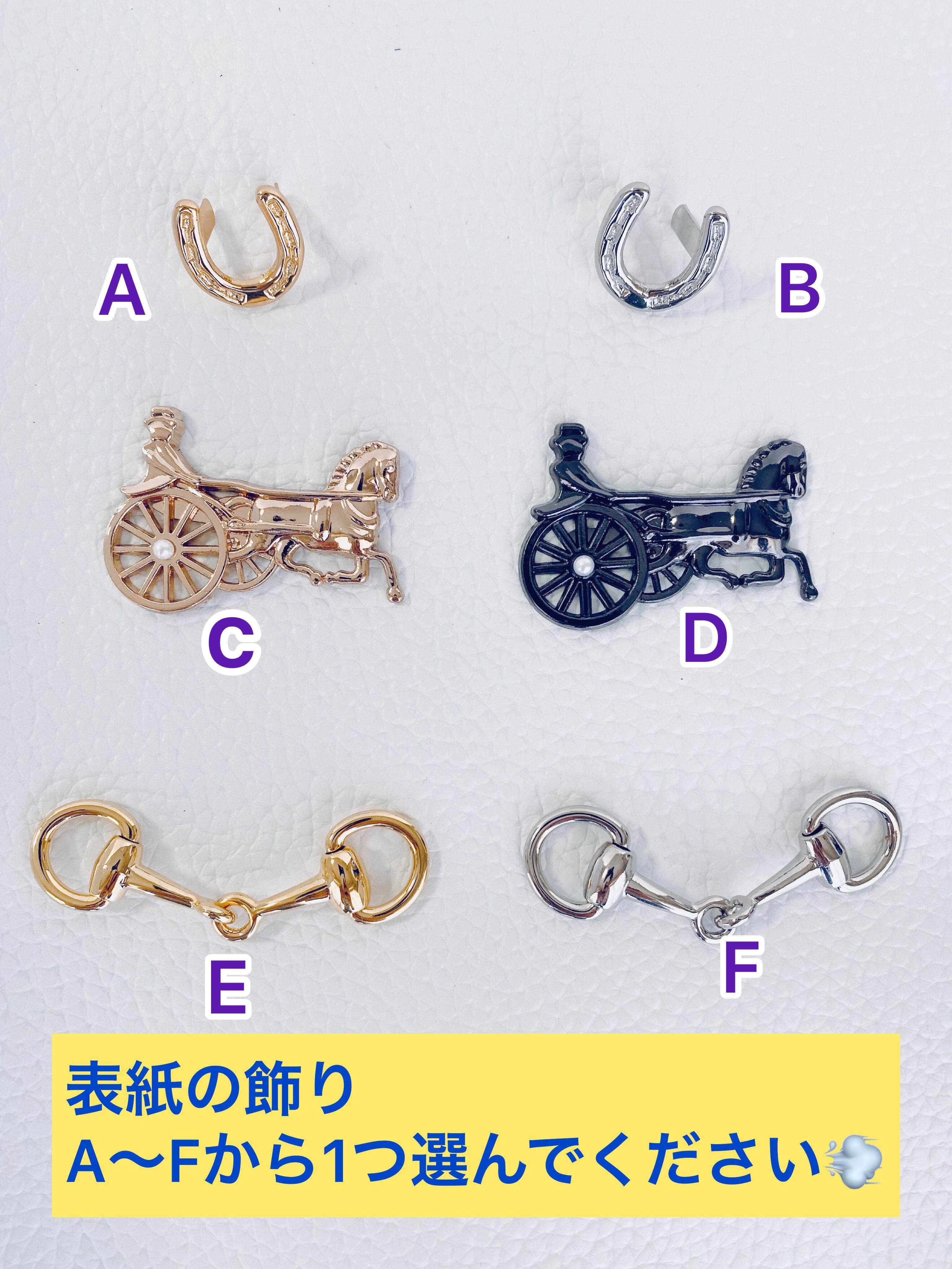 ベースカラー1色とストライプカラー2色までを選んでいただき、馬モチーフ金具も6種類から1個選べます。