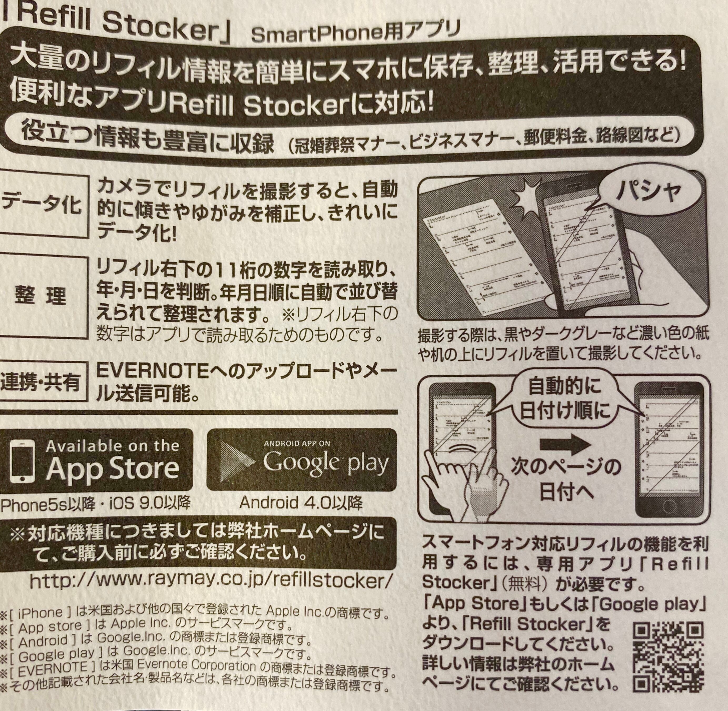 (大量のレフィル情報を簡単にスマホに保存、整理できるアプリRefill Stockerに対応しています。)