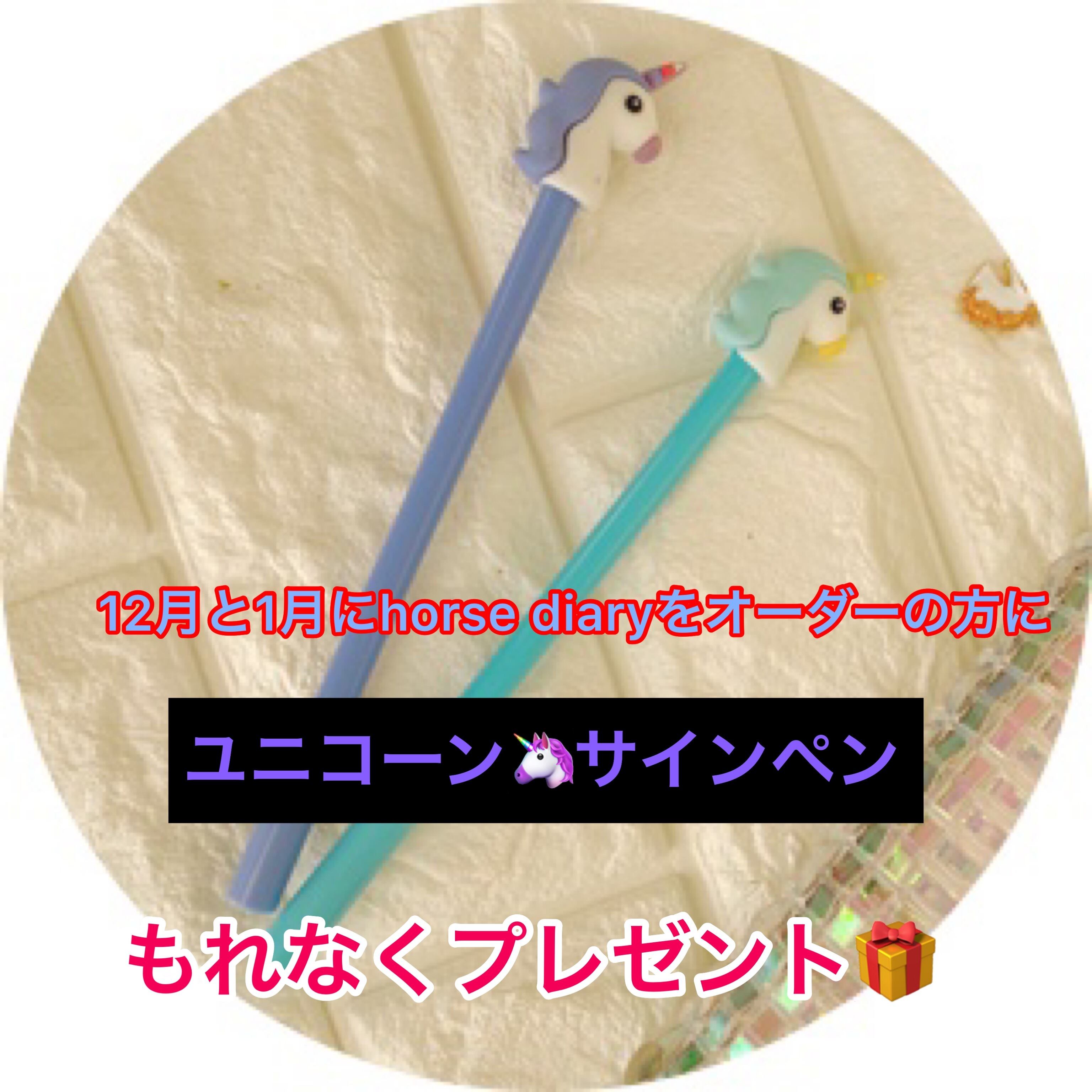 2019年12月、2020年1月は新発売記念に写真のユニコーンサインペン(水性)を1本もれなくプレゼント。