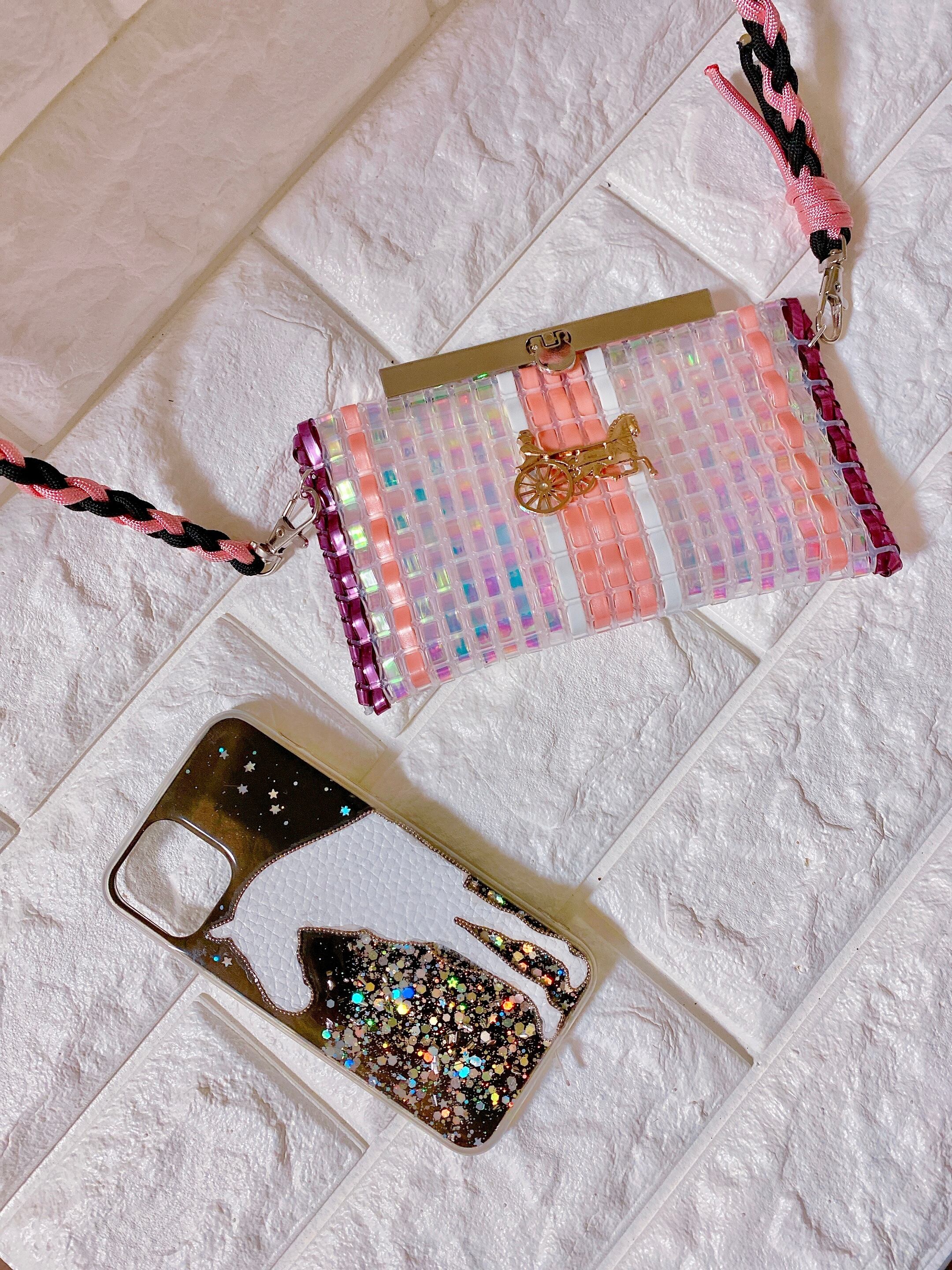 大きめ画面のスマホサイズでお作りした場合は、クラッチバッグのような使い方も可能です。