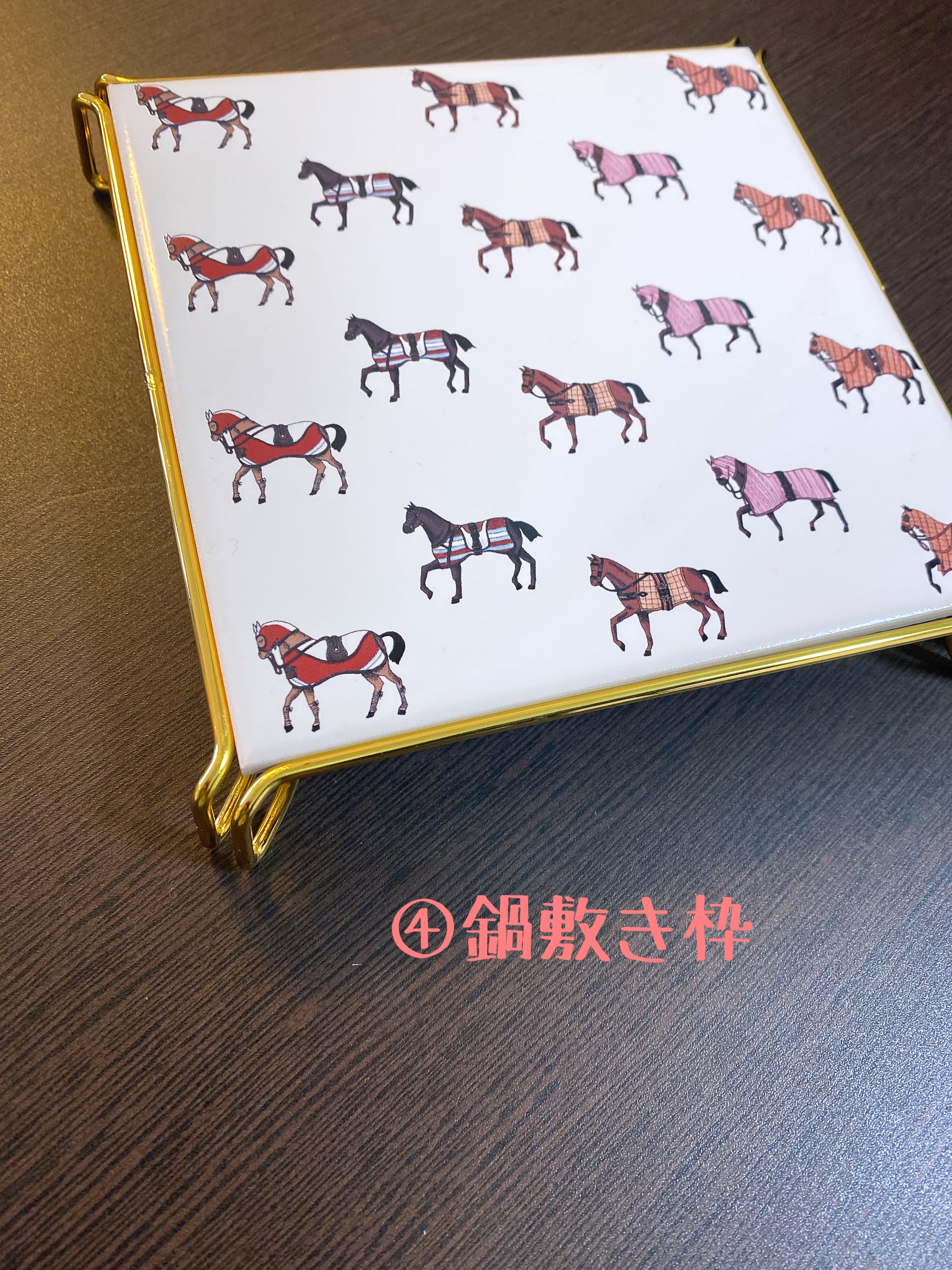 鍋敷き枠は高さ1.5cm程度、タイルアート『flower horse』がぴったり収まります。