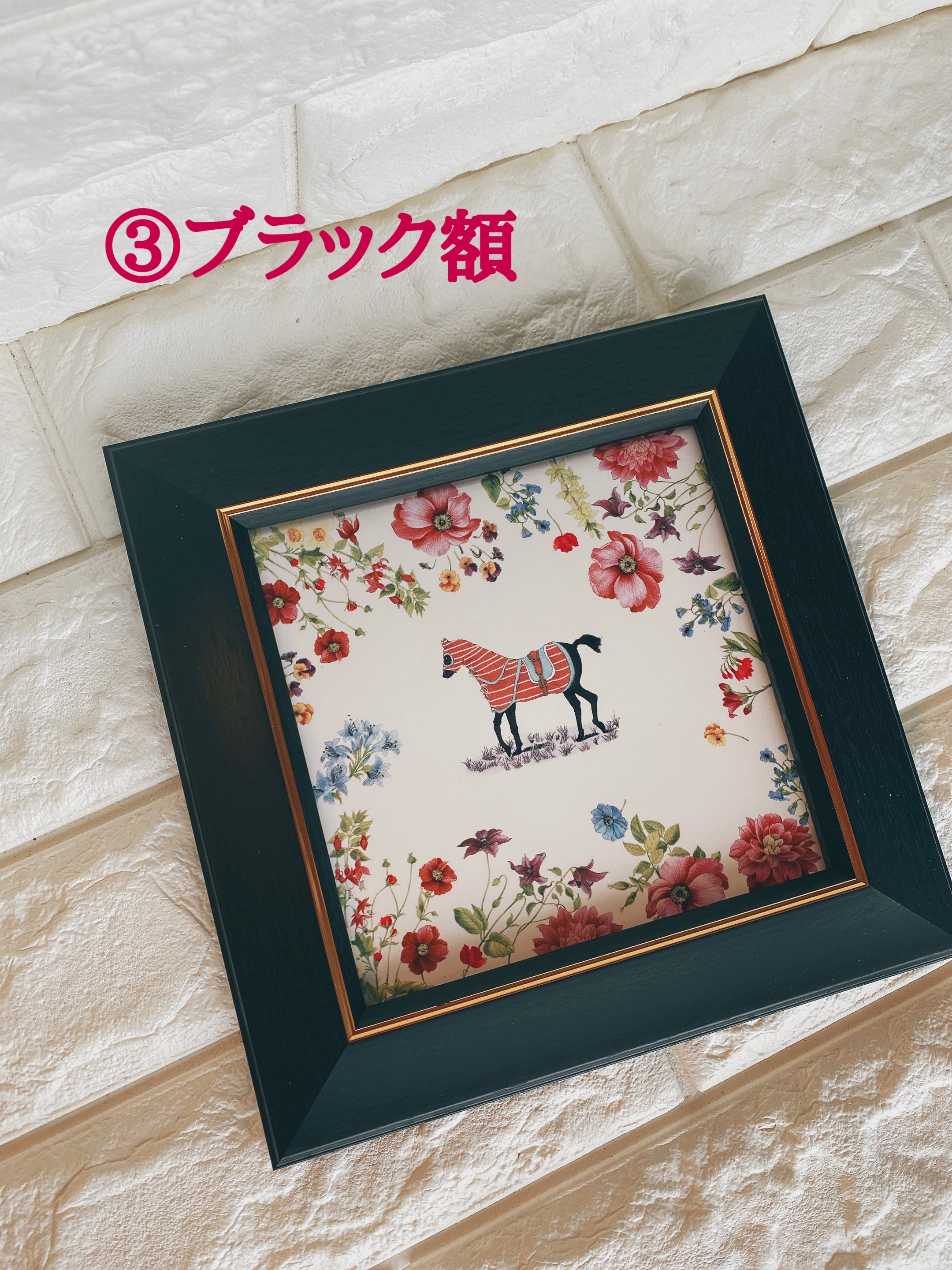 ①シルバーの額縁に加えて、②ブラウン額 ③ブラック額