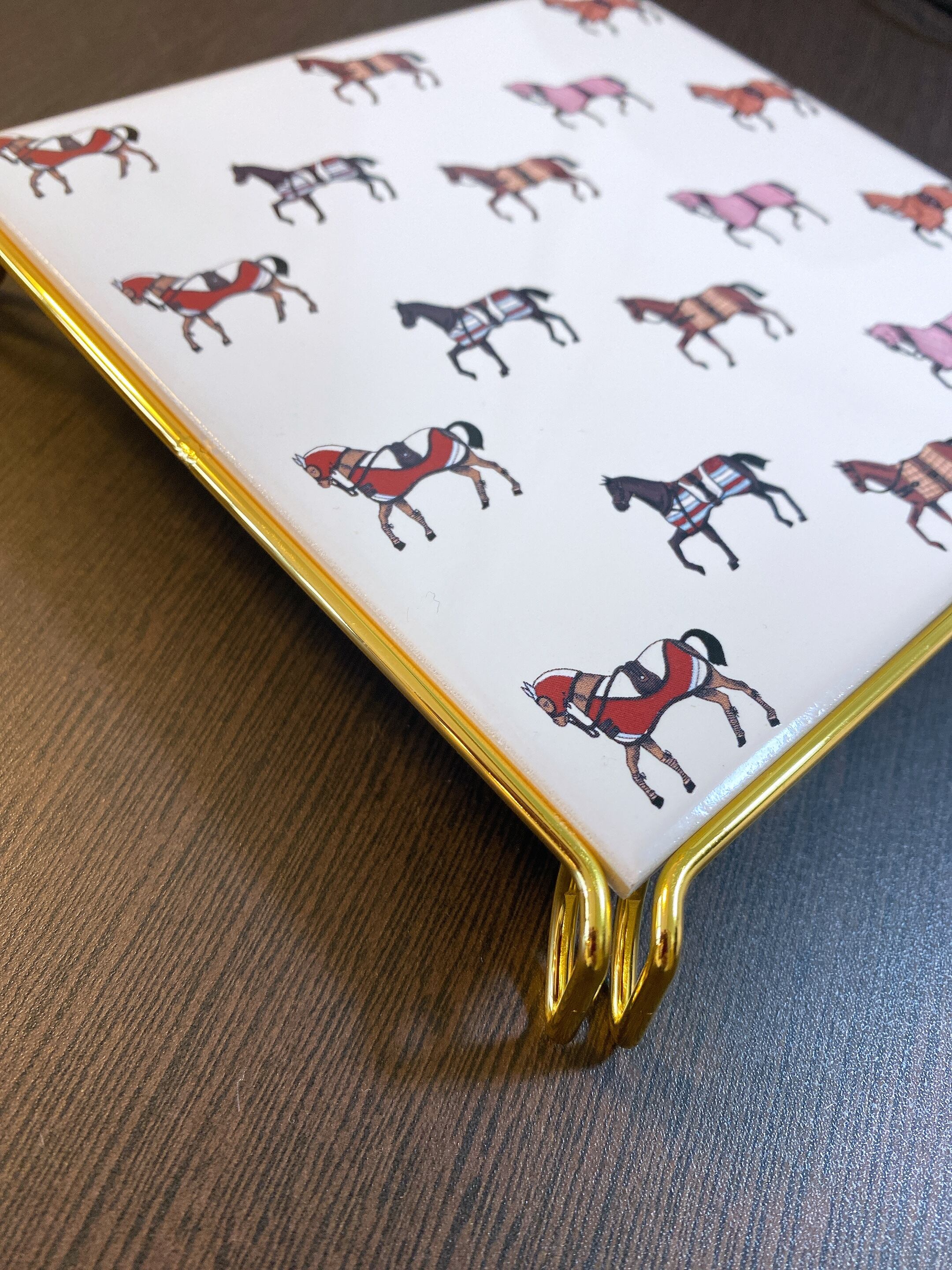 陶器製タイルに絵付けをし、焼成した15cm角の正方形パネルのアート作品です。