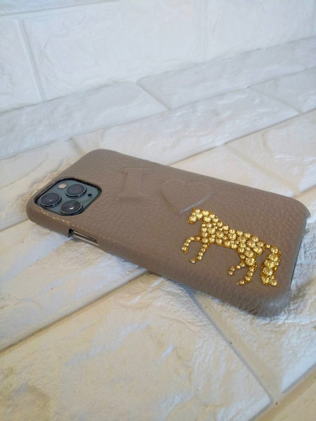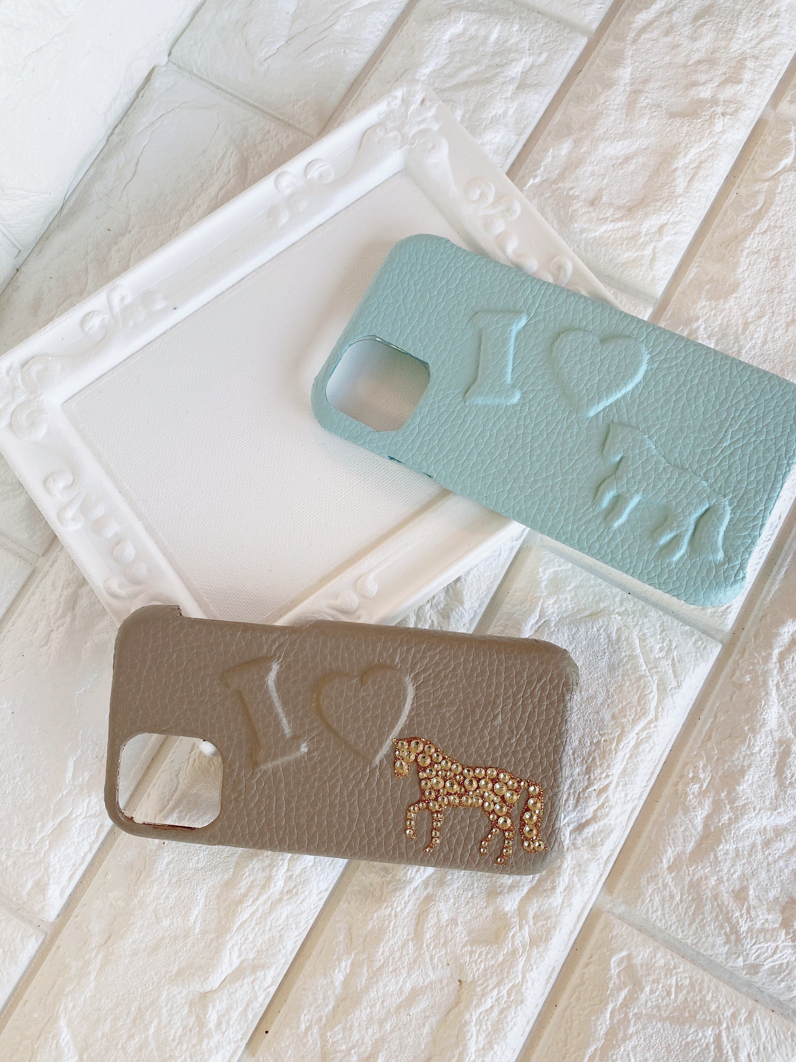 ★機種のサイズによっては写真の見本より文字や馬の大きさが大きく、または小さく見える場合がありますが、小型機種以外は基本的に同じ大きさの型を使用してエンボス加工しております。