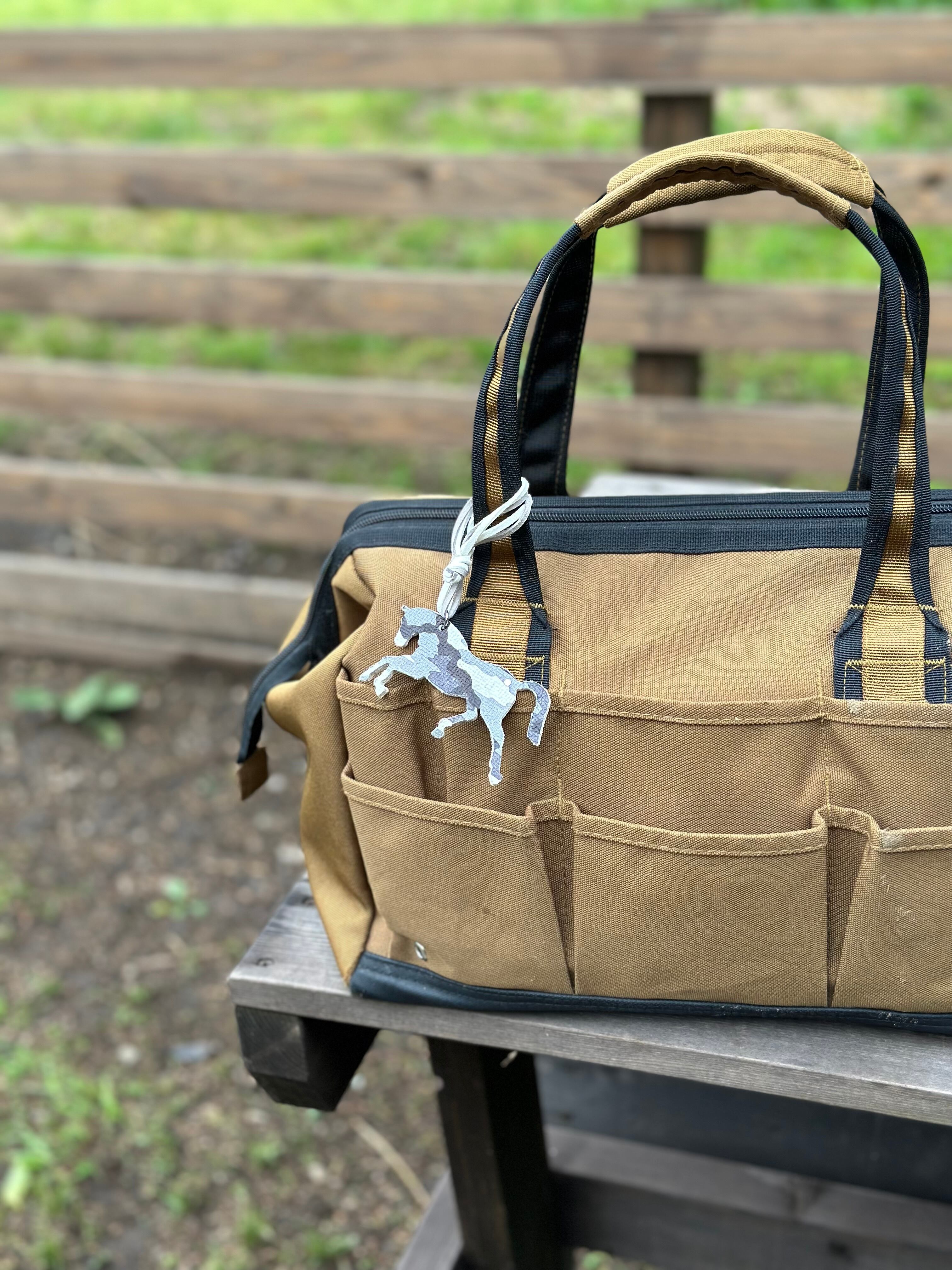 装飾はあえてキラキラさせず、ワンポイントのひと粒スワロフスキーと、ネックレスチェーンには2色のスウェードコードで、馬のレザー感を強調させた作品です。