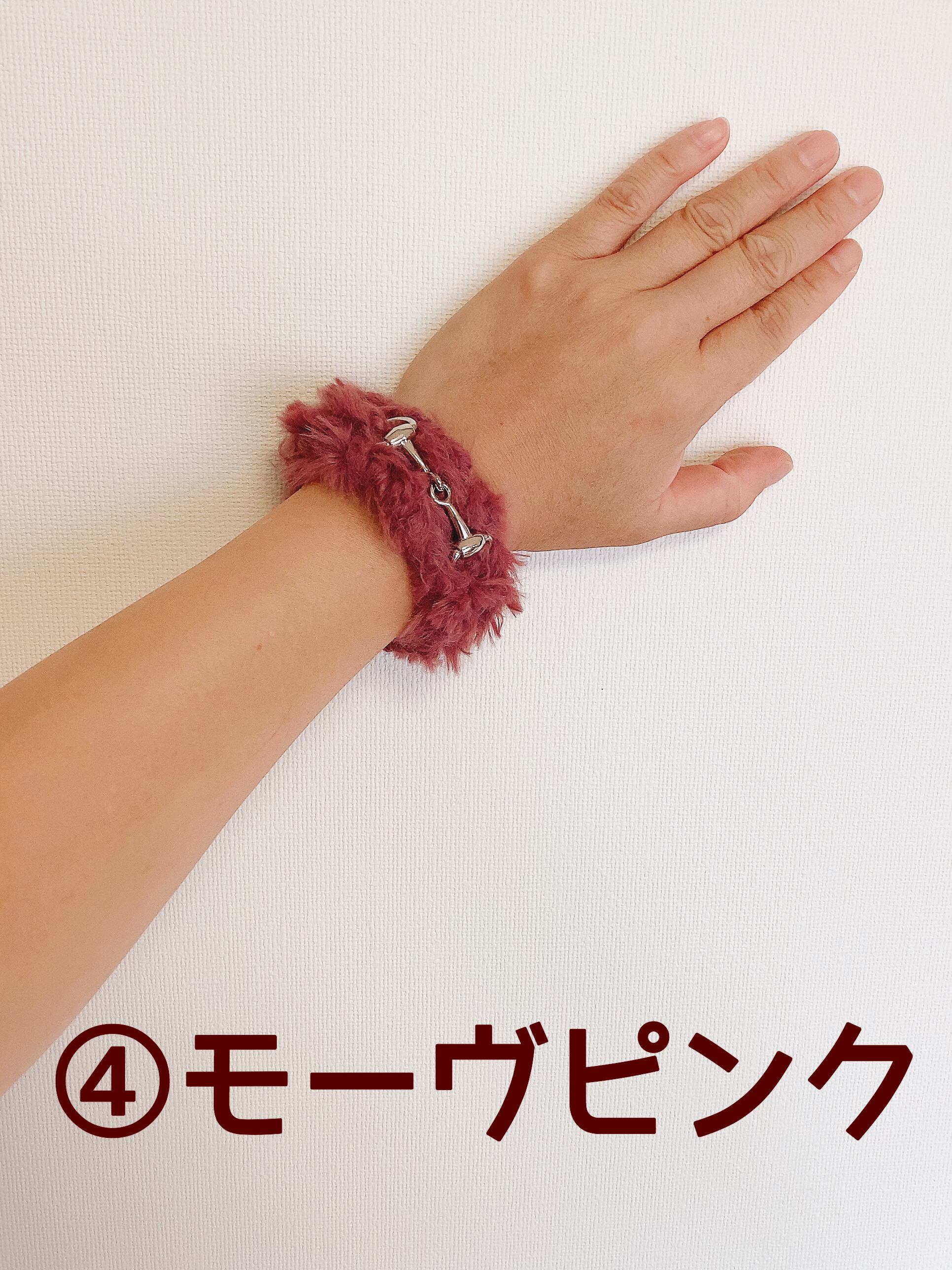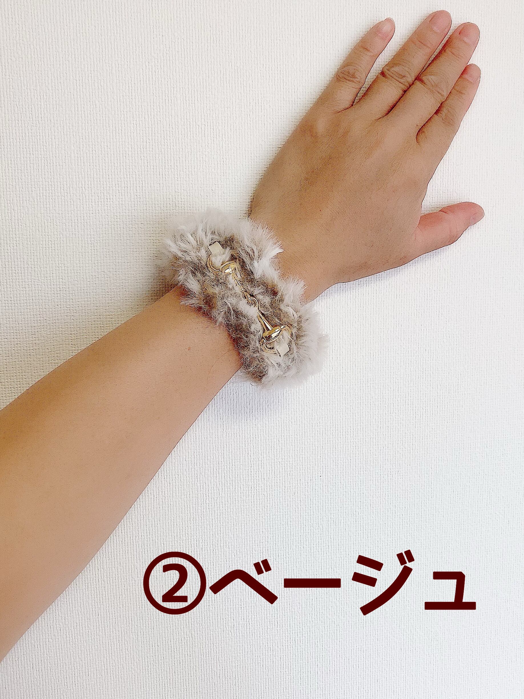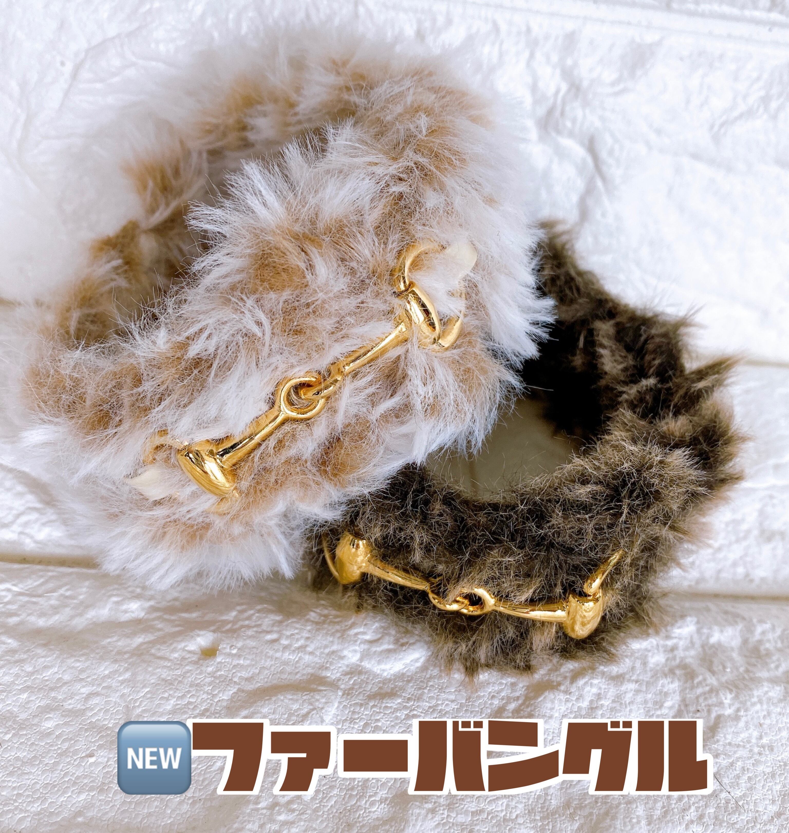 エコファーは非常に柔らかくふわふわの手触りで、1本のファーではなくファーの糸を細かく編み付けていますので、ファーの抜け毛もほとんどなく、バングルの形崩れもなく、軽くて温かいアイテムです。
