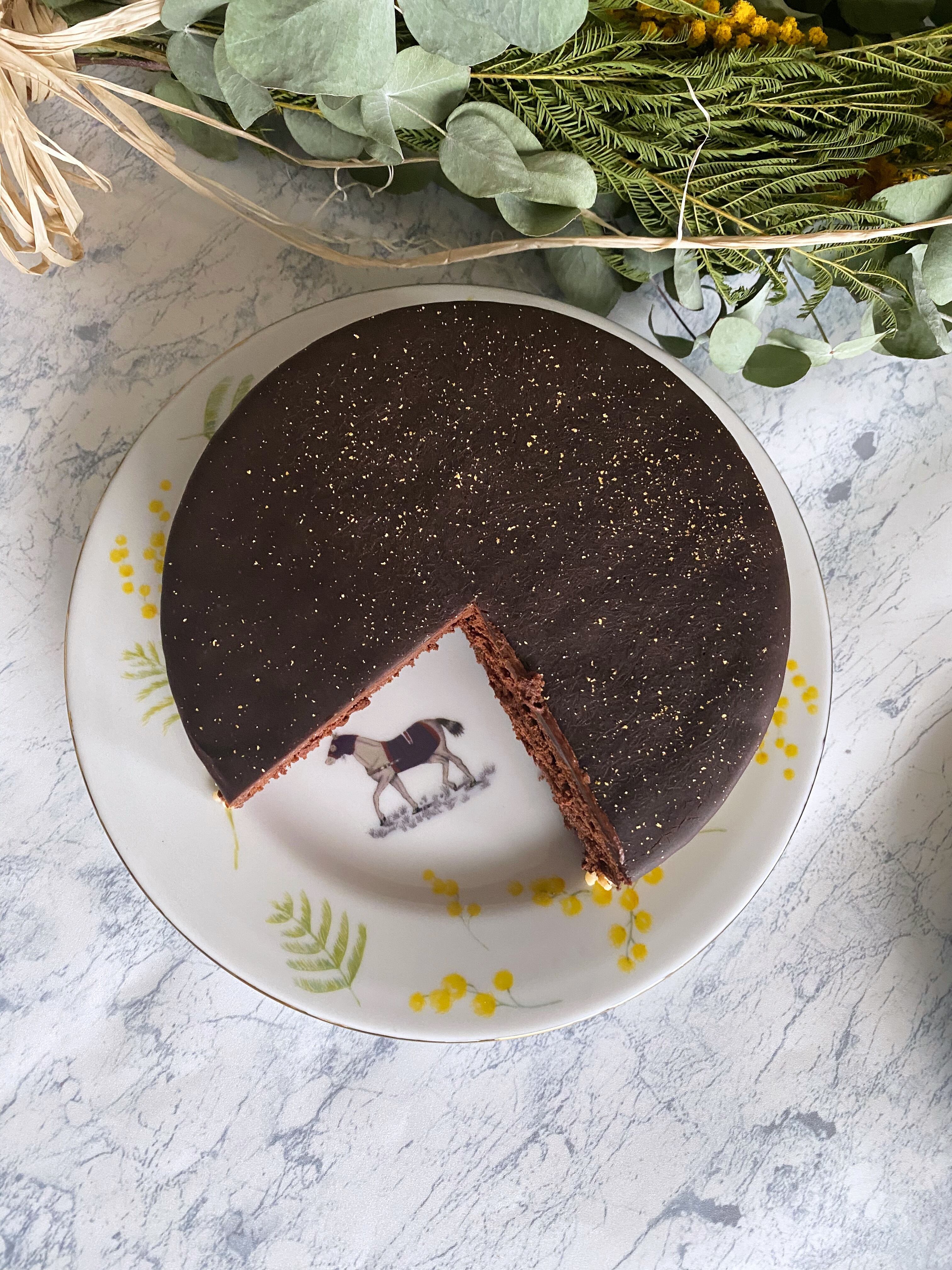 写真では19cmのお皿に14cmサイズのホールケーキを乗せています。