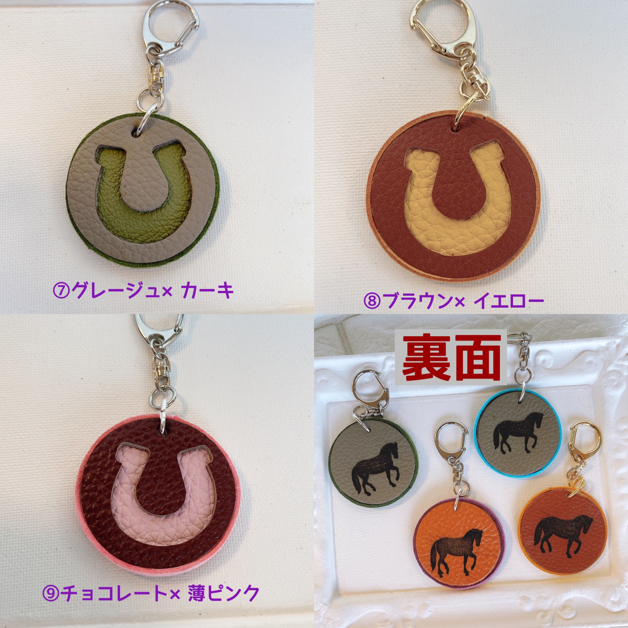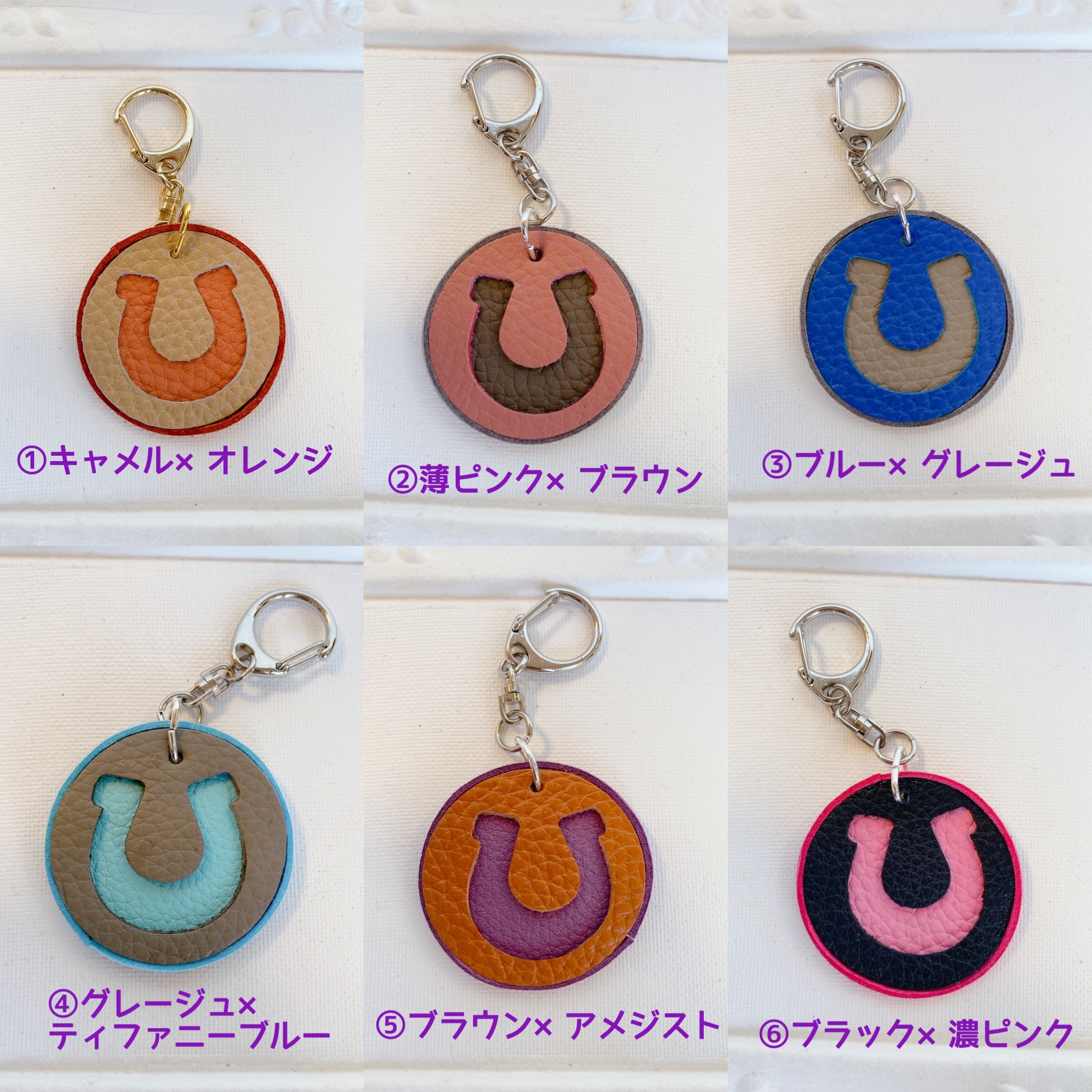 シュリンクレザー仕様のポップなデザイン、蹄鉄マークのキーホルダーです。