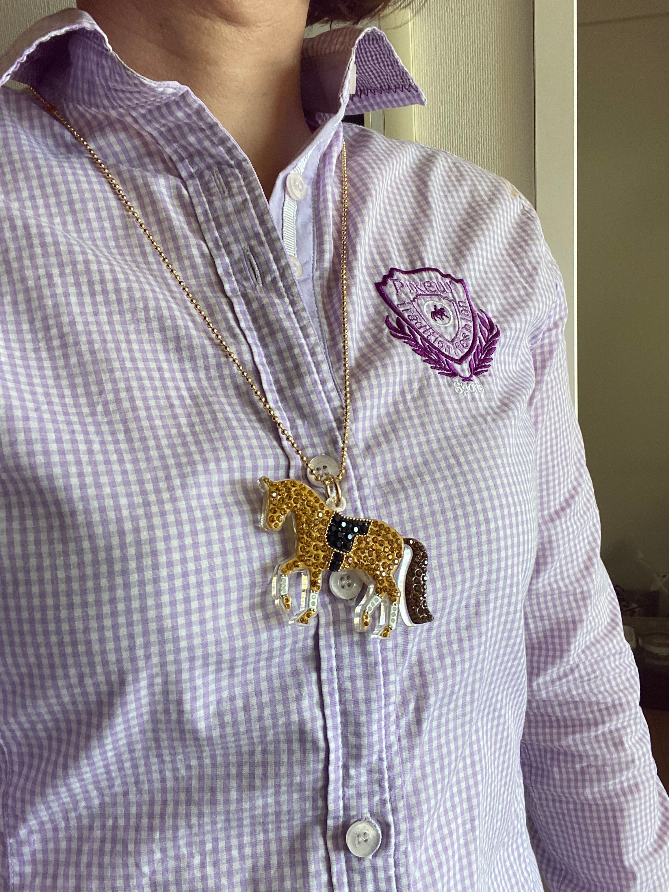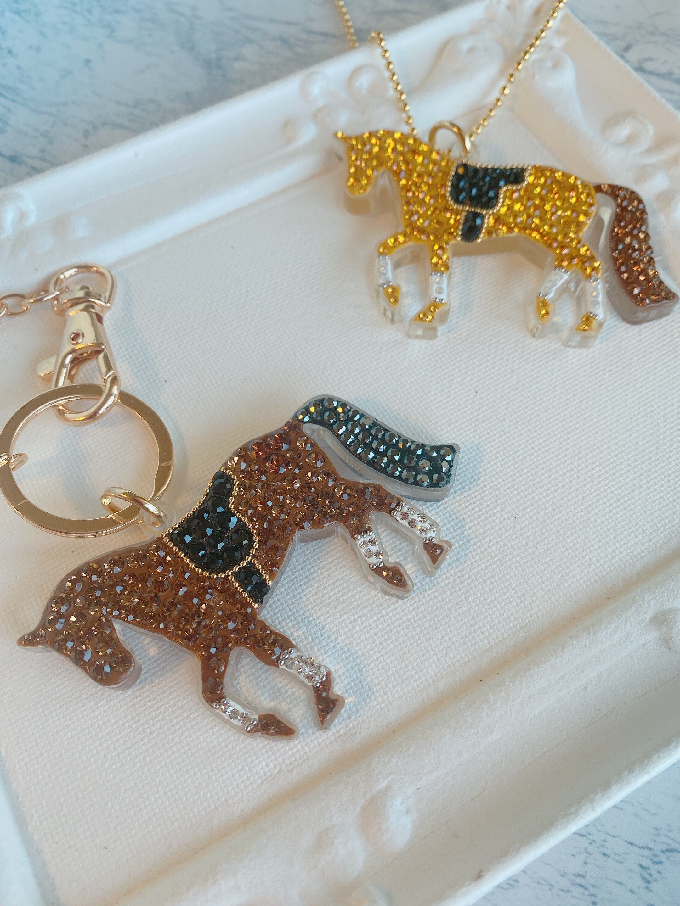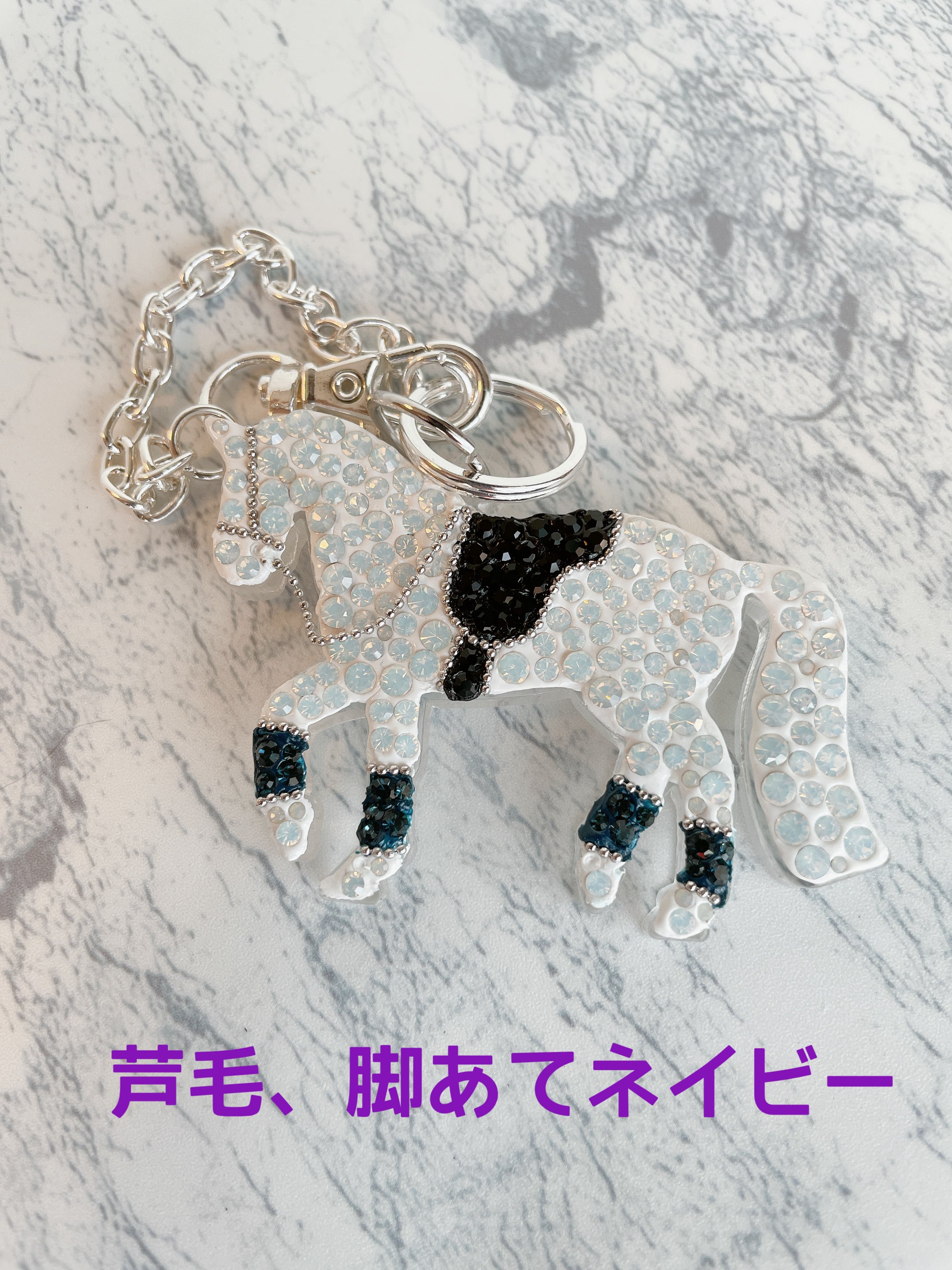 馬のお尻に大きめのスワロフスキー数粒と、馬シルエットをチェーンでかたどるデザイン。