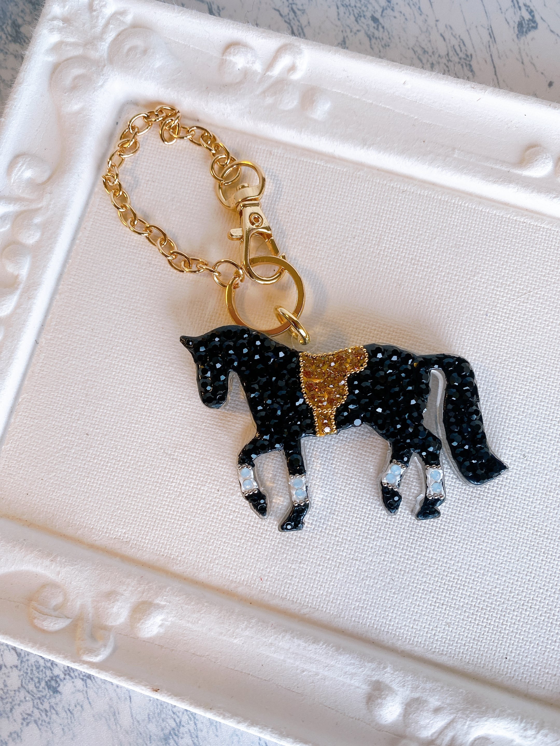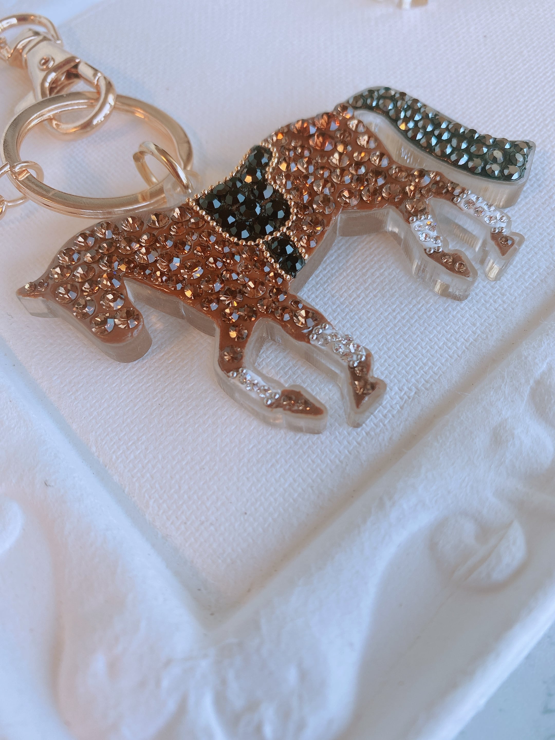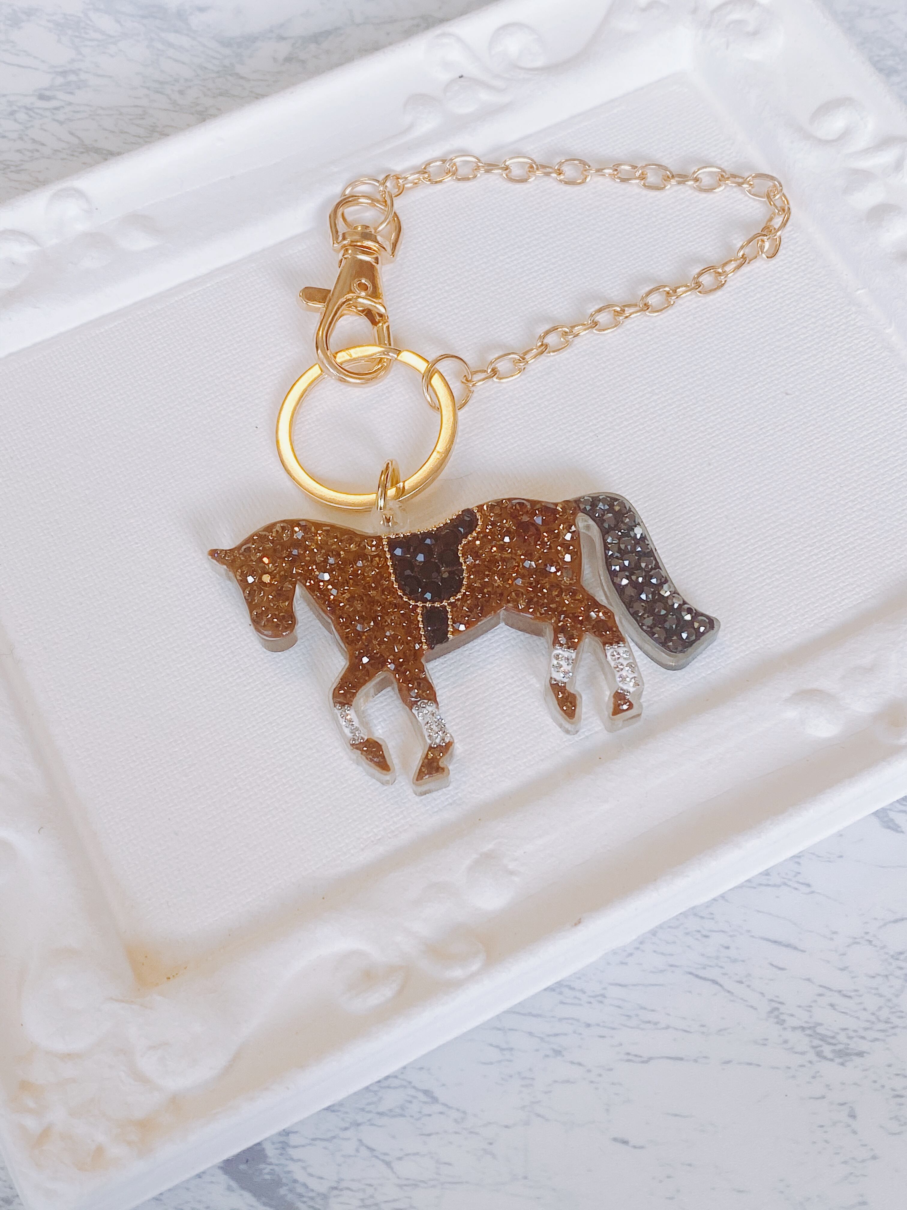 馬のお尻に大きめのスワロフスキー数粒と、馬シルエットをチェーンでかたどるデザイン。