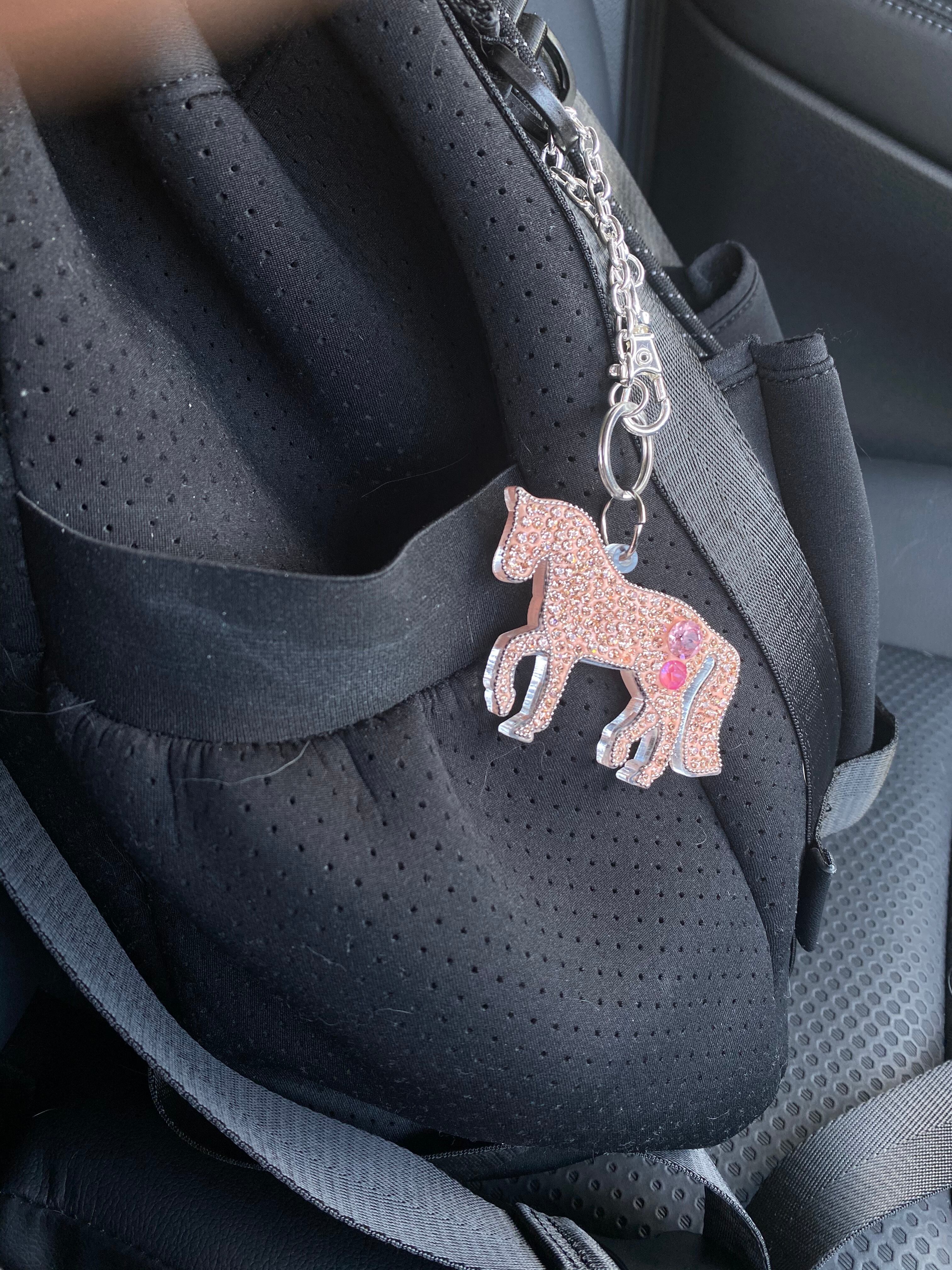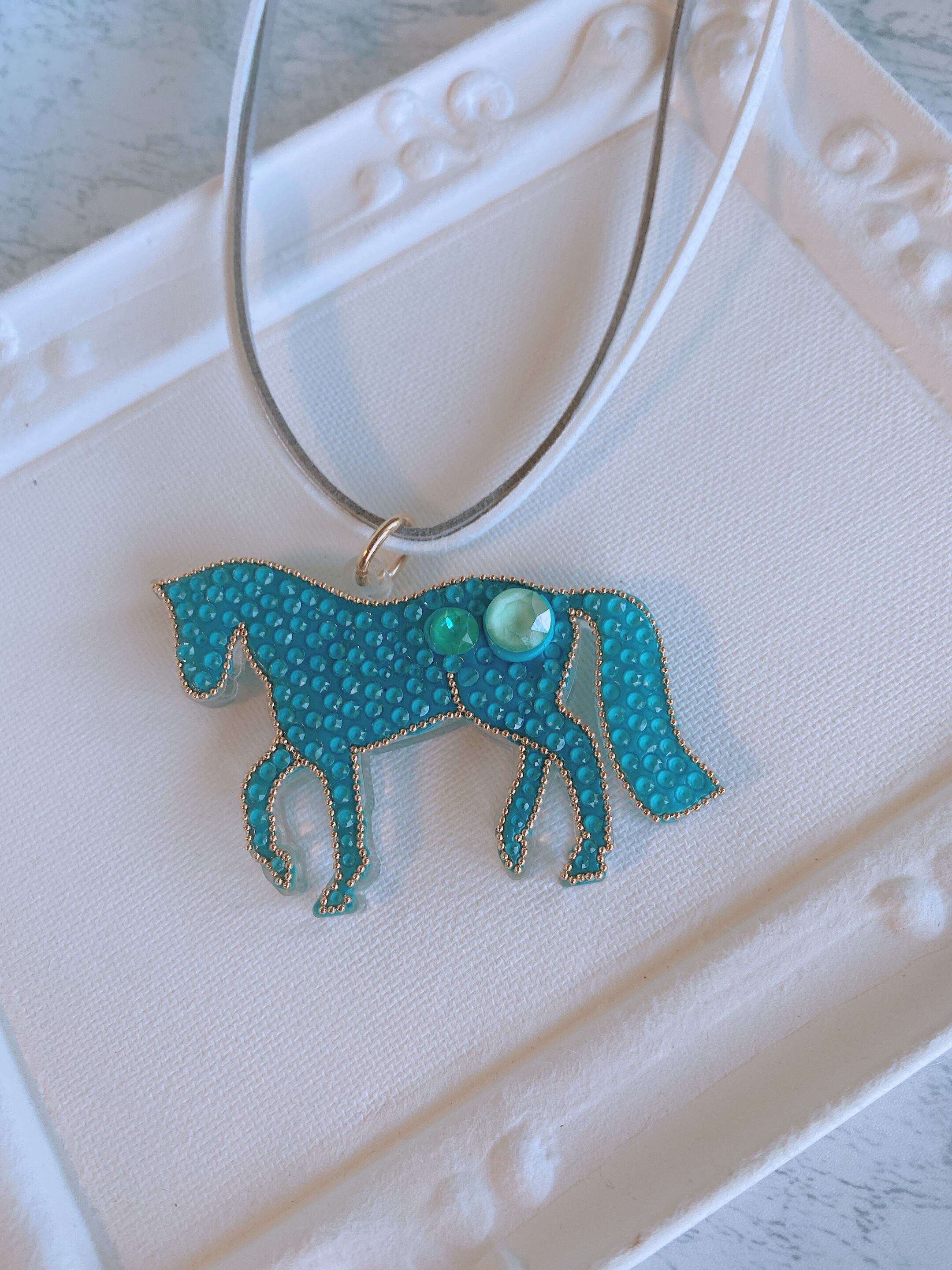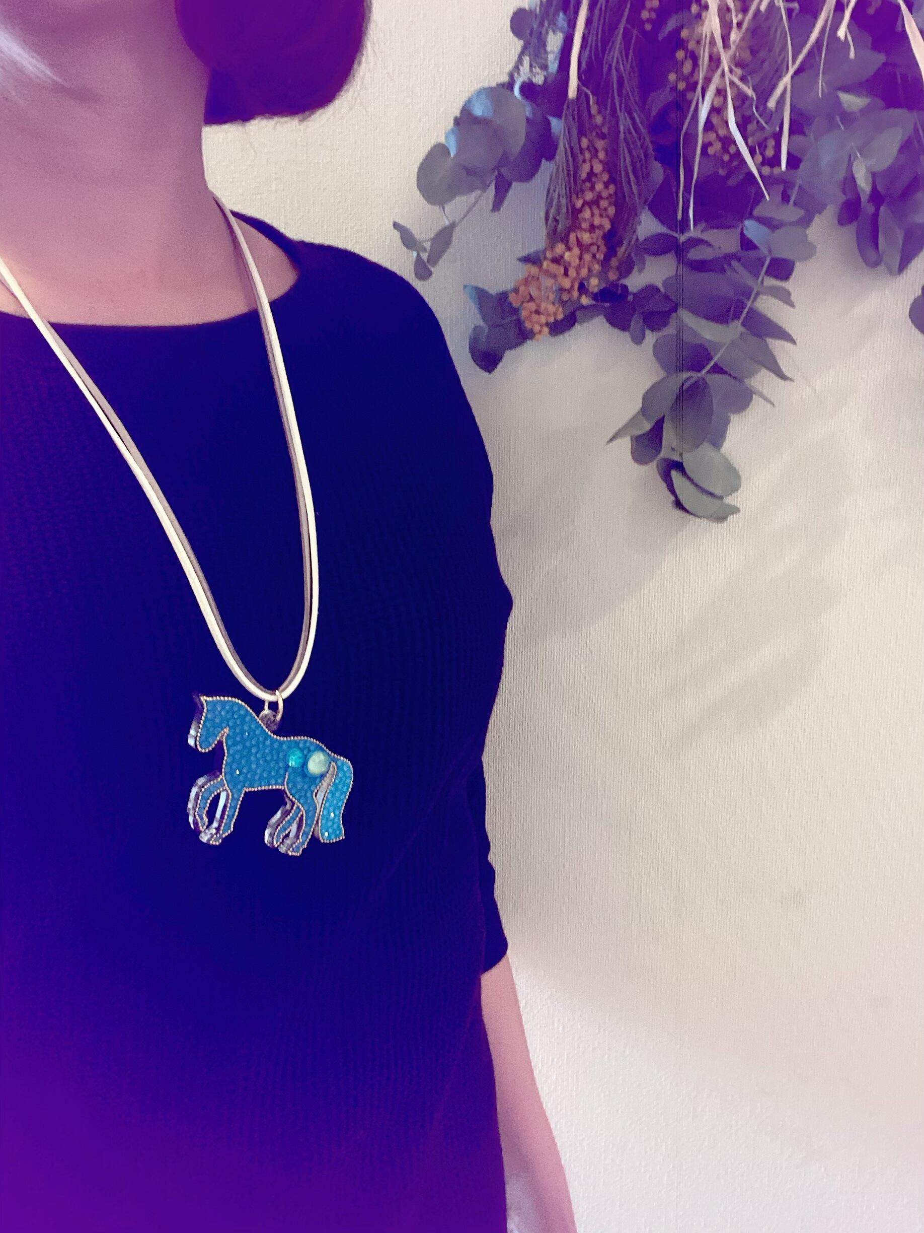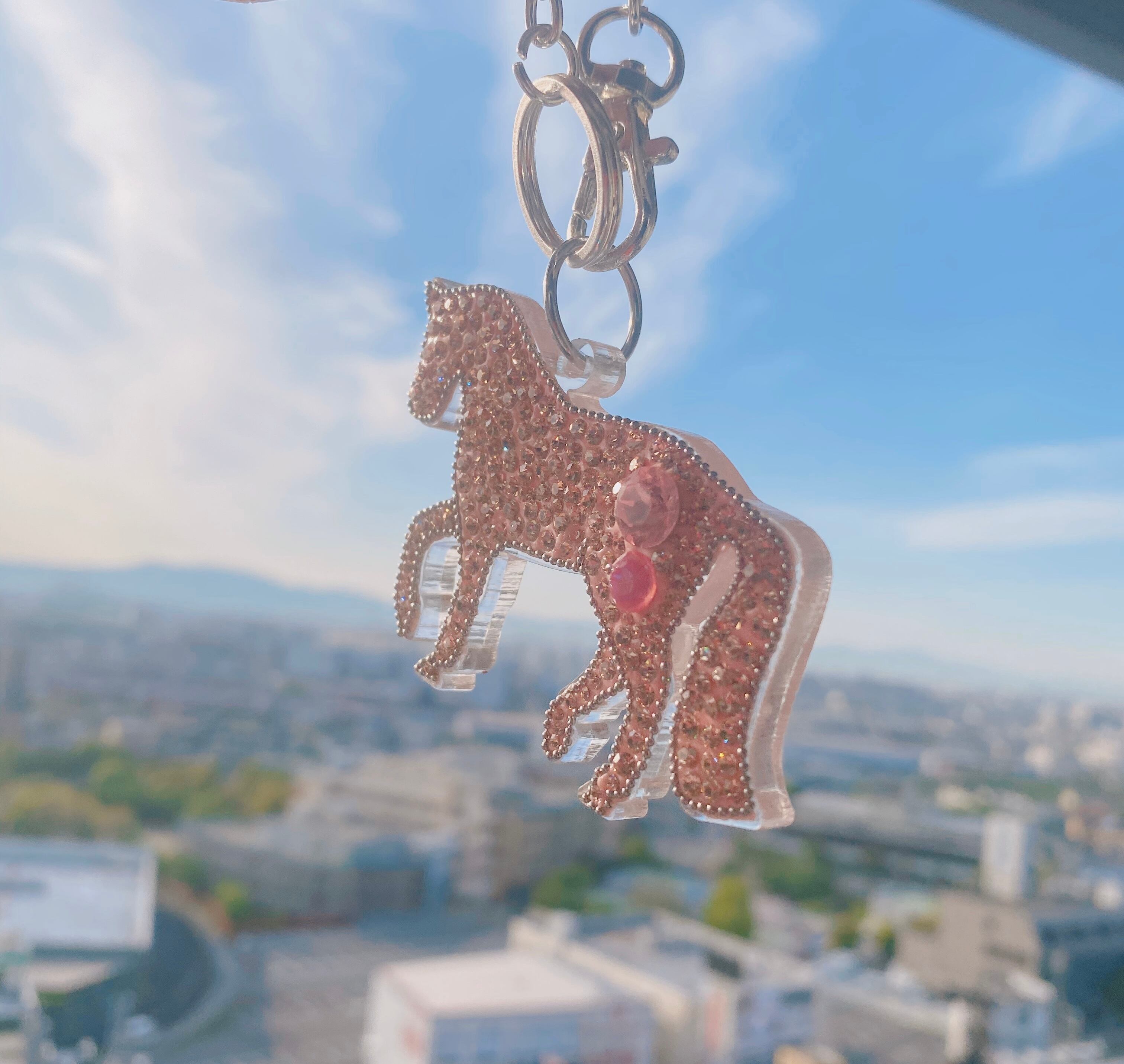 店主がレーザー加工機とアクリル板という素材に出会い土台から製作できるようになり、念願の美しいシルエットのドレッサージュホースのままで、丈夫なバッグチャーム、ネックレス販売に辿り着けました。