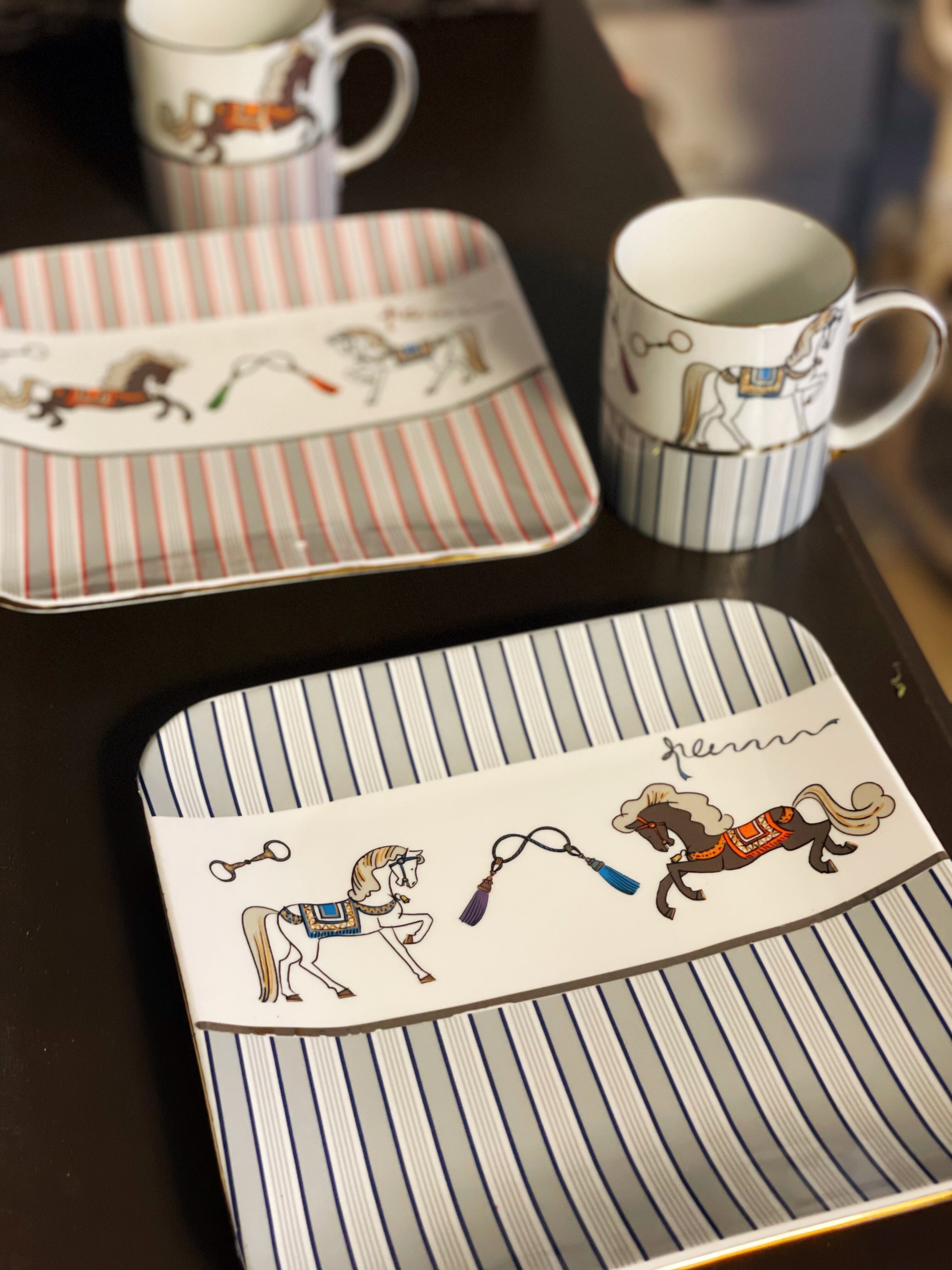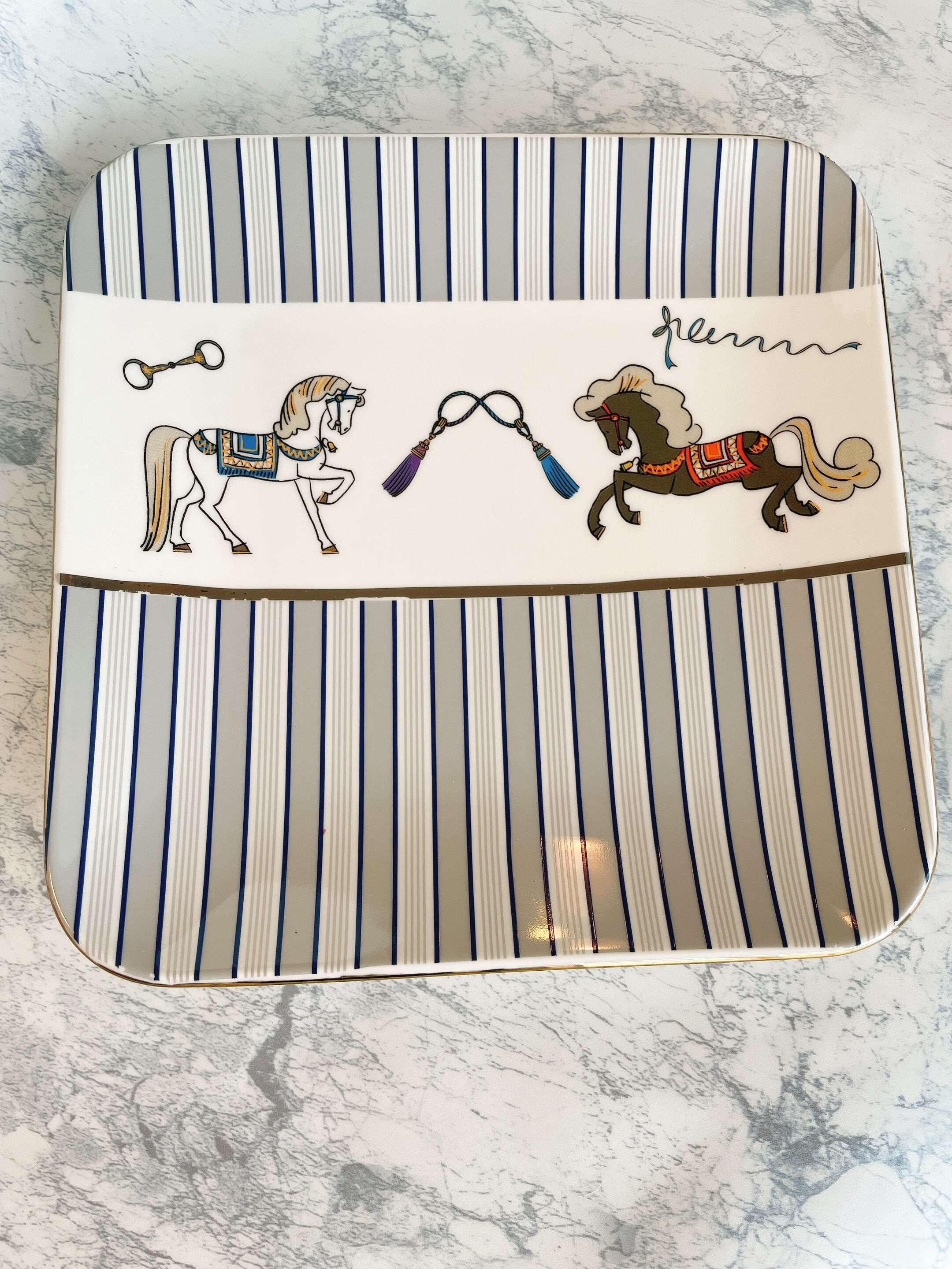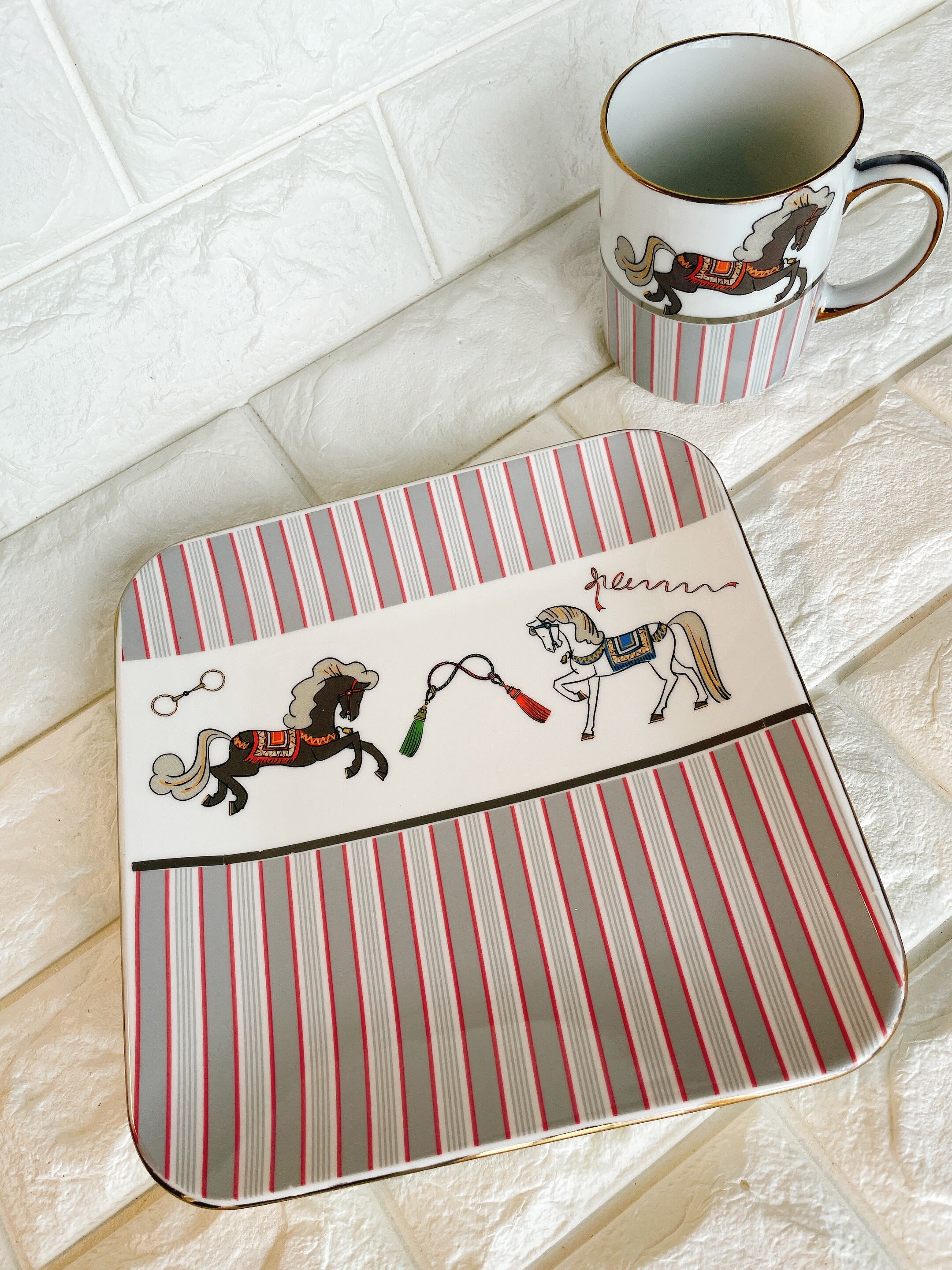 浅い窪みの21cmサイズのスクエアプレートは、絵皿のようにお馬さんが2頭(^^)