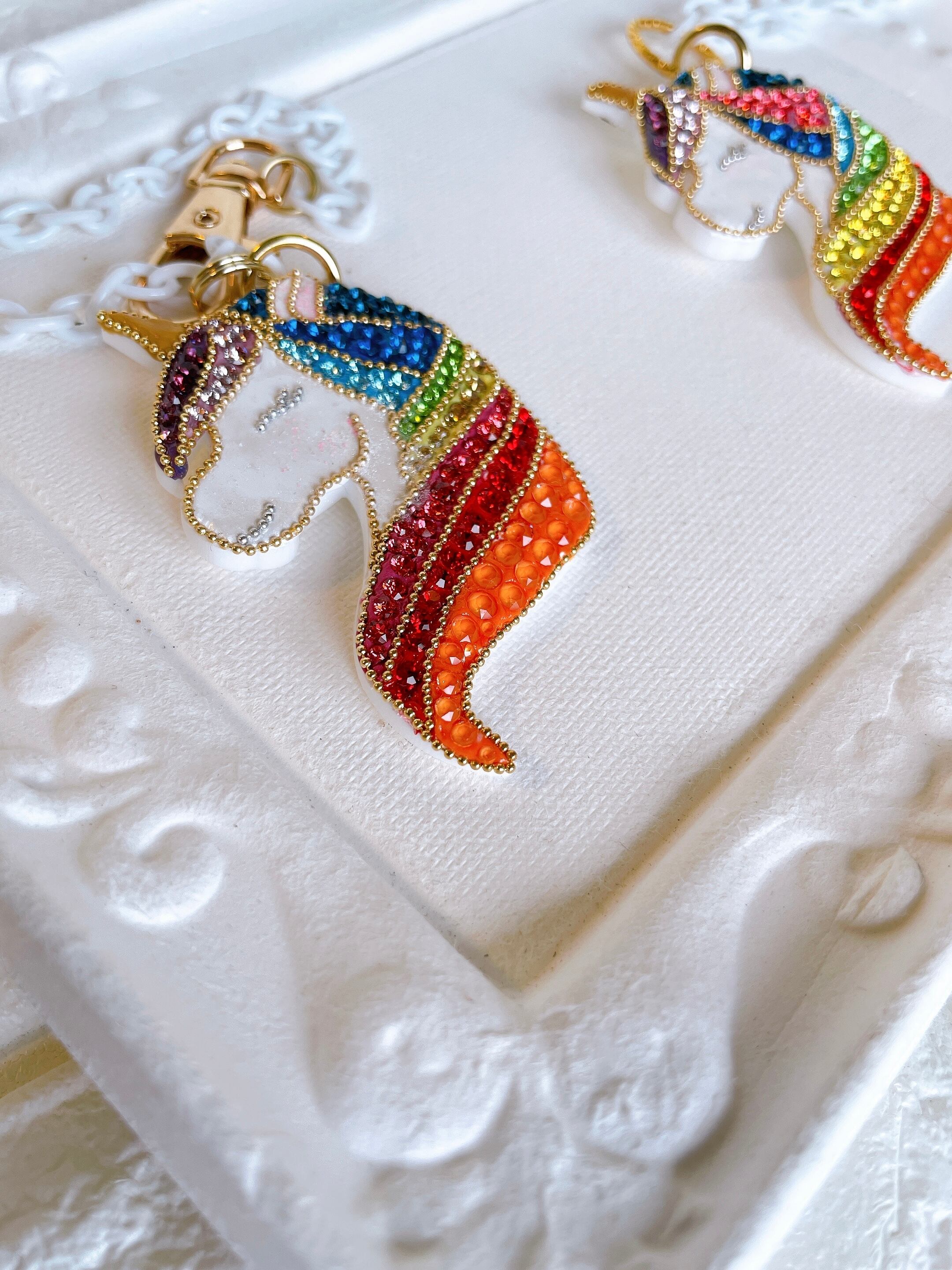 ゆめカワ系の代表、お子様からアダルト女子までに愛されるユニコーンの美しさ、可愛さを精一杯愛情込めてスワロフスキーで表現しました(^^)