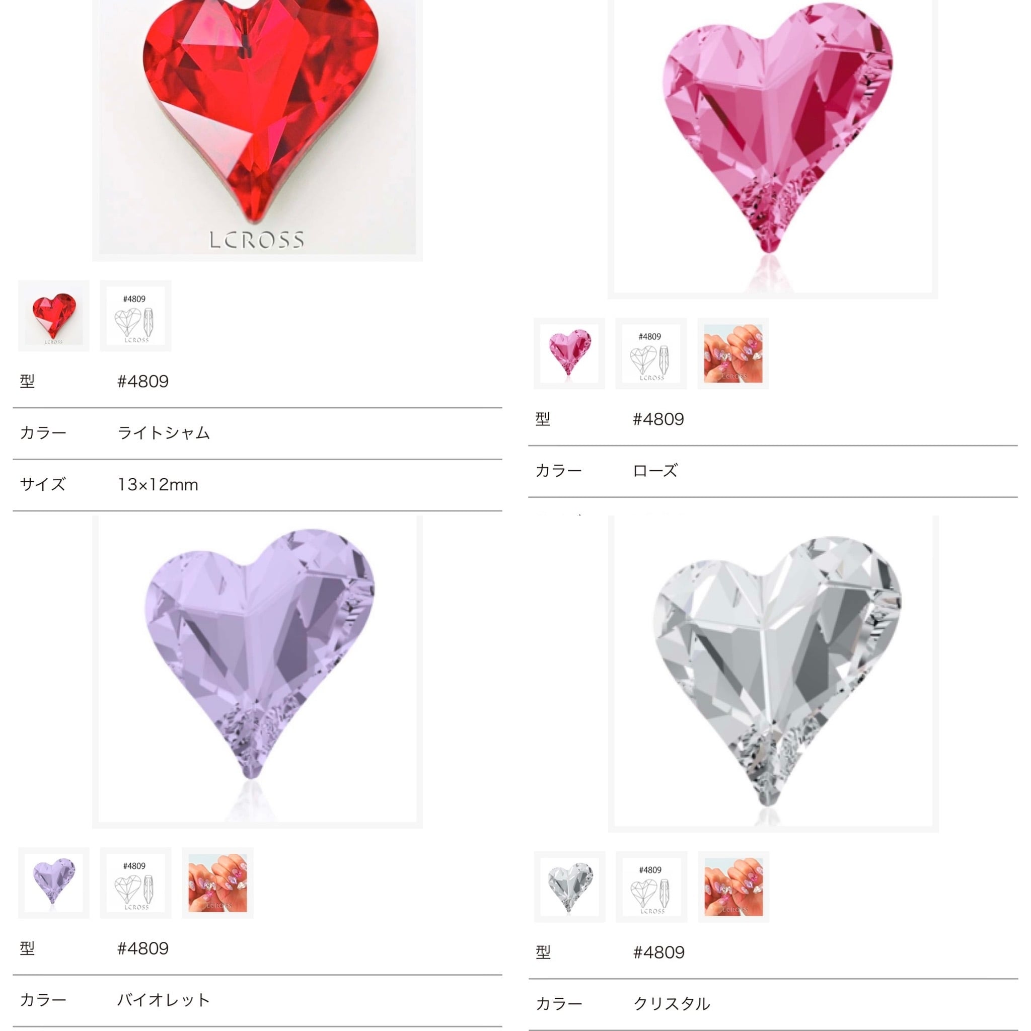 ハートのカラーはライトシャム、ローズ、ライトアメジスト、クリスタルの4色