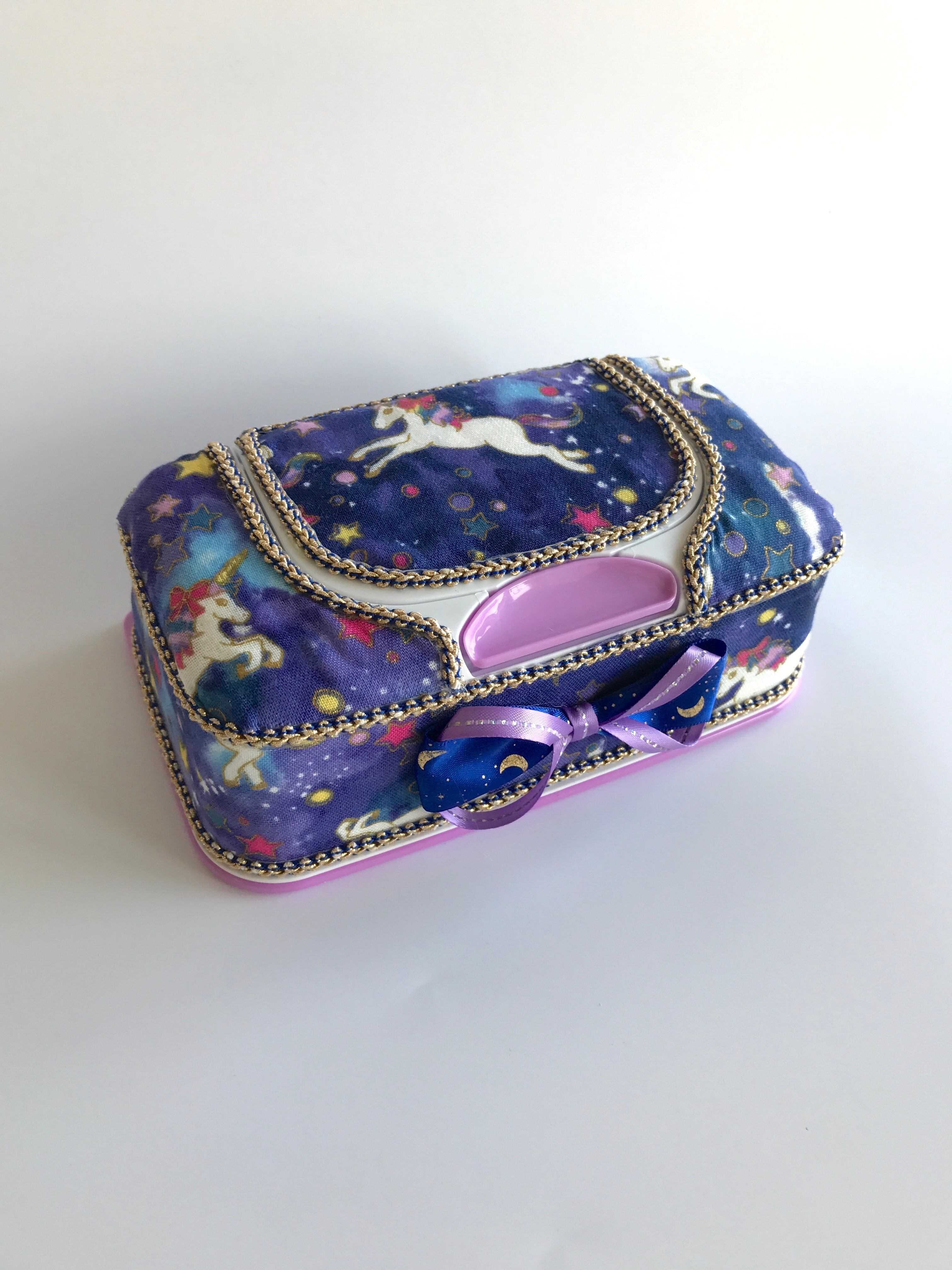 シルコットのウェットティッシュケースをユニコーン柄にデコレーションしました。