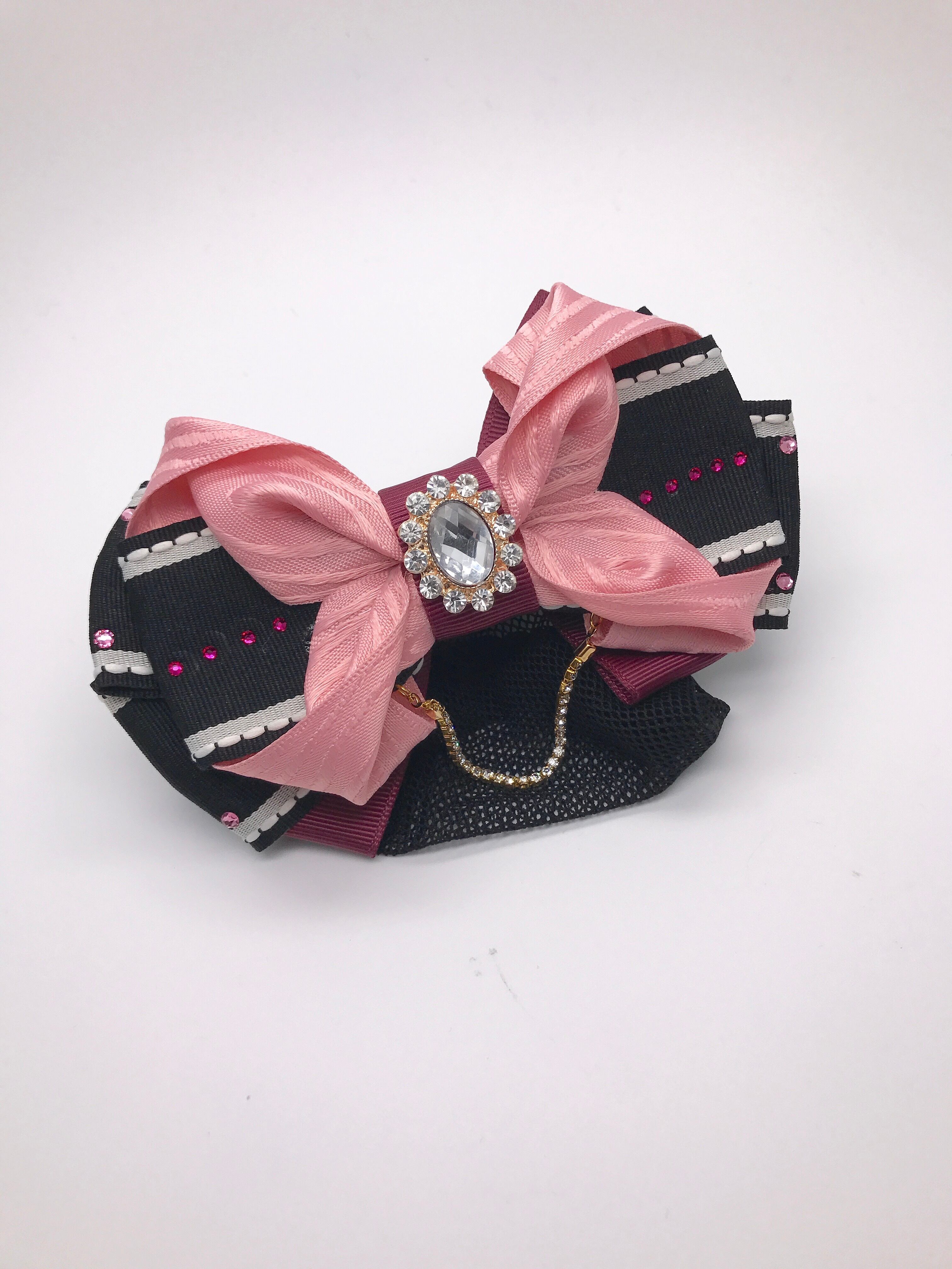 リボンには小さいスワロフスキー(ルビー)と大きめスワロフスキー(ローズピンク)をあしらいました。
