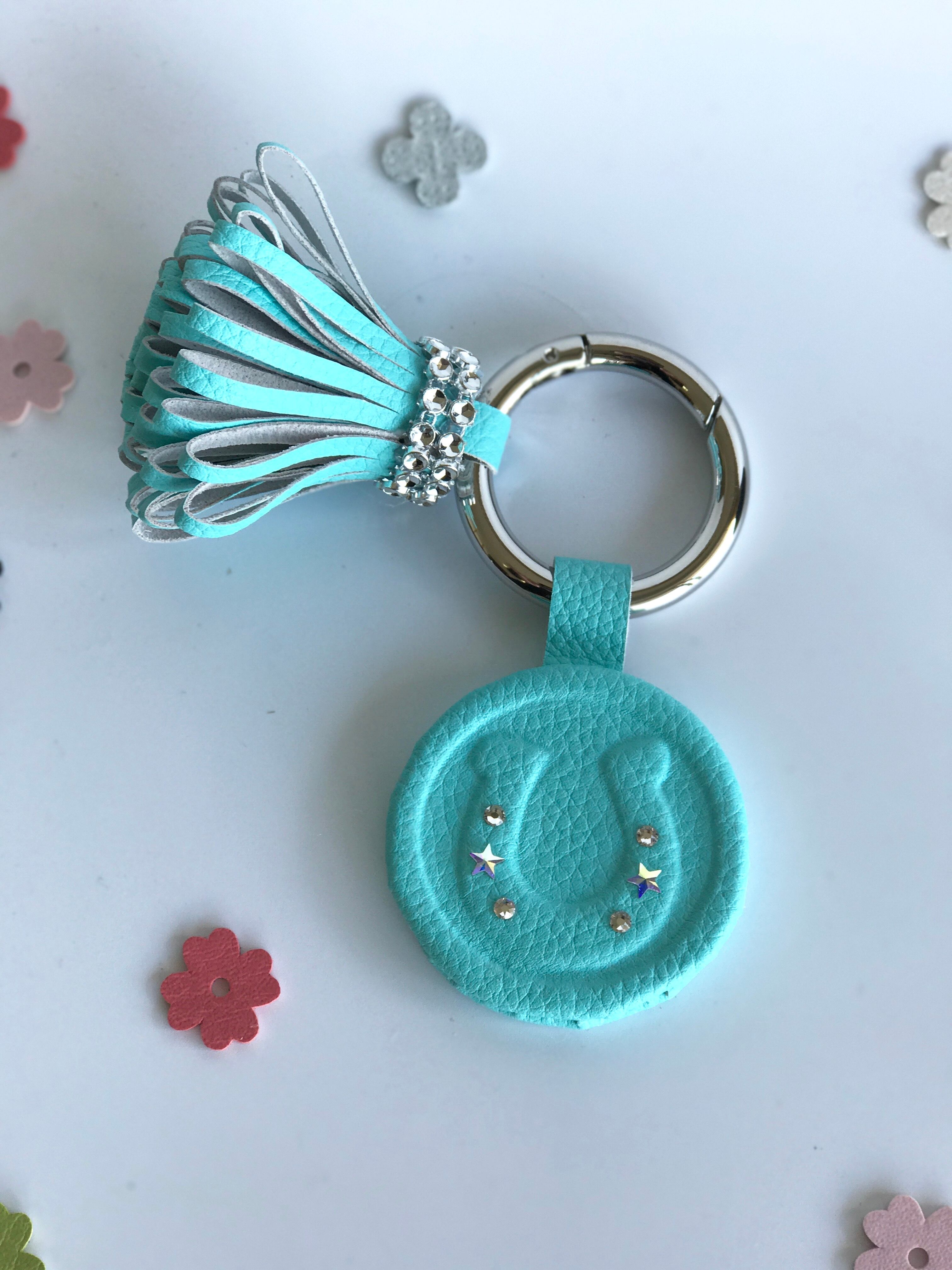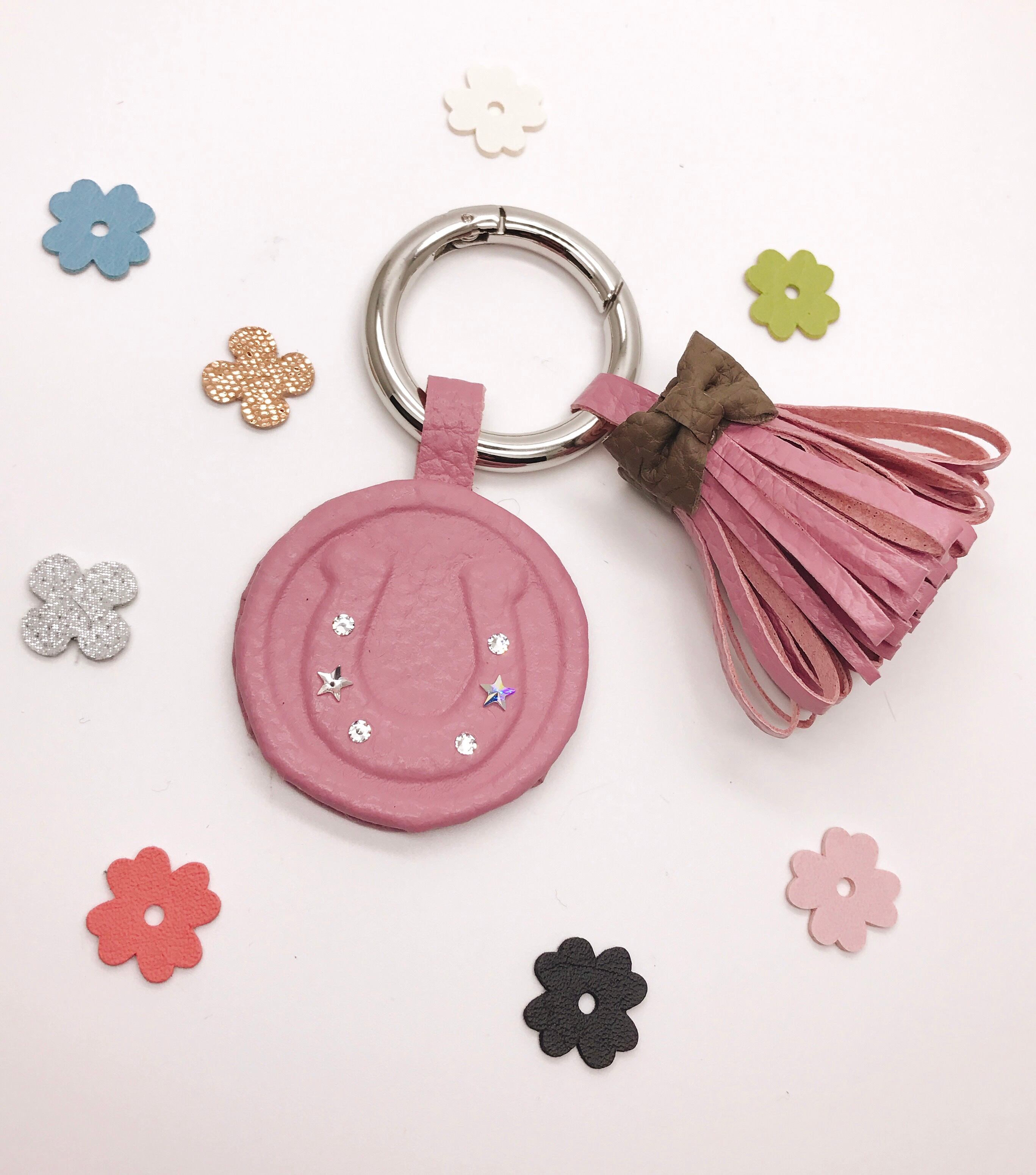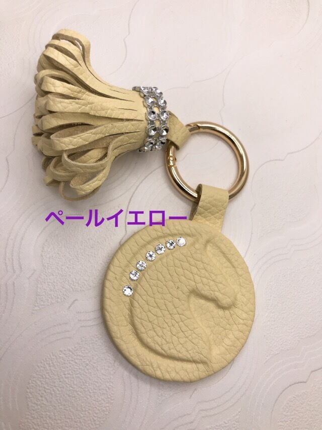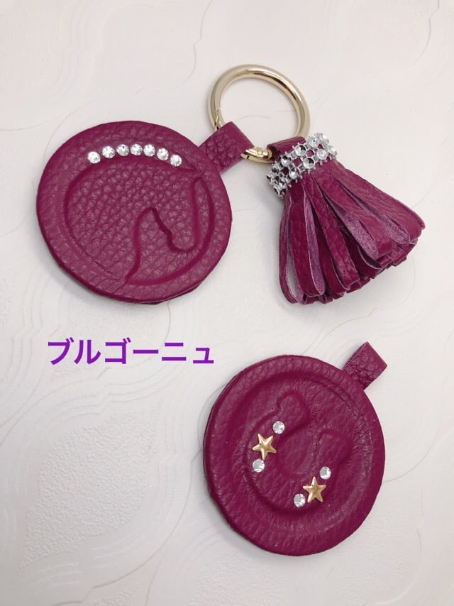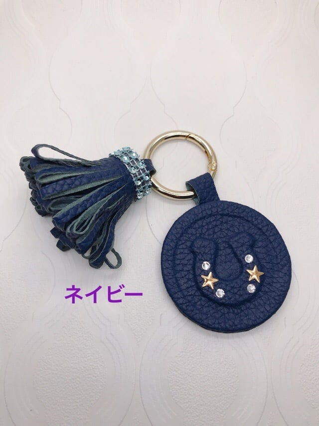 エンボス加工した蹄鉄マークのバッグチャームです。