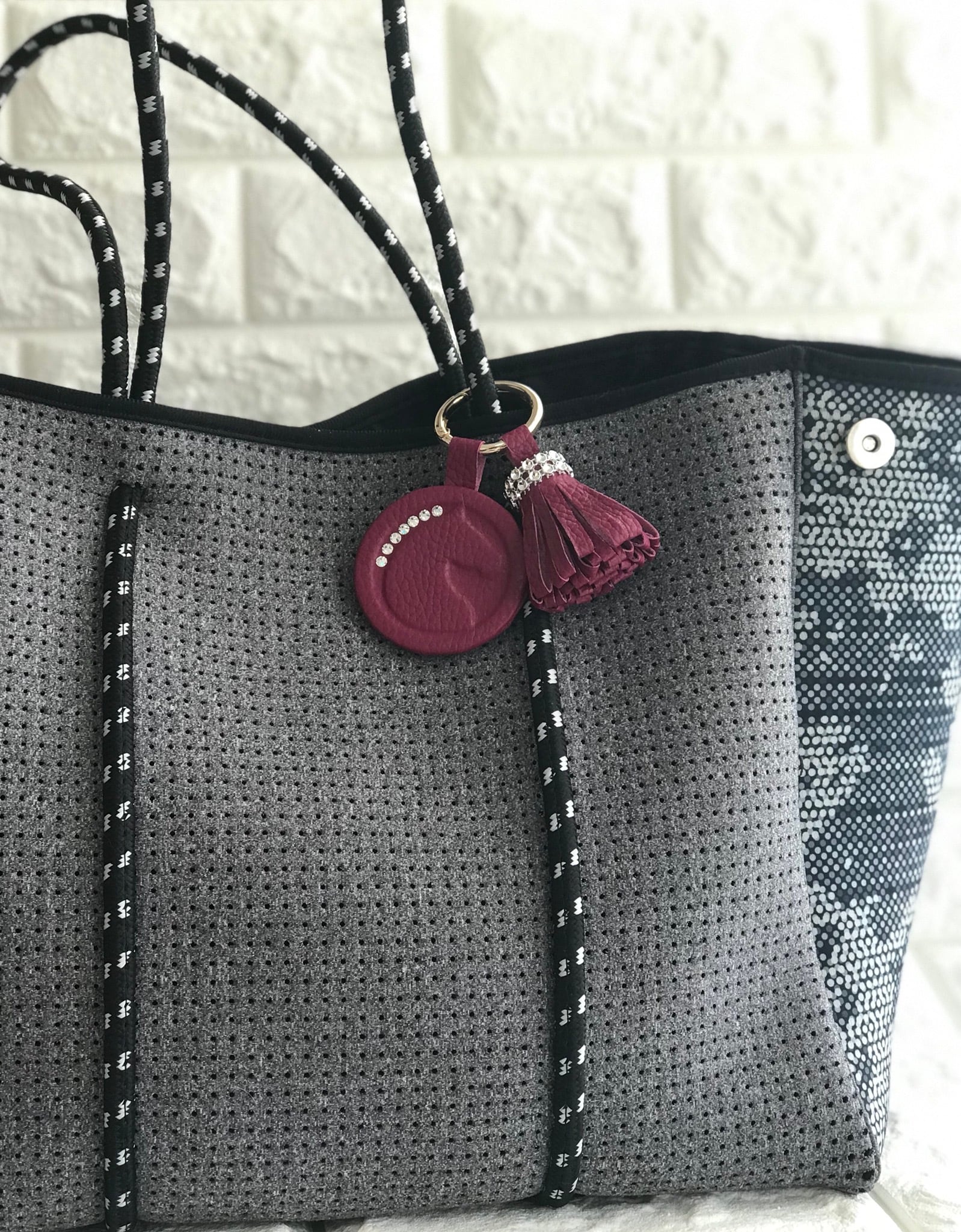 カラビナ式キーホルダーはそのままバッグチャームとして使用できます。
