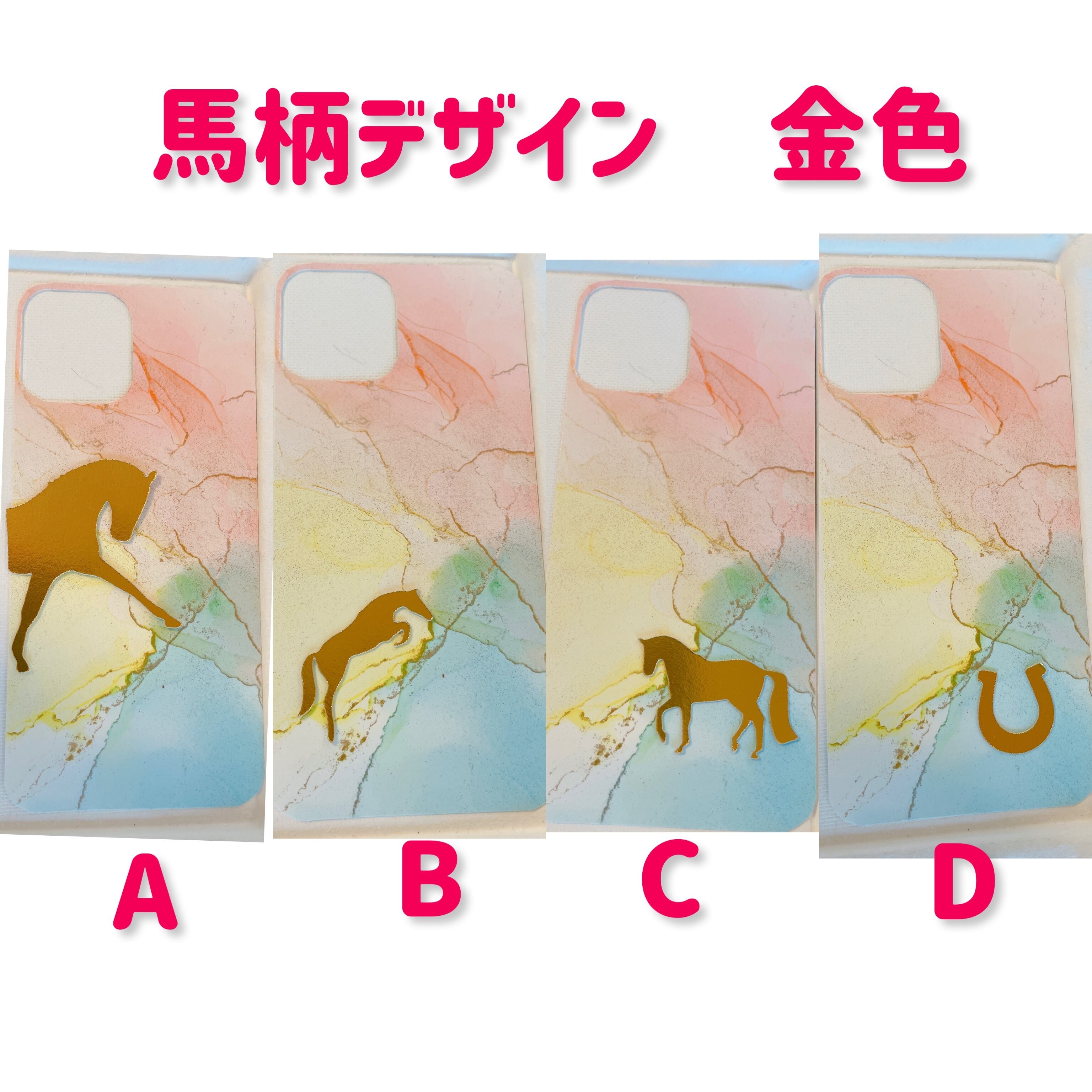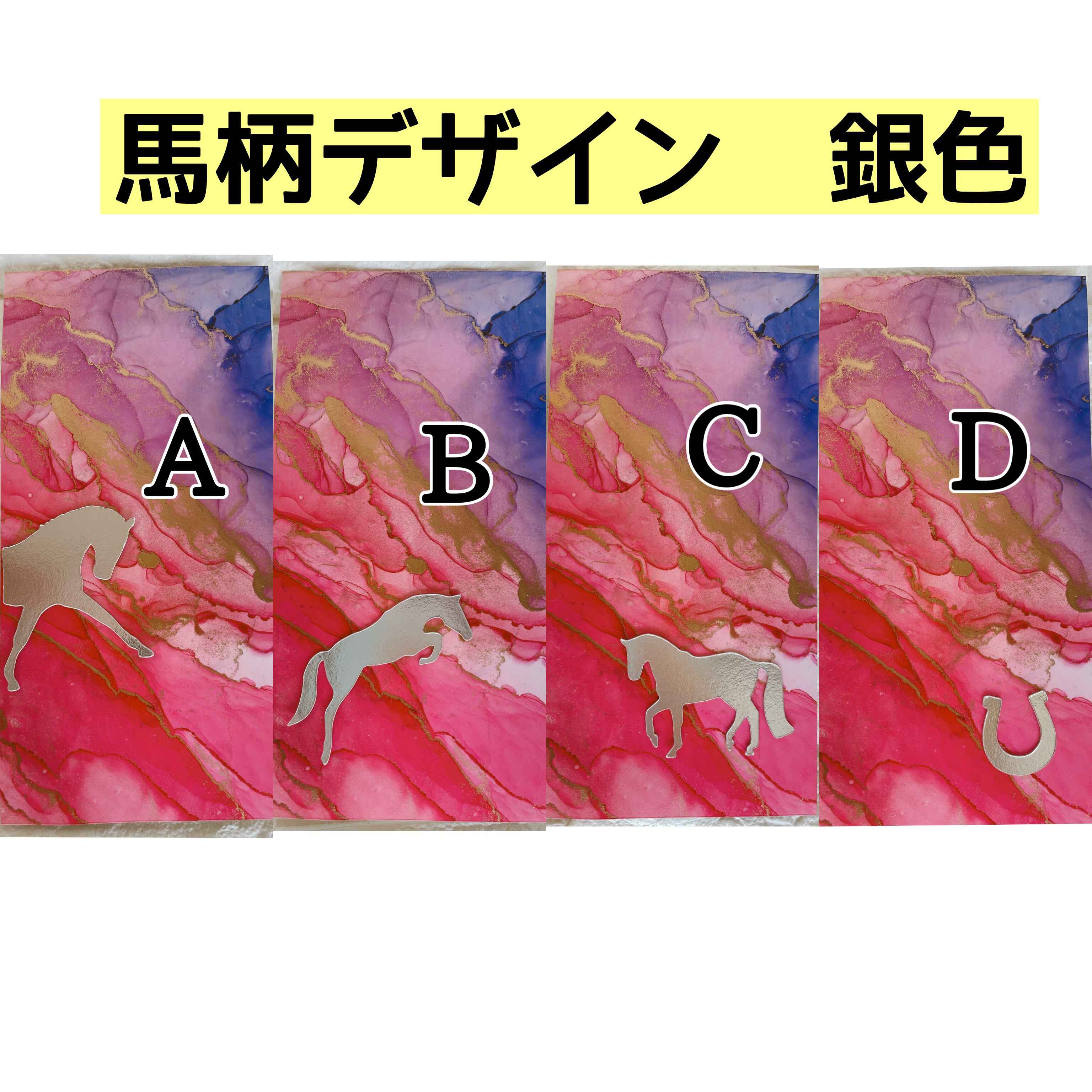 お選びいただいた絵に金色または銀色の馬柄または蹄鉄をお付けして加工します。