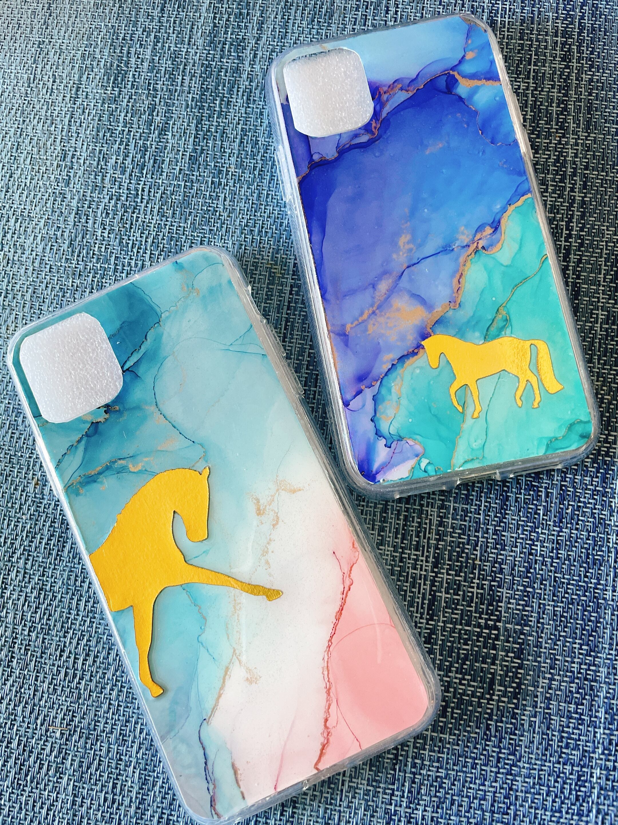 アルコールインクアートという、アルコール上を漂うカラーインクを流したり固めたりしながら描くアートの原画をそのままiPhoneケースに加工いたします。