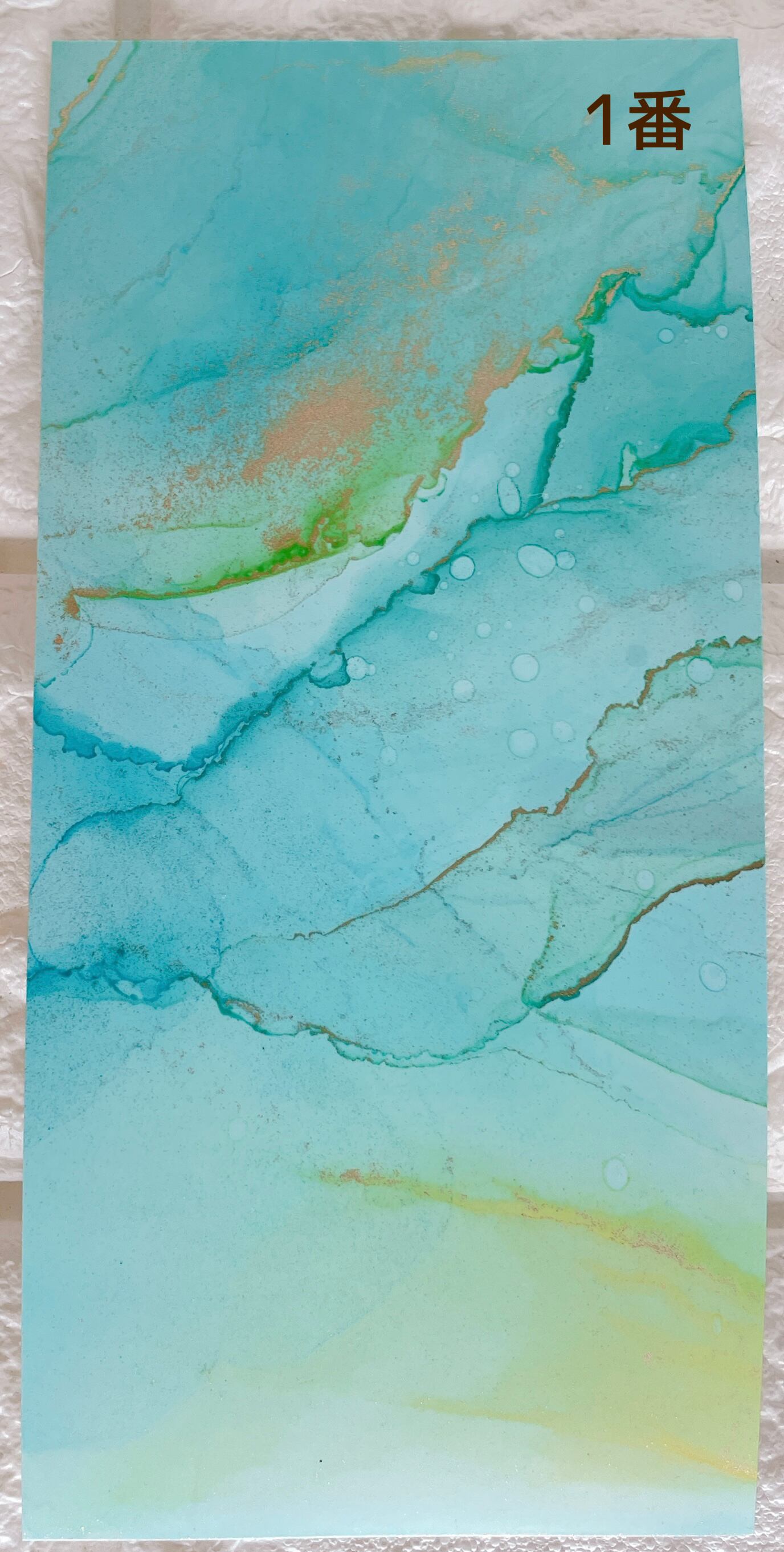 店主はアルコールインクアートを練習中ではありますが、まだまだ偶然にしか美しい絵を描けないため、見本と全く同じ絵を描くことが不可能です。