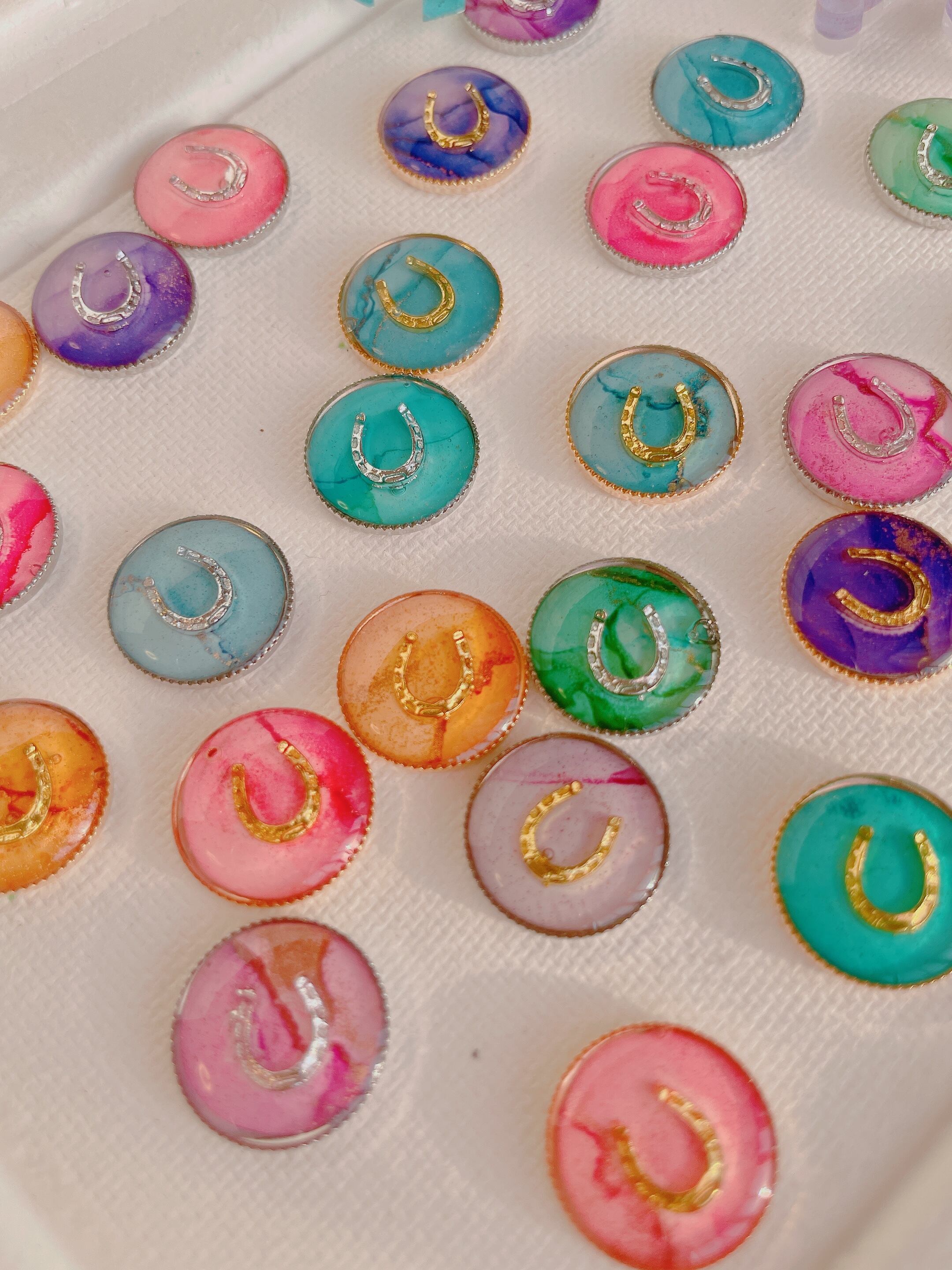 アートのカラーと蹄鉄の色(ゴールドまたはシルバー)をお選び下さい。