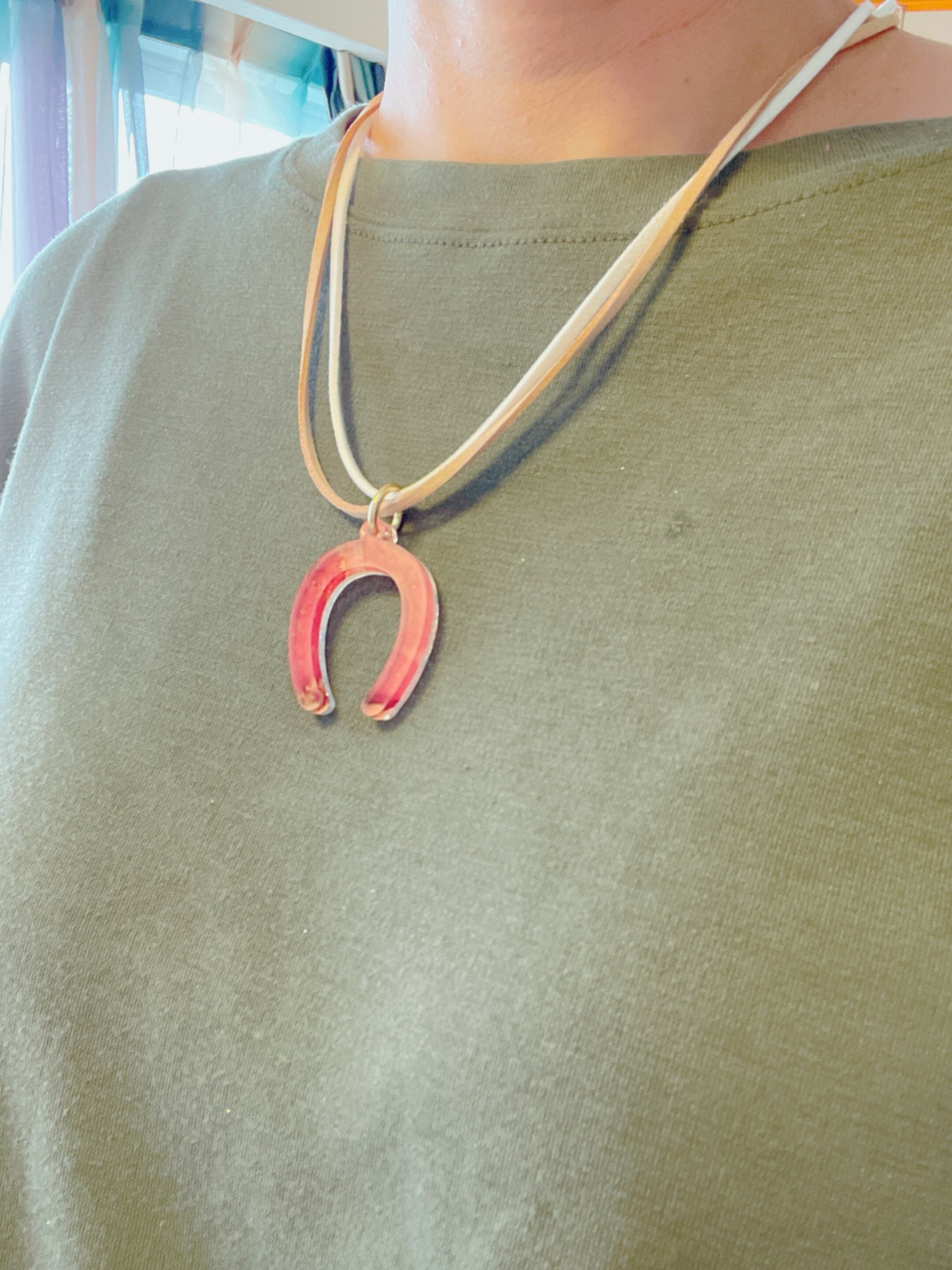 他にはない蹄鉄モチーフを動くと揺れるペンダントにしました。