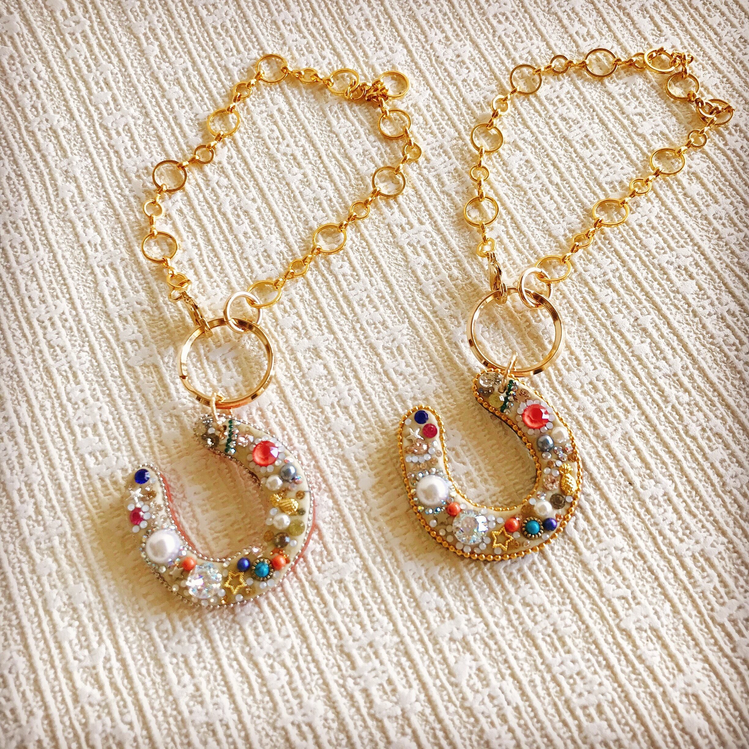reversible horseshoes バッグチャーム☆ビジューオリエンタル 本革10色以上から選べます