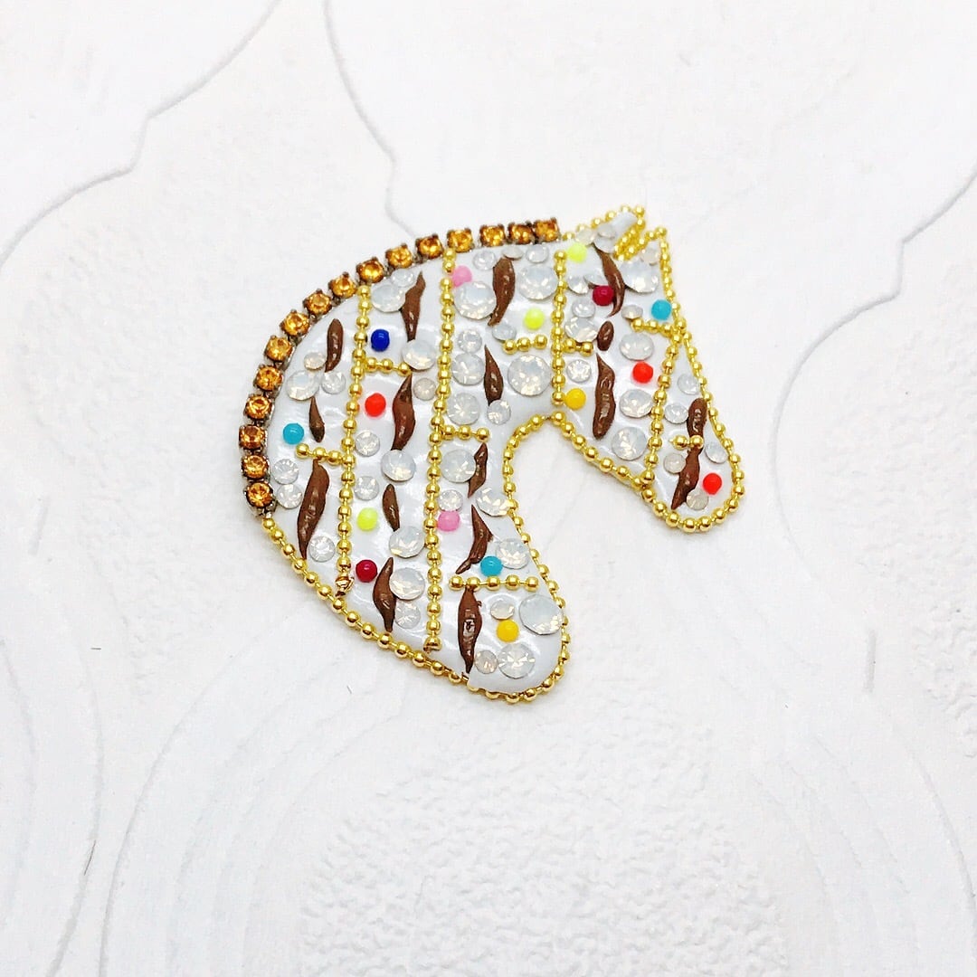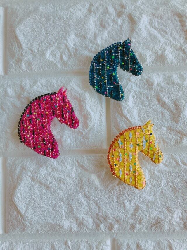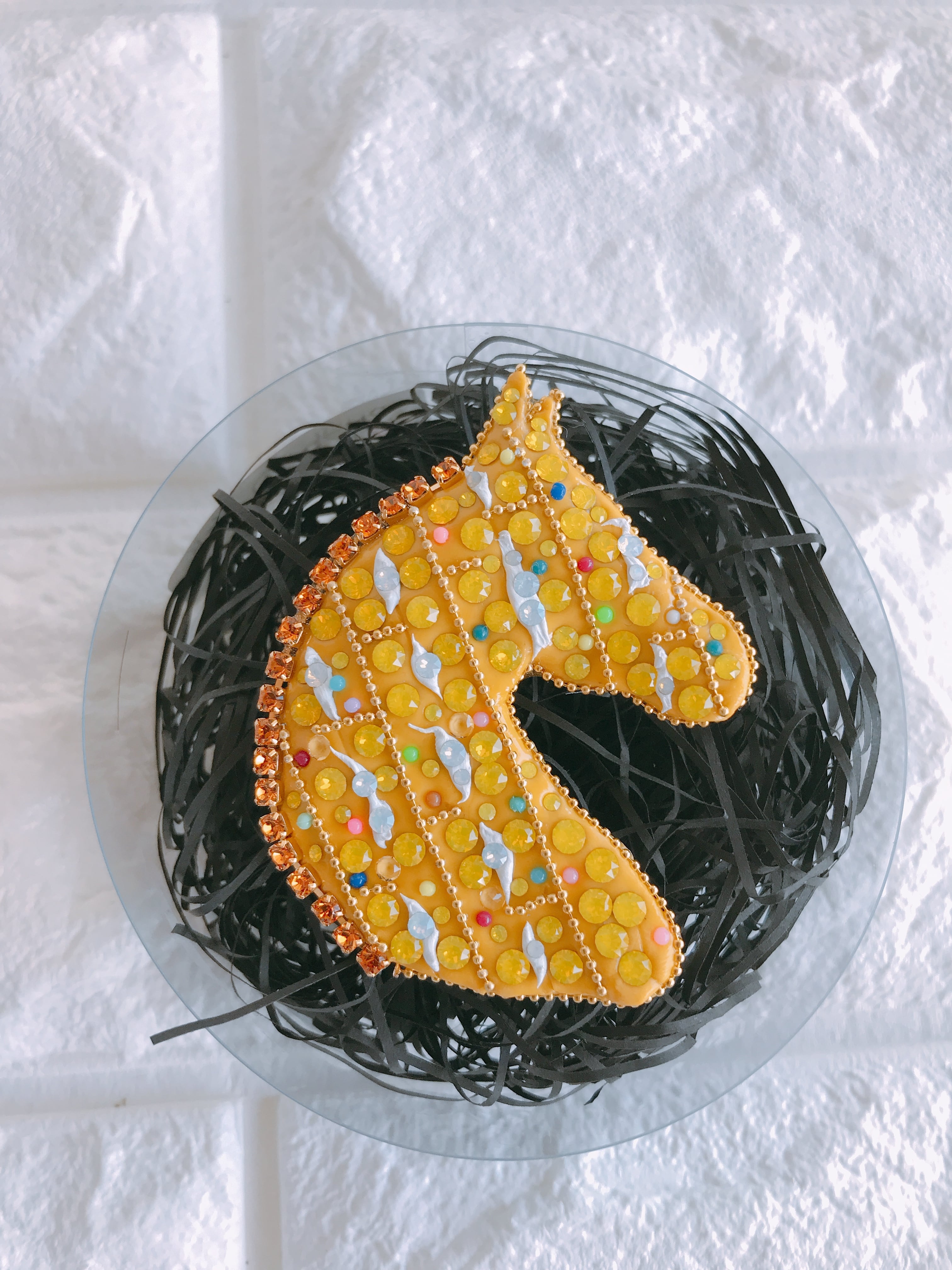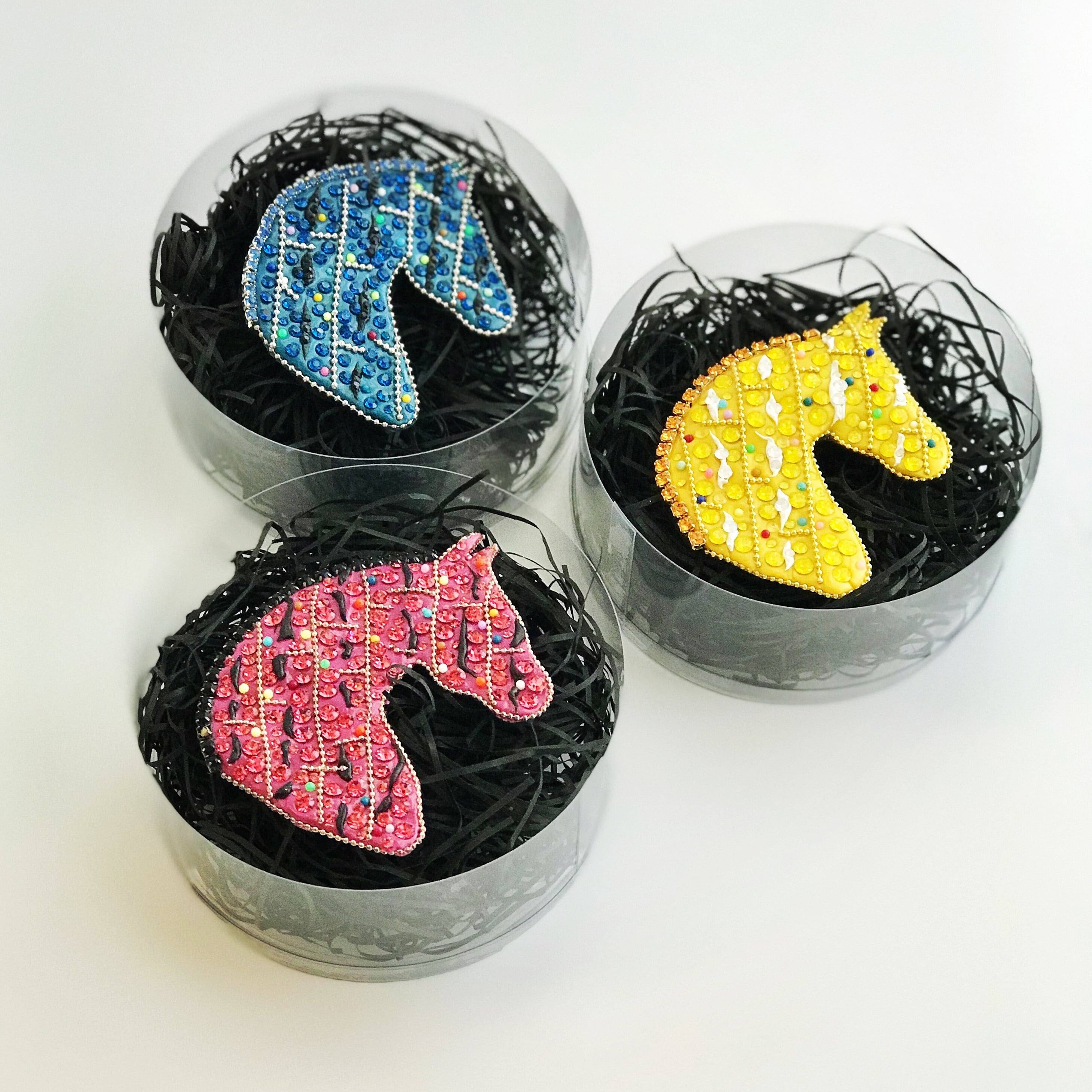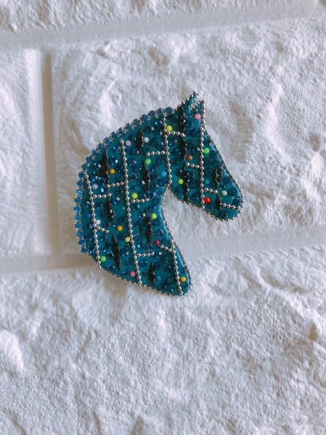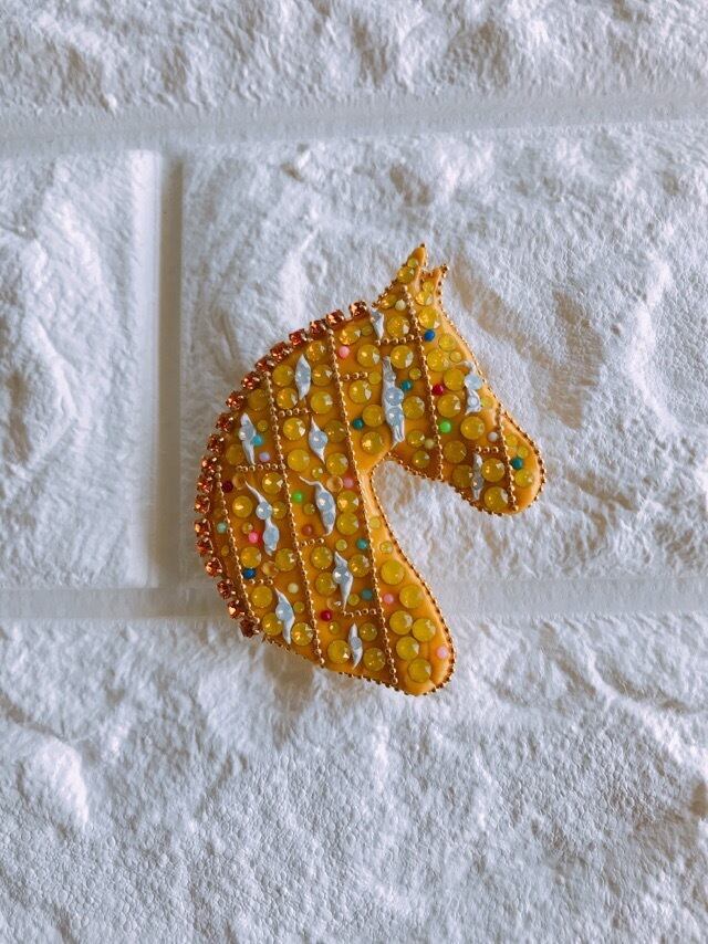 dressage ribbonオリジナルデザインのドレッサージュホース柄をグルー(接着粘土)とスワロフスキーで作りました。
