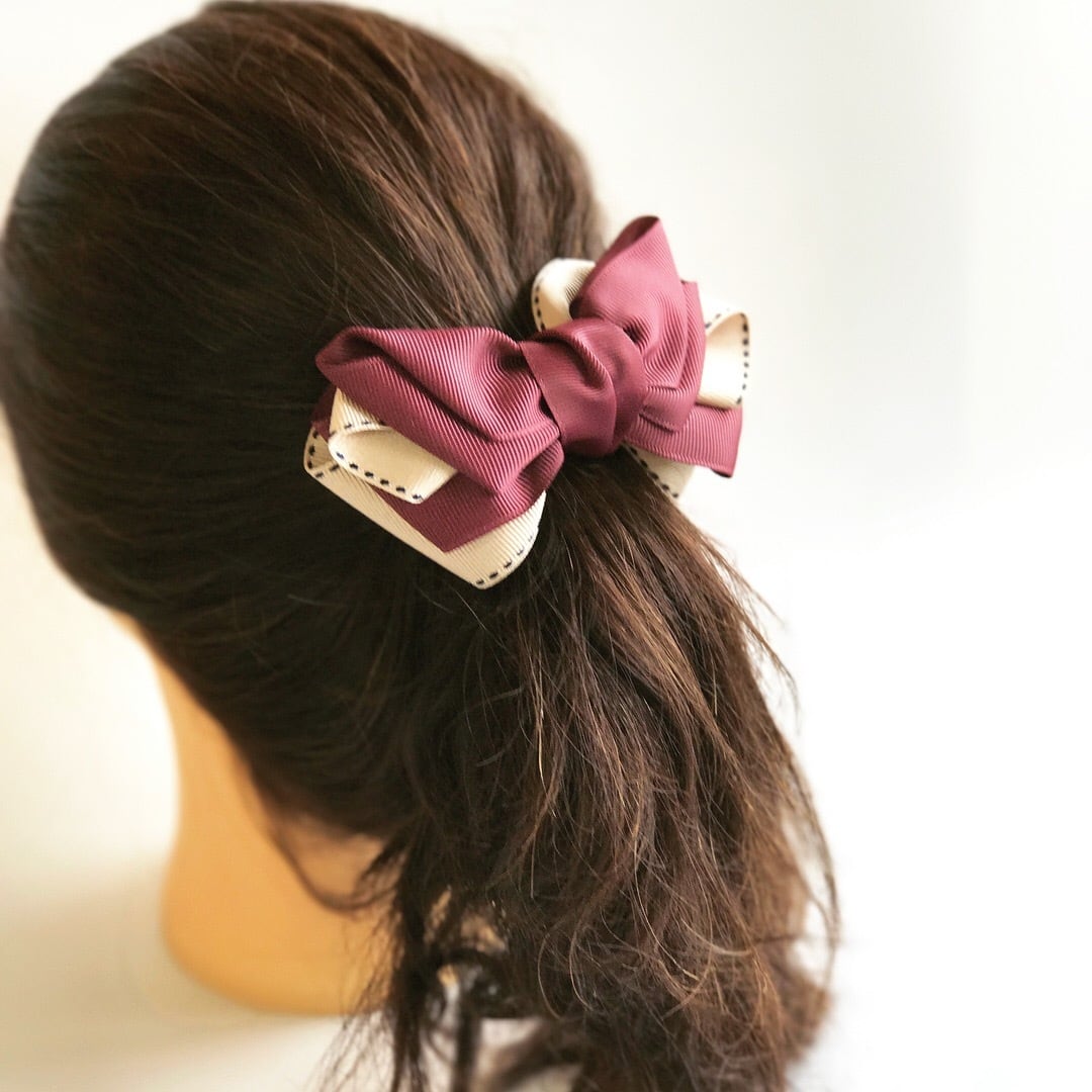 コンパクトですが、普通のシングルリボンよりはるかにデザインが凝っているのでヘアゴムにしても、バレッタにしても資材が見えることなく美しいデザインを保てます。