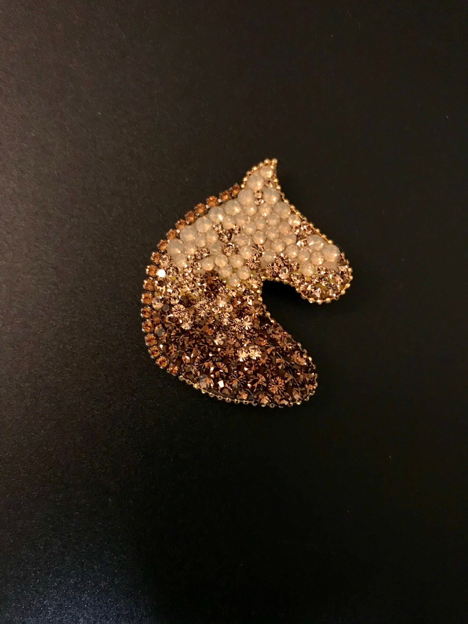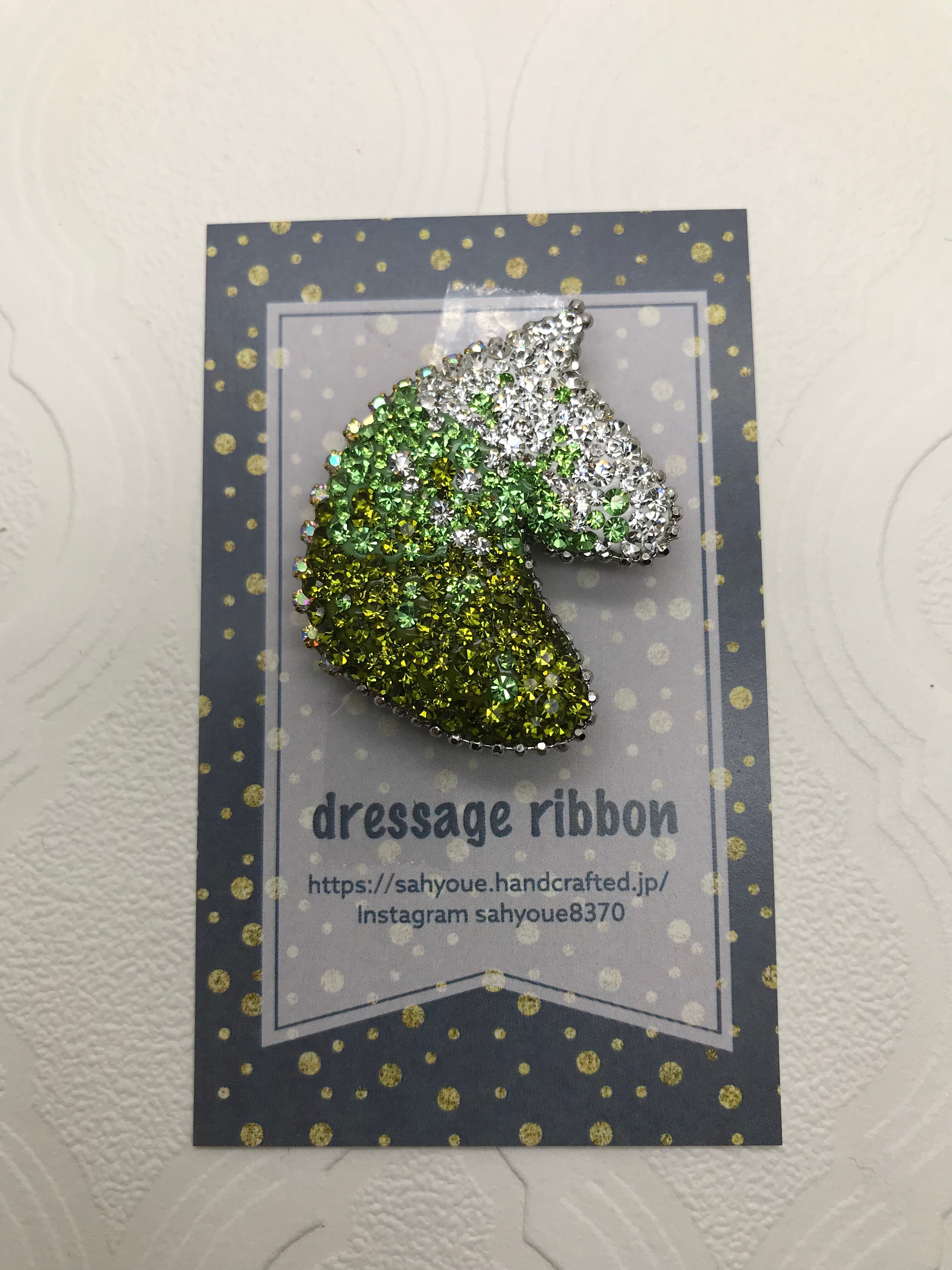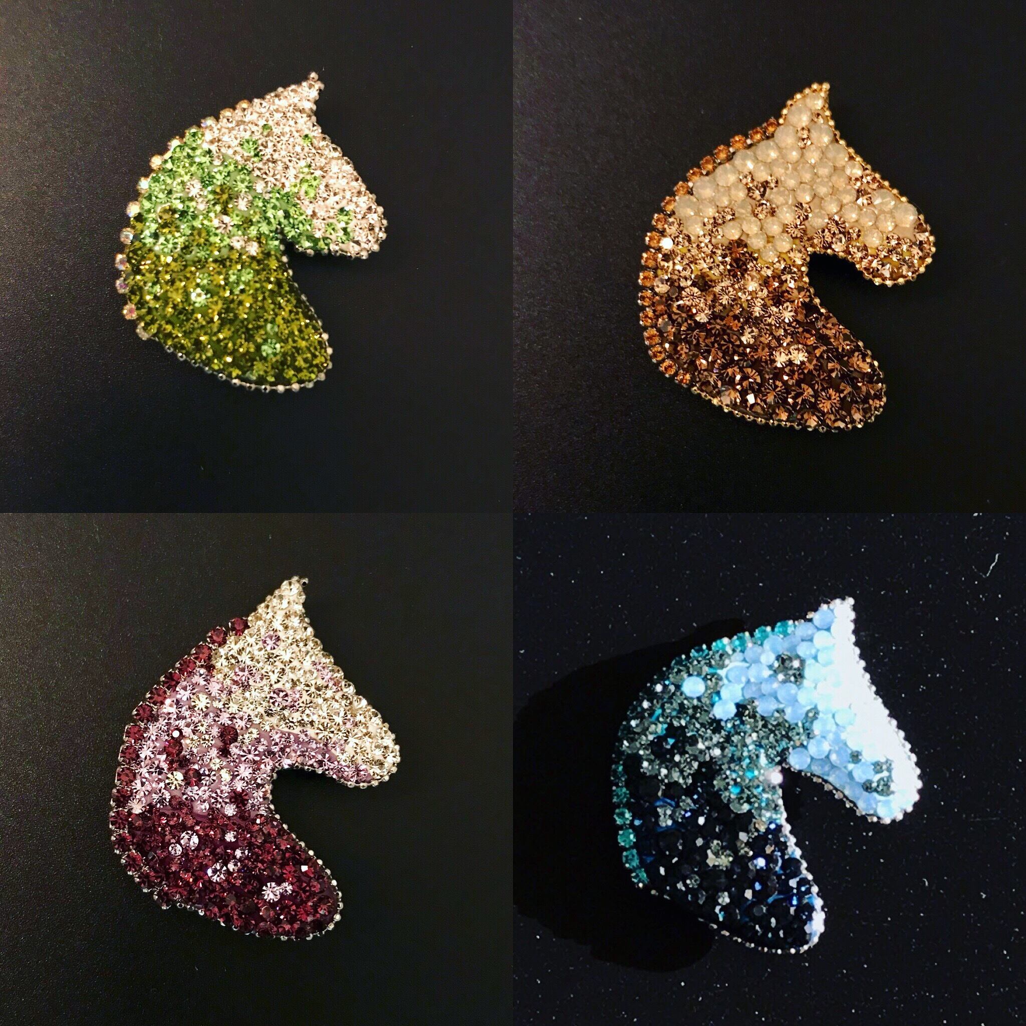このシリーズは同系色のスワロフスキーを3色グラデーションになるように配置したゴージャスで1番キラキラ系ブローチです。眩しいほどの煌めきです。