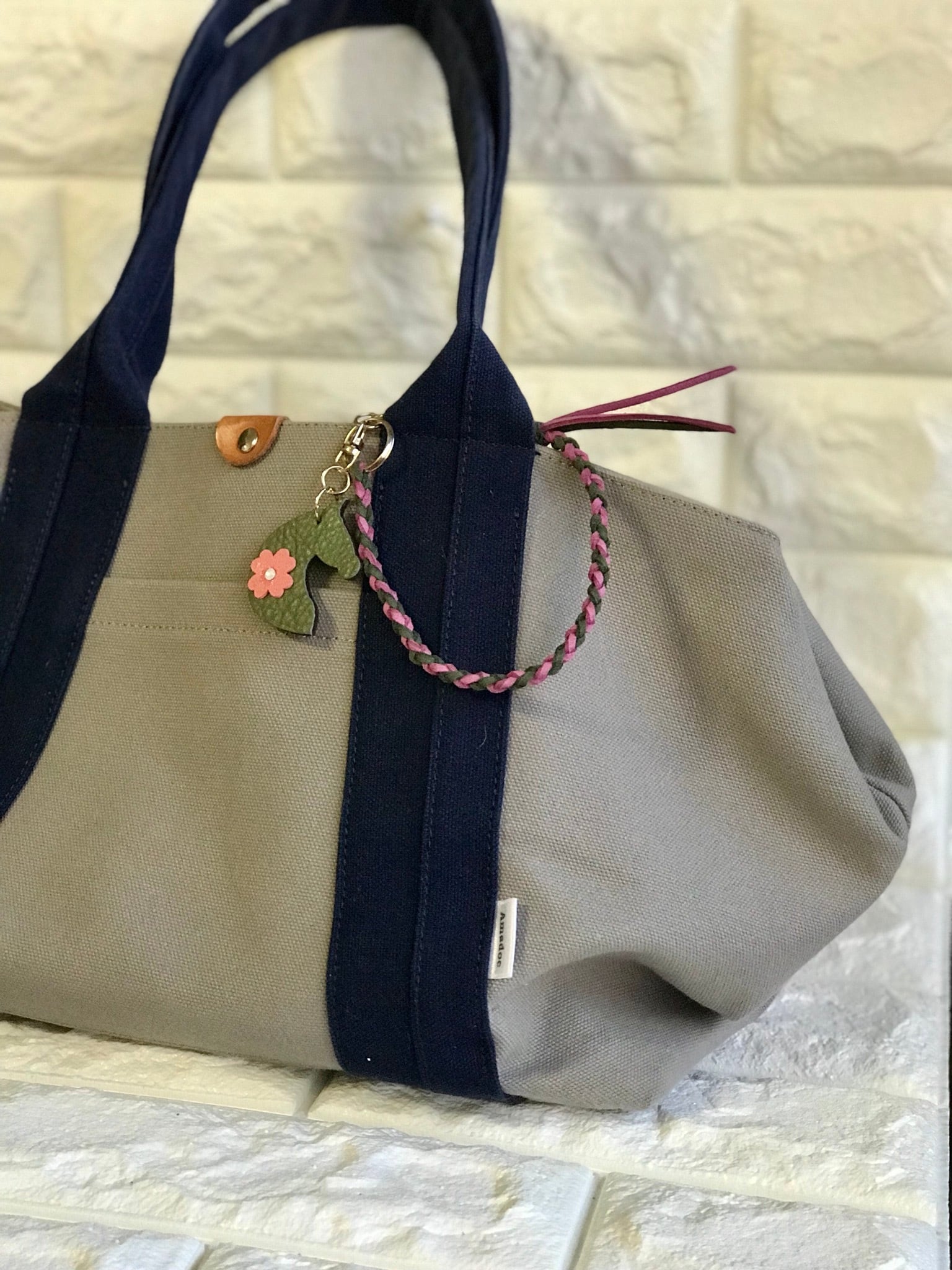 (バッグチャームとしてのみ使用される場合、ご希望があれば革紐の長さを短くお作りできますので、お気軽にご相談下さい。)