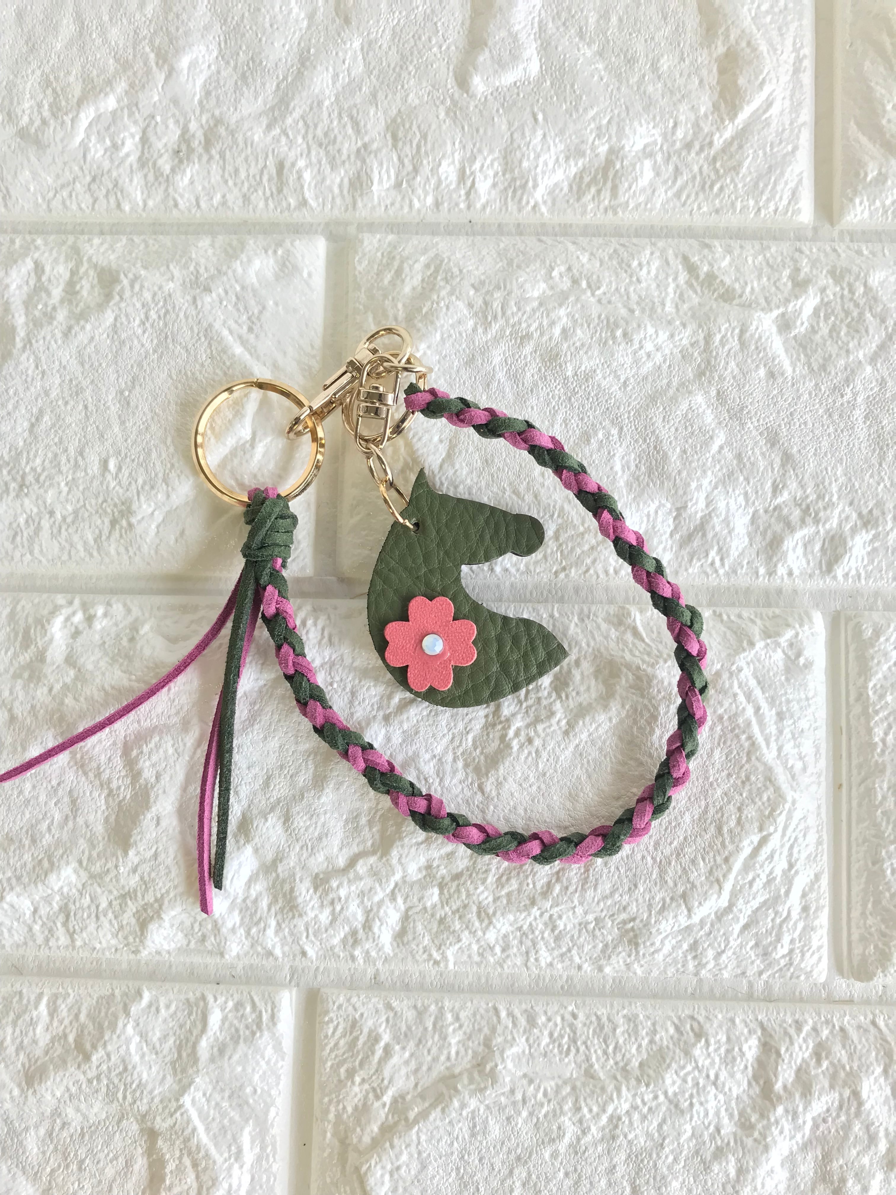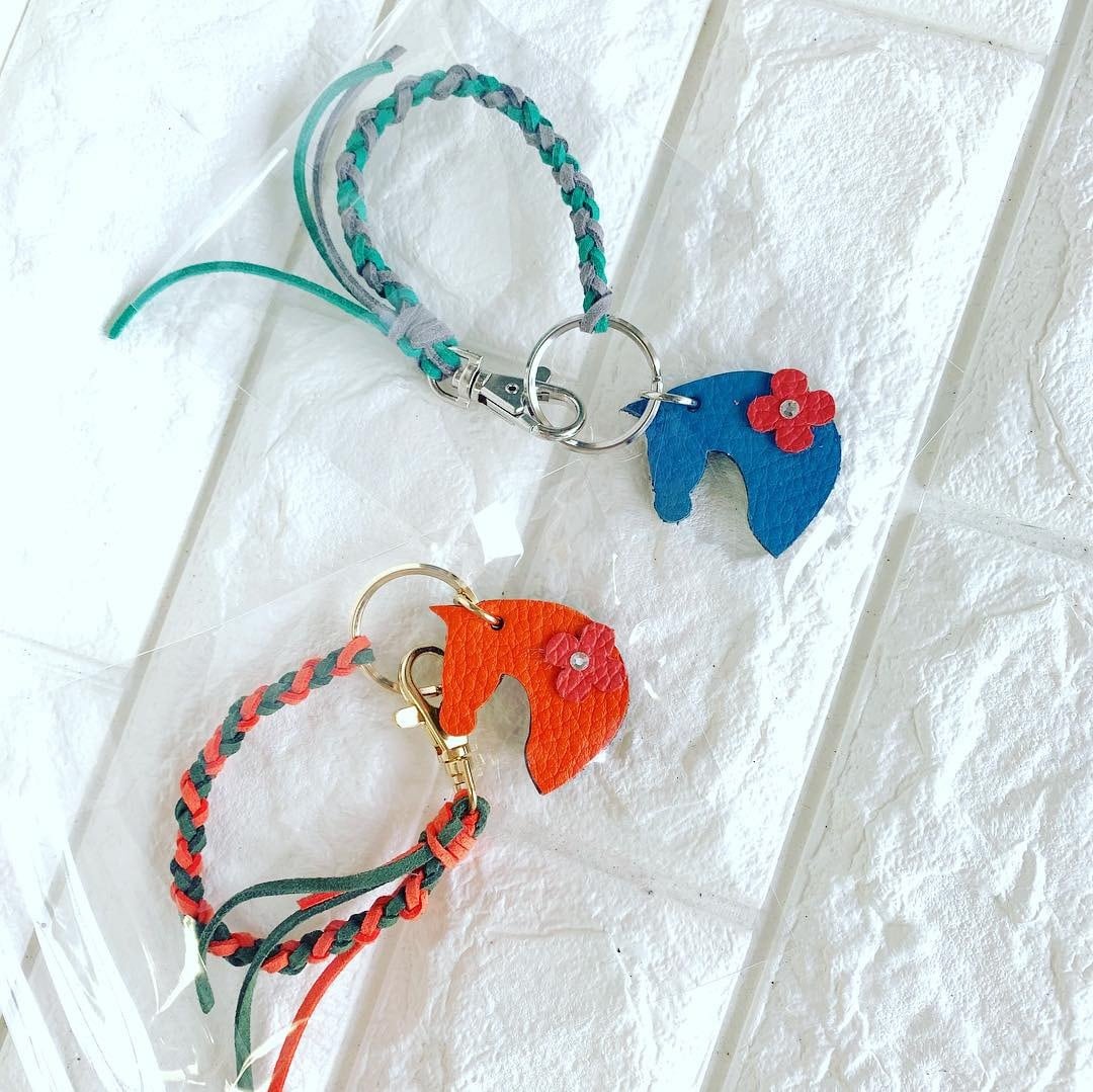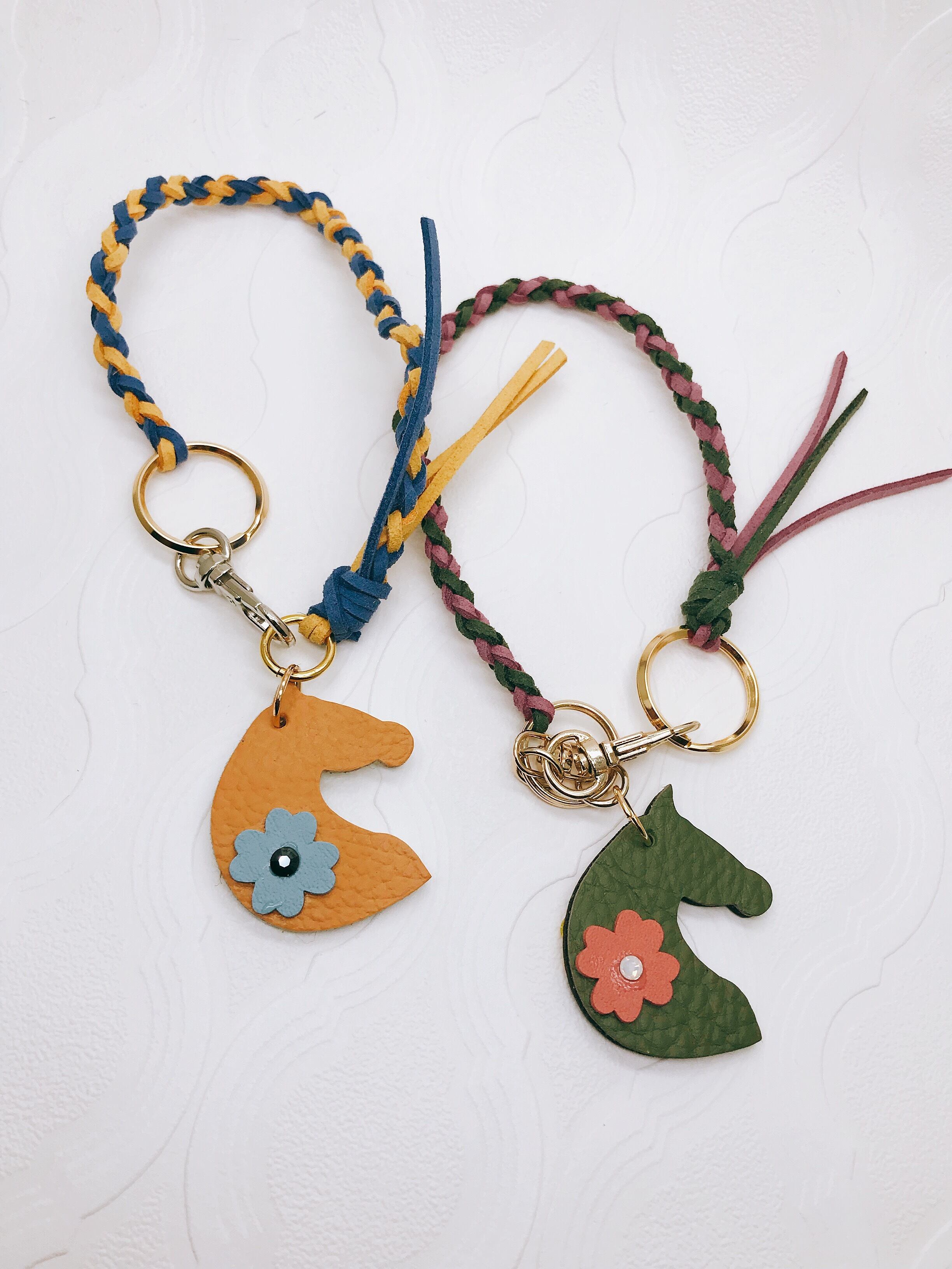 革紐のカラーはお馬の色とお花の色2色と同系色でお作りします。