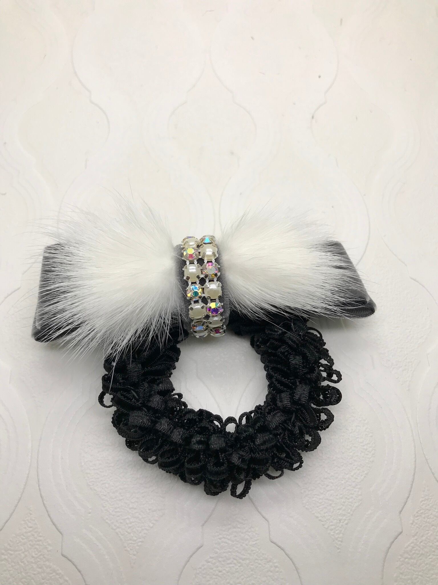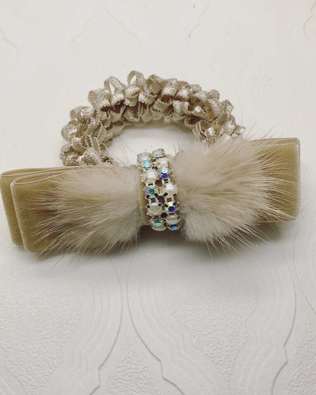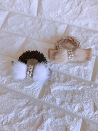 冬リボン ミンクファーとウーリーゴムのベルベットリボン