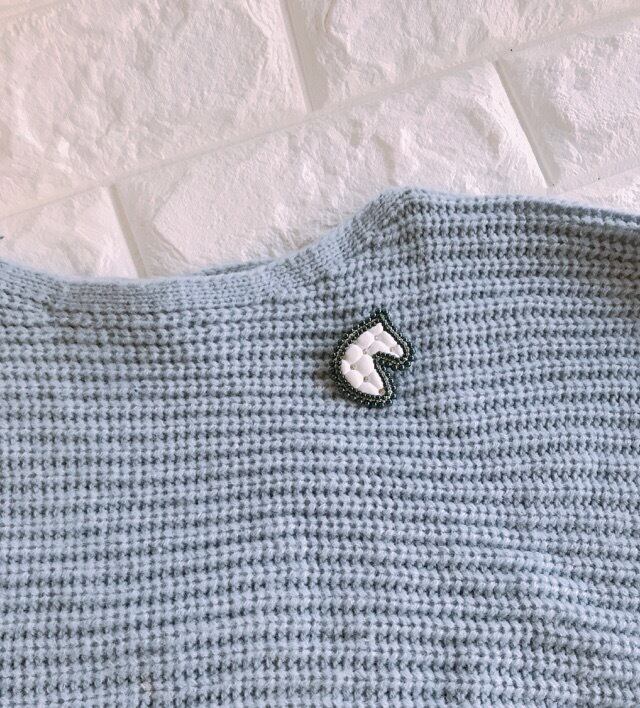 バッグはもちろん、ニットやTシャツの襟元、胸元に付けられる大きさです。